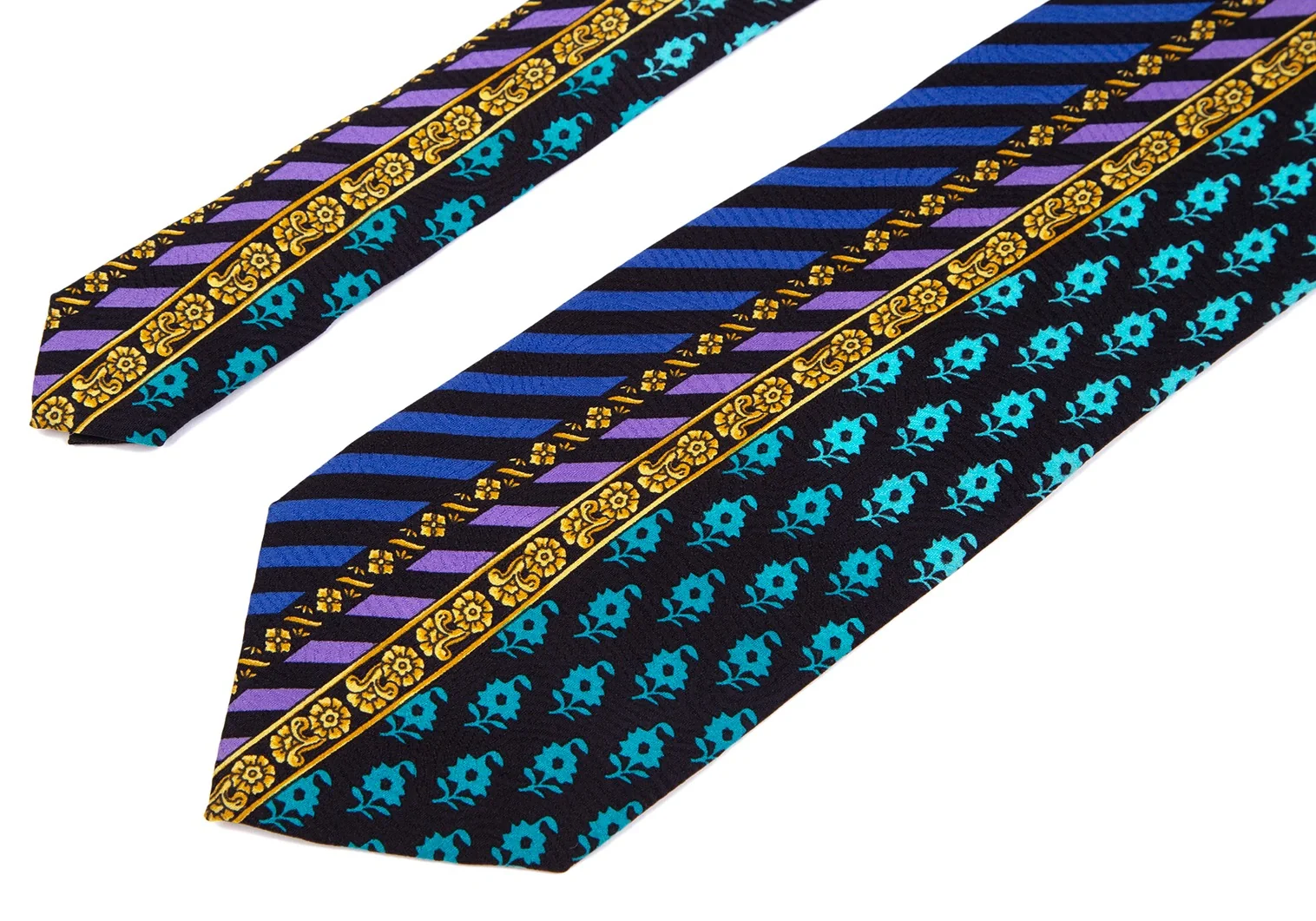 ジャンニヴェルサーチGIANNI VERSACE マルチプリントシルクネクタイ 黒マルチ