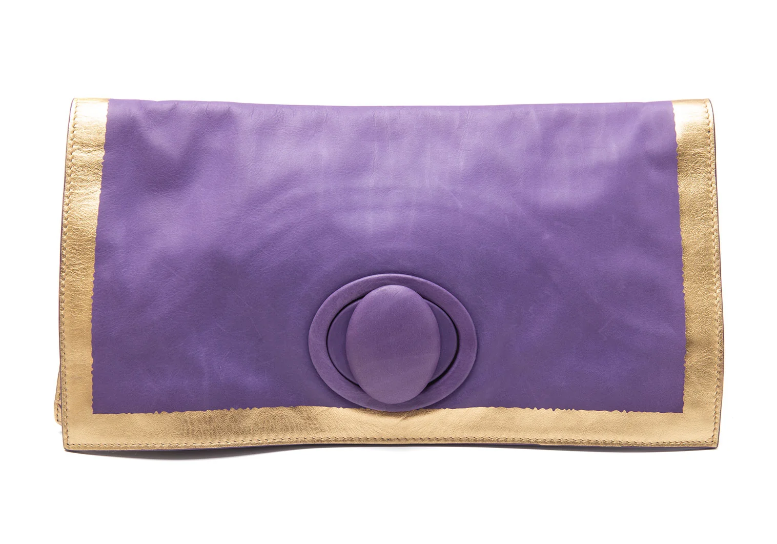 ボッテガヴェネタ BOTTEGA VENETA フォイルプリントレザークラッチバッグ 紫