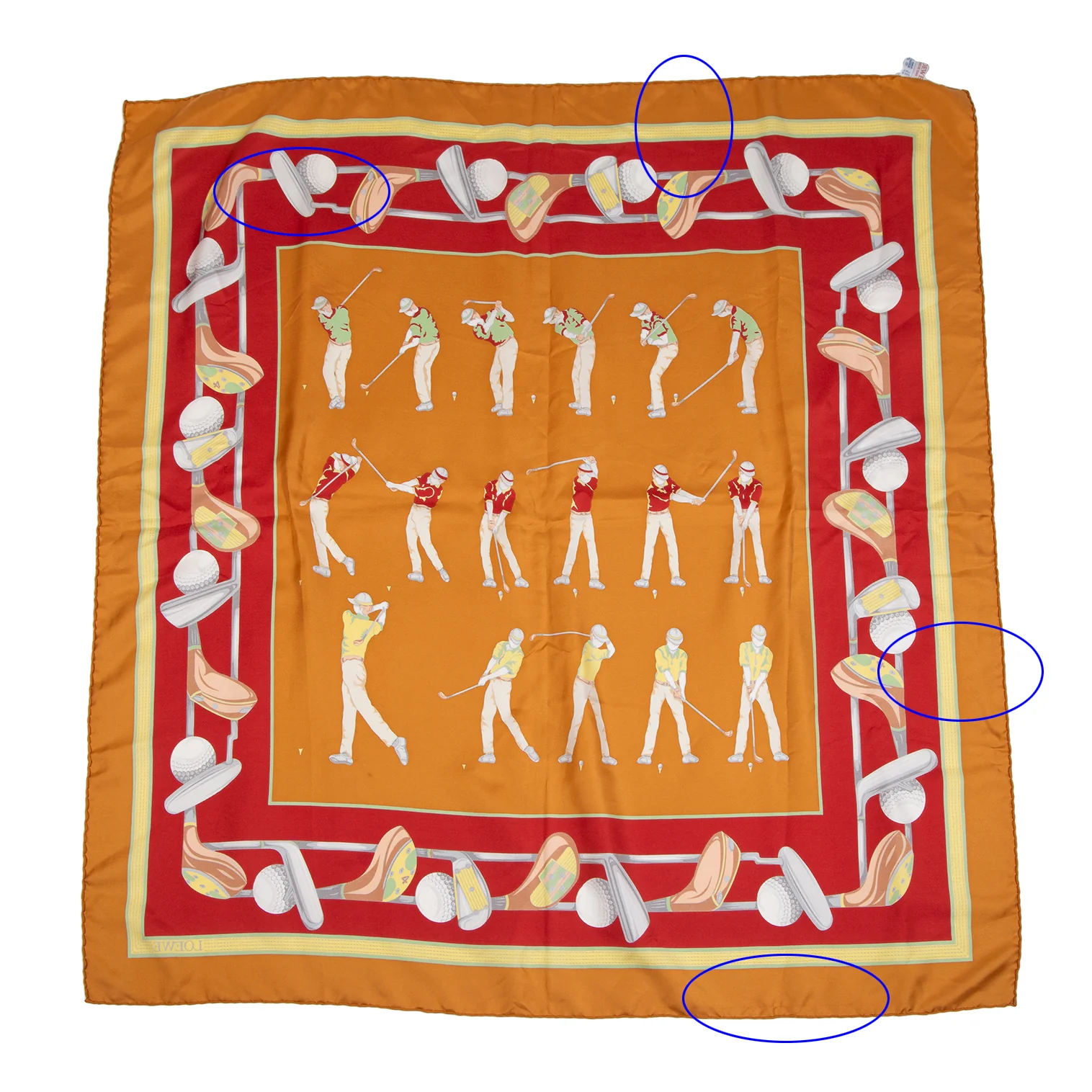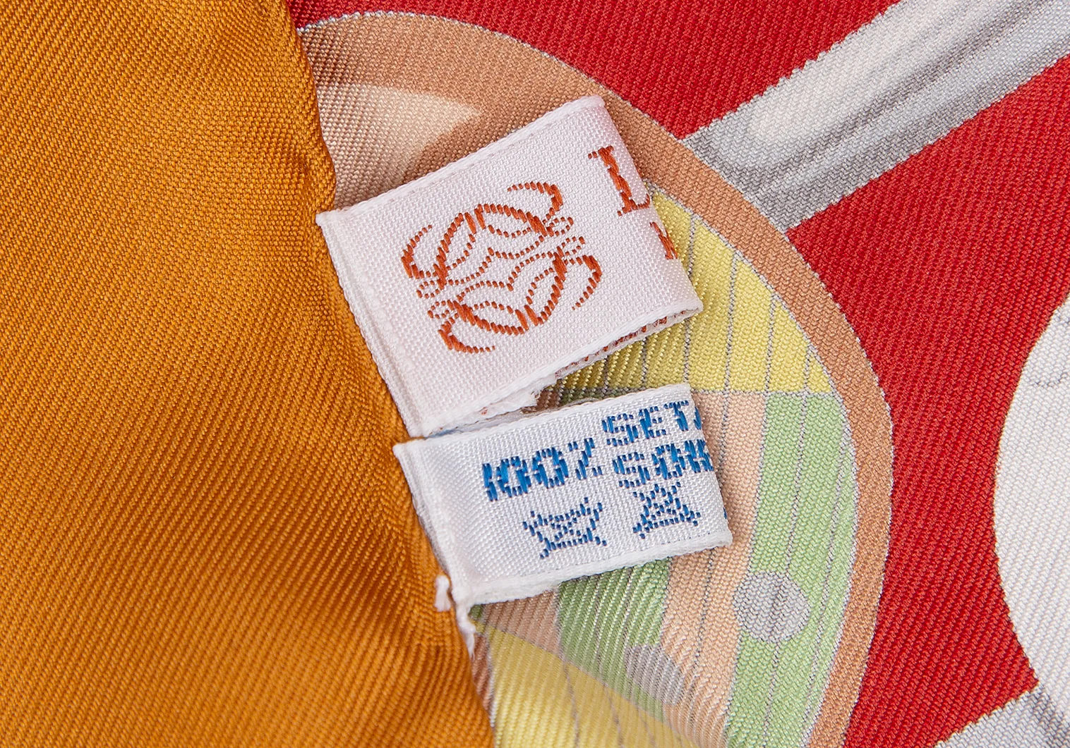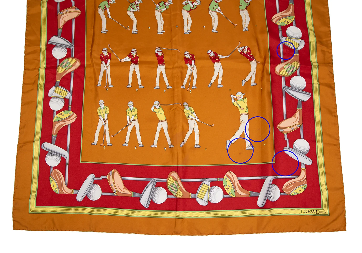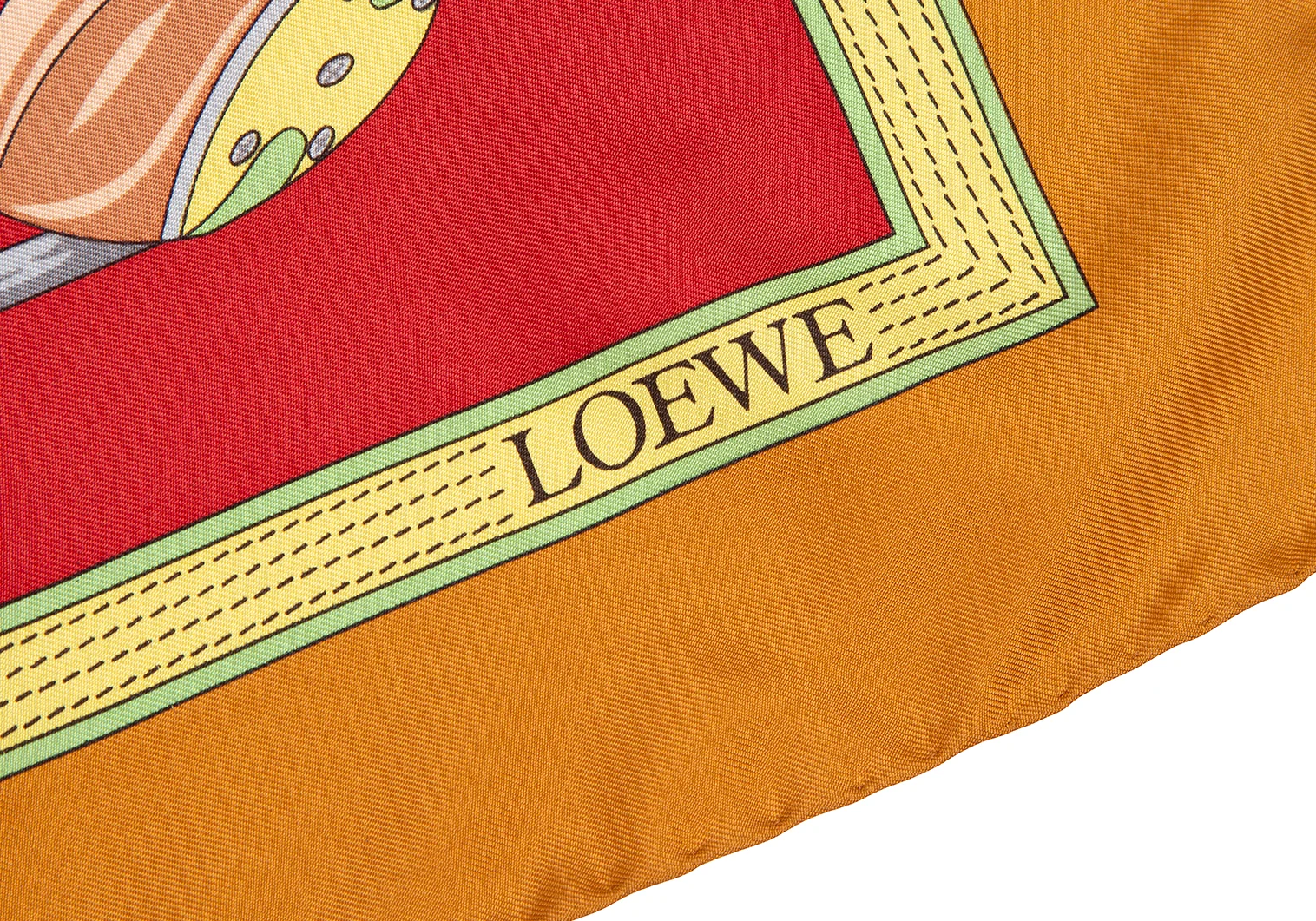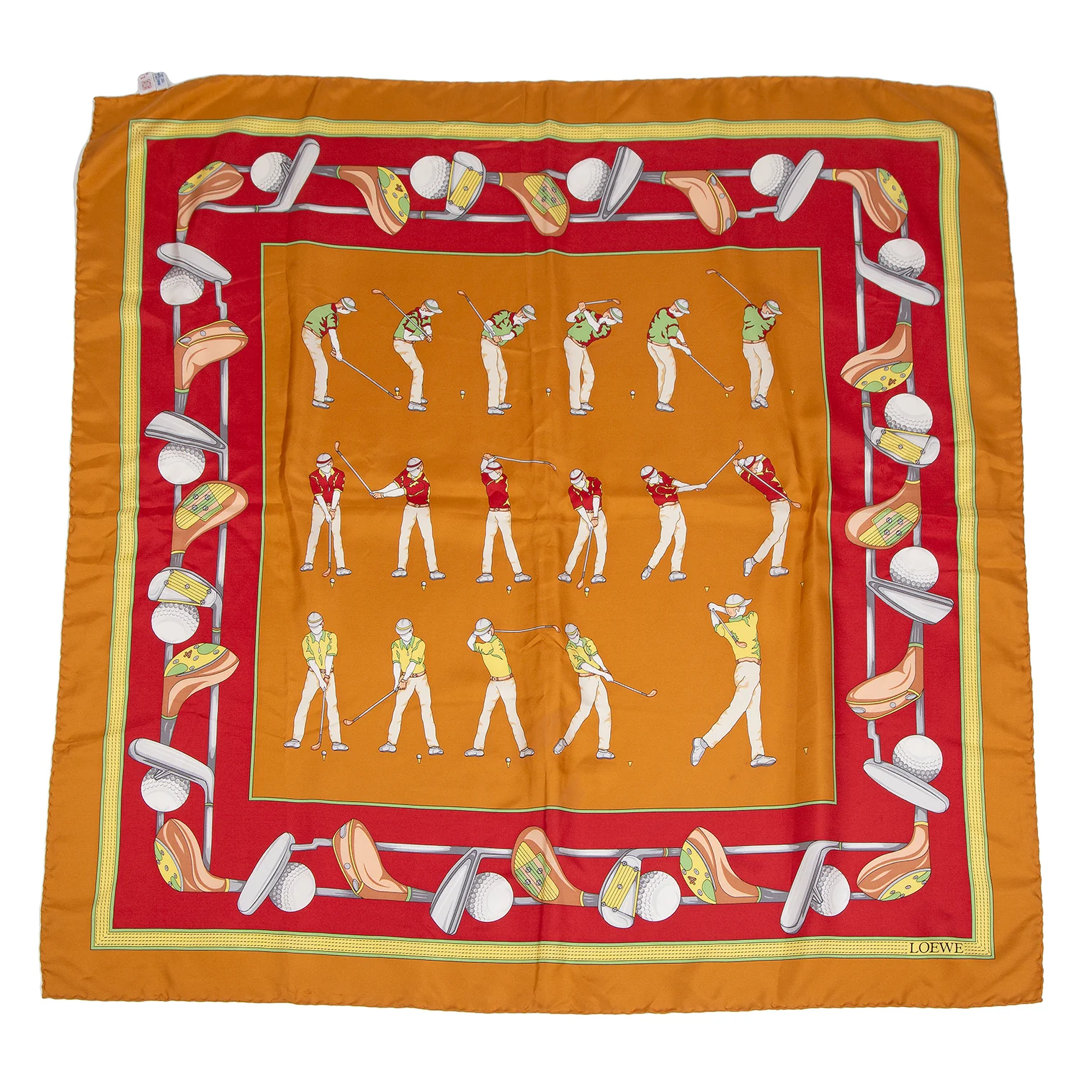 ロエべLOEWE ゴルフ総柄シルクスカーフ オレンジ赤