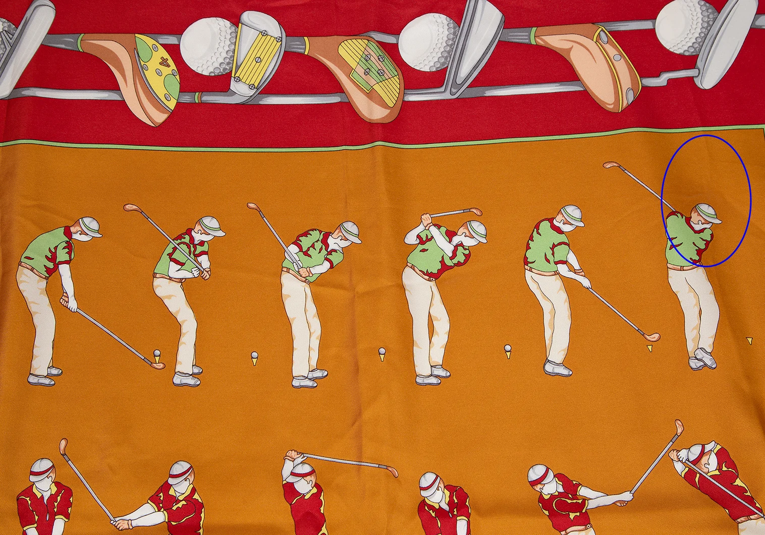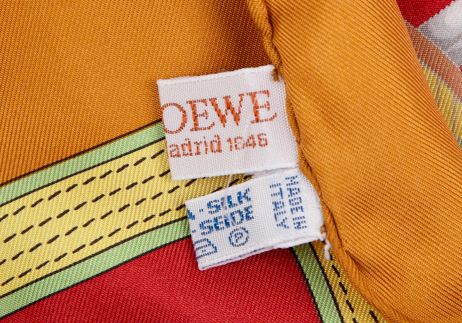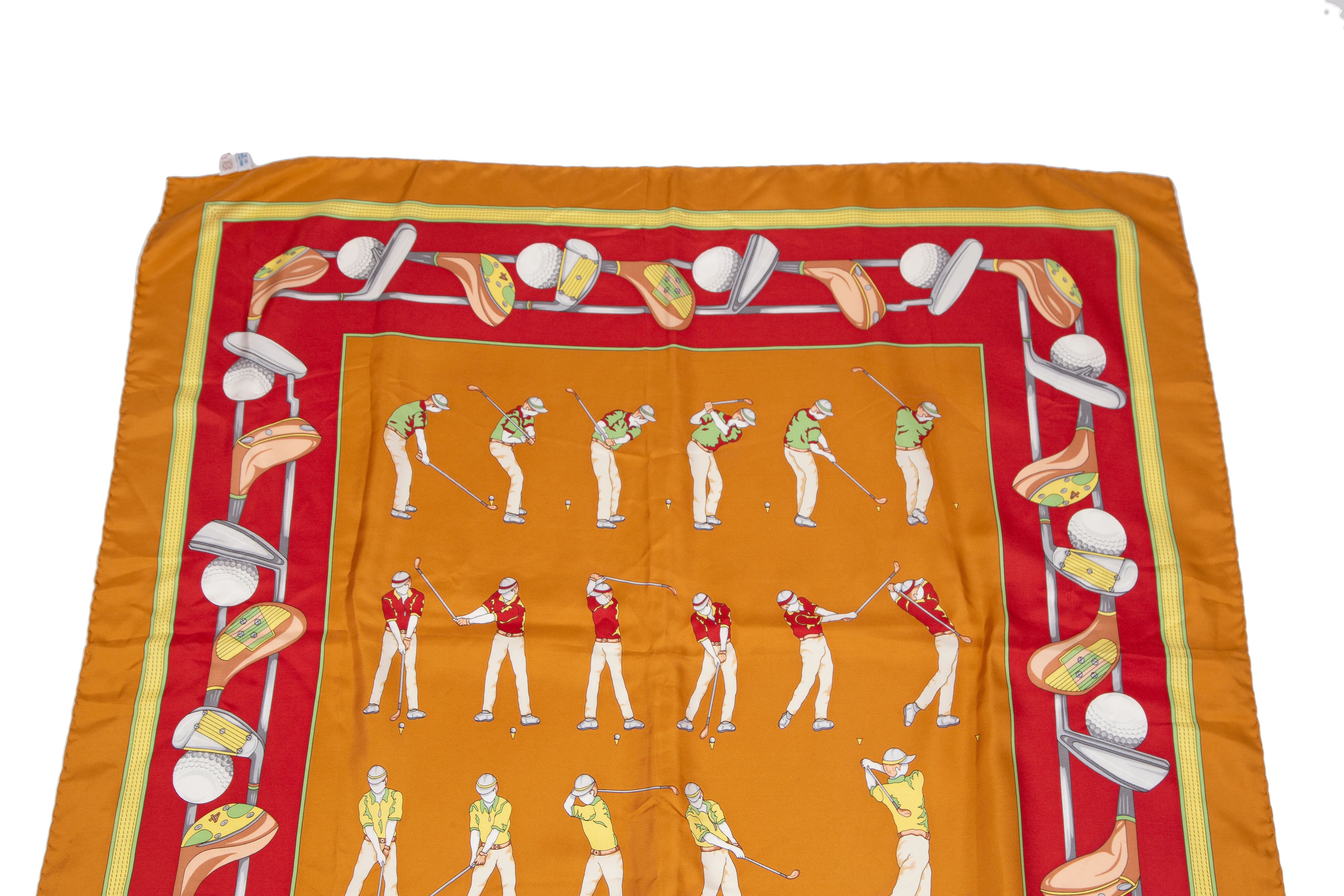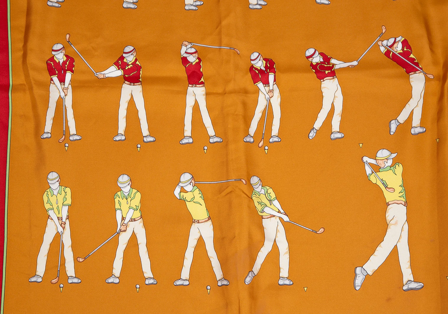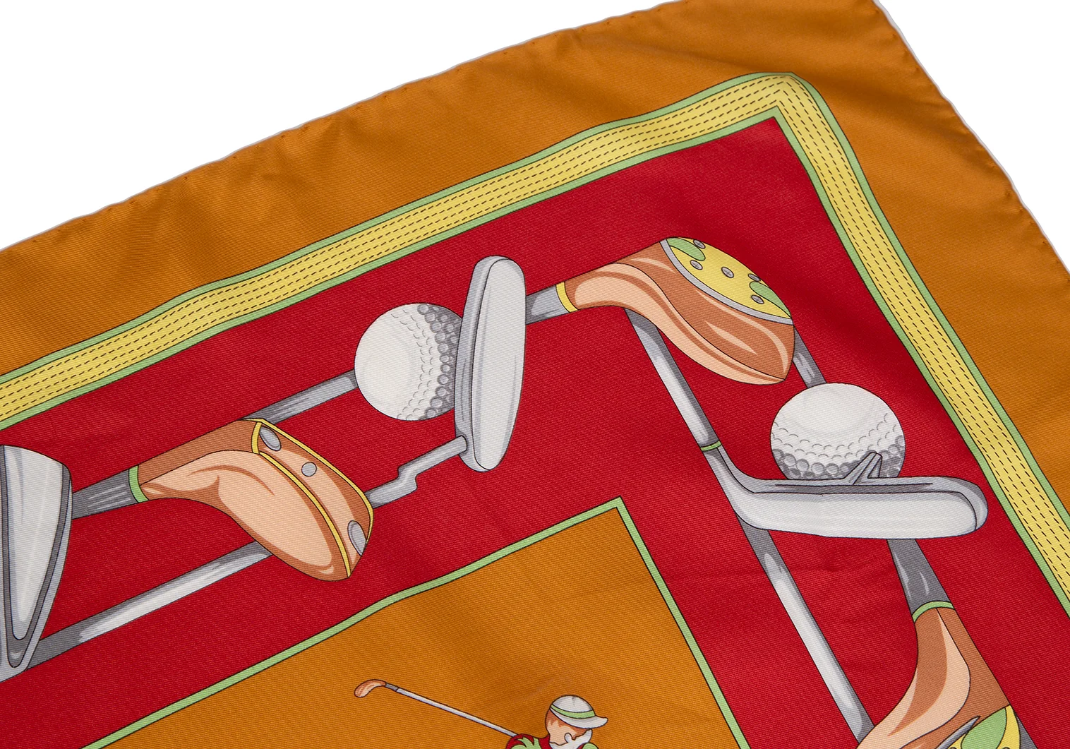 ロエべLOEWE ゴルフ総柄シルクスカーフ オレンジ赤