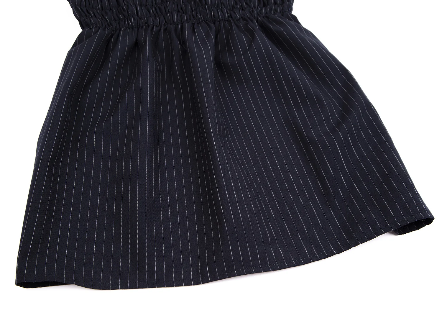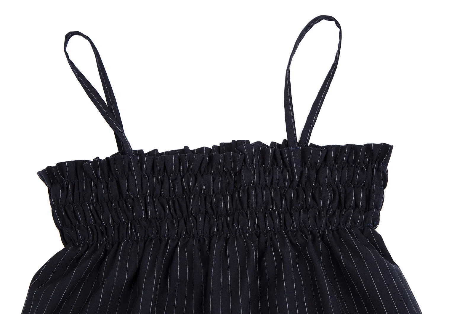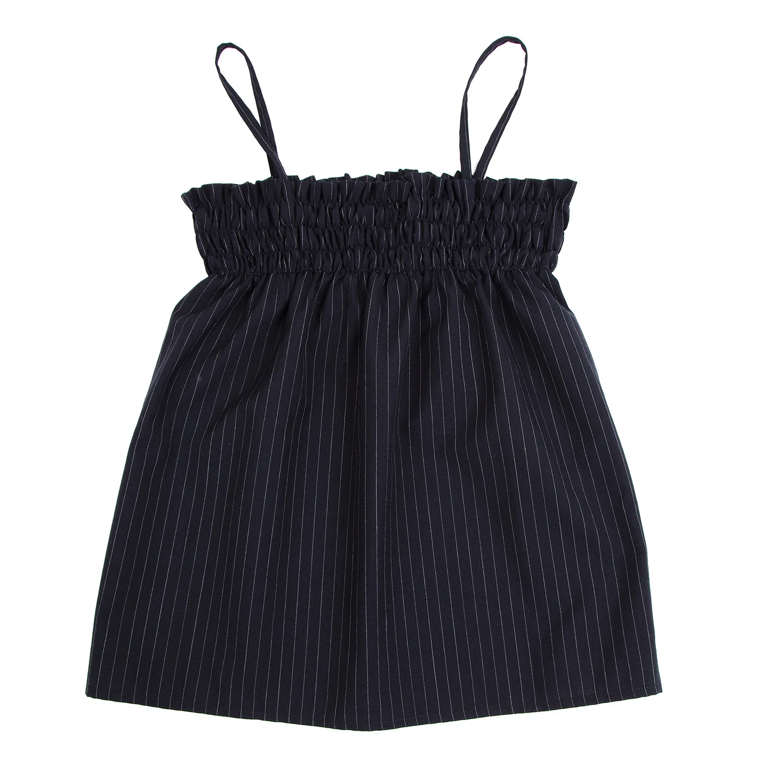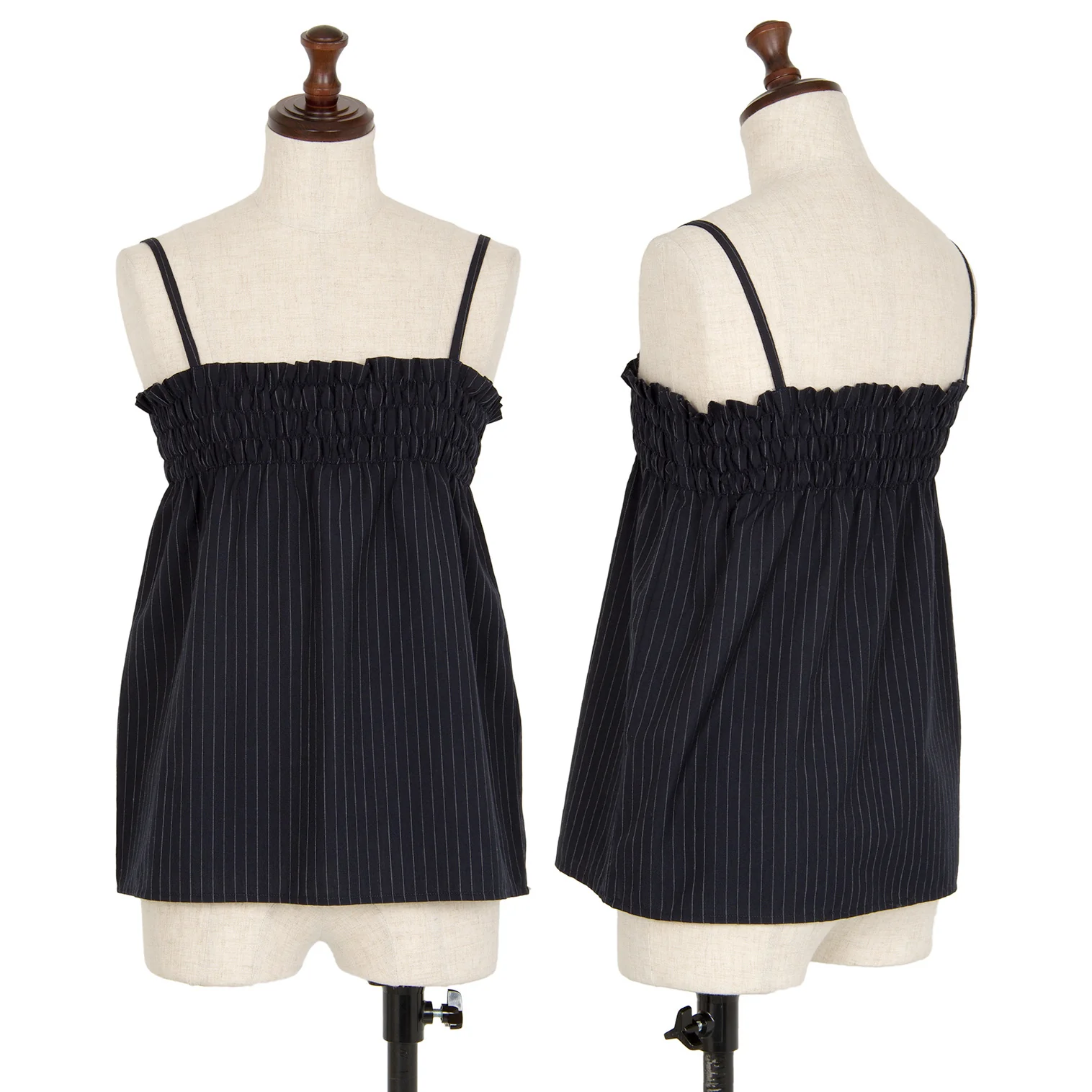ビームスボーイBEAMS BOY ポリウールギャザーストライプキャミソール 紺F
