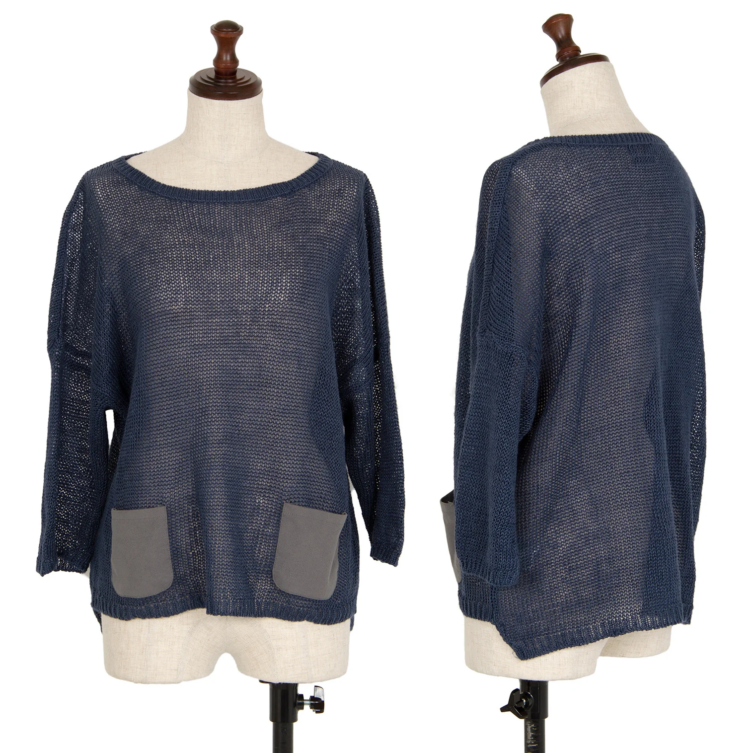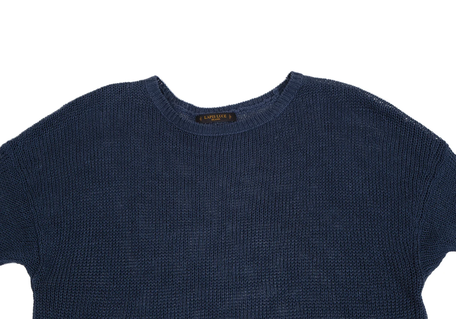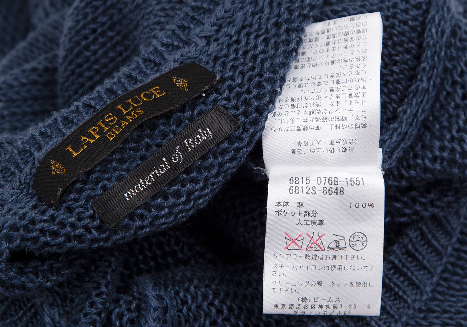 ラピスルーチェビームス LAPIS LUCE BEAMS フェイクレザーポケット切替メッシュ半袖ニットセーター 青M位