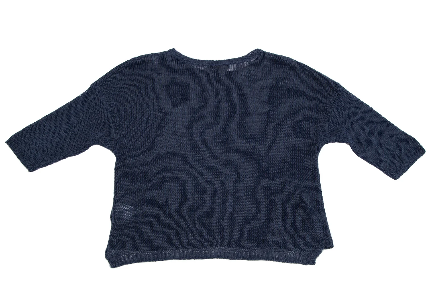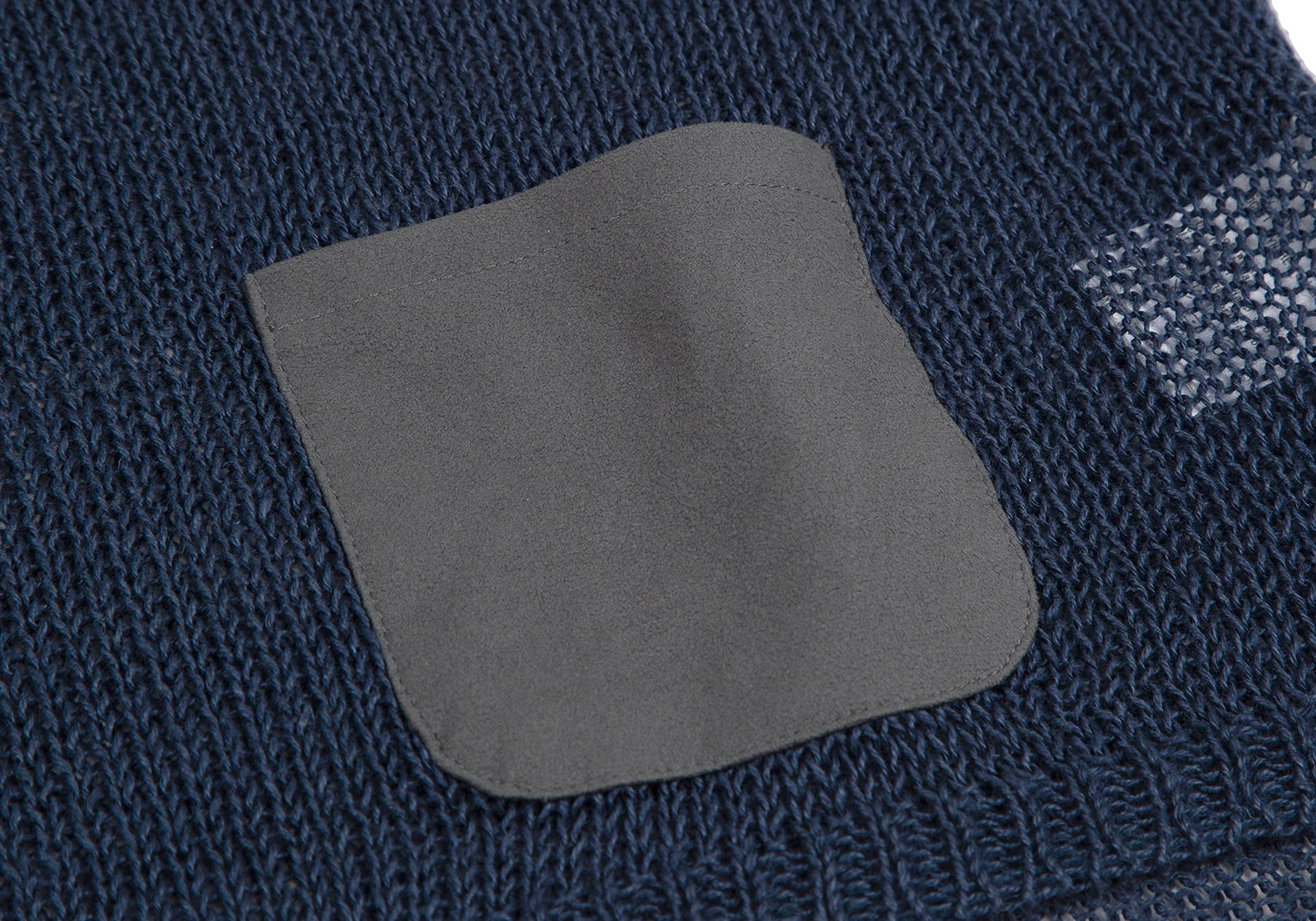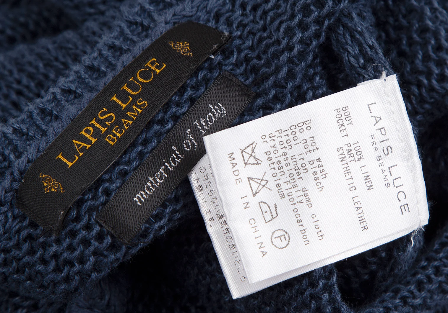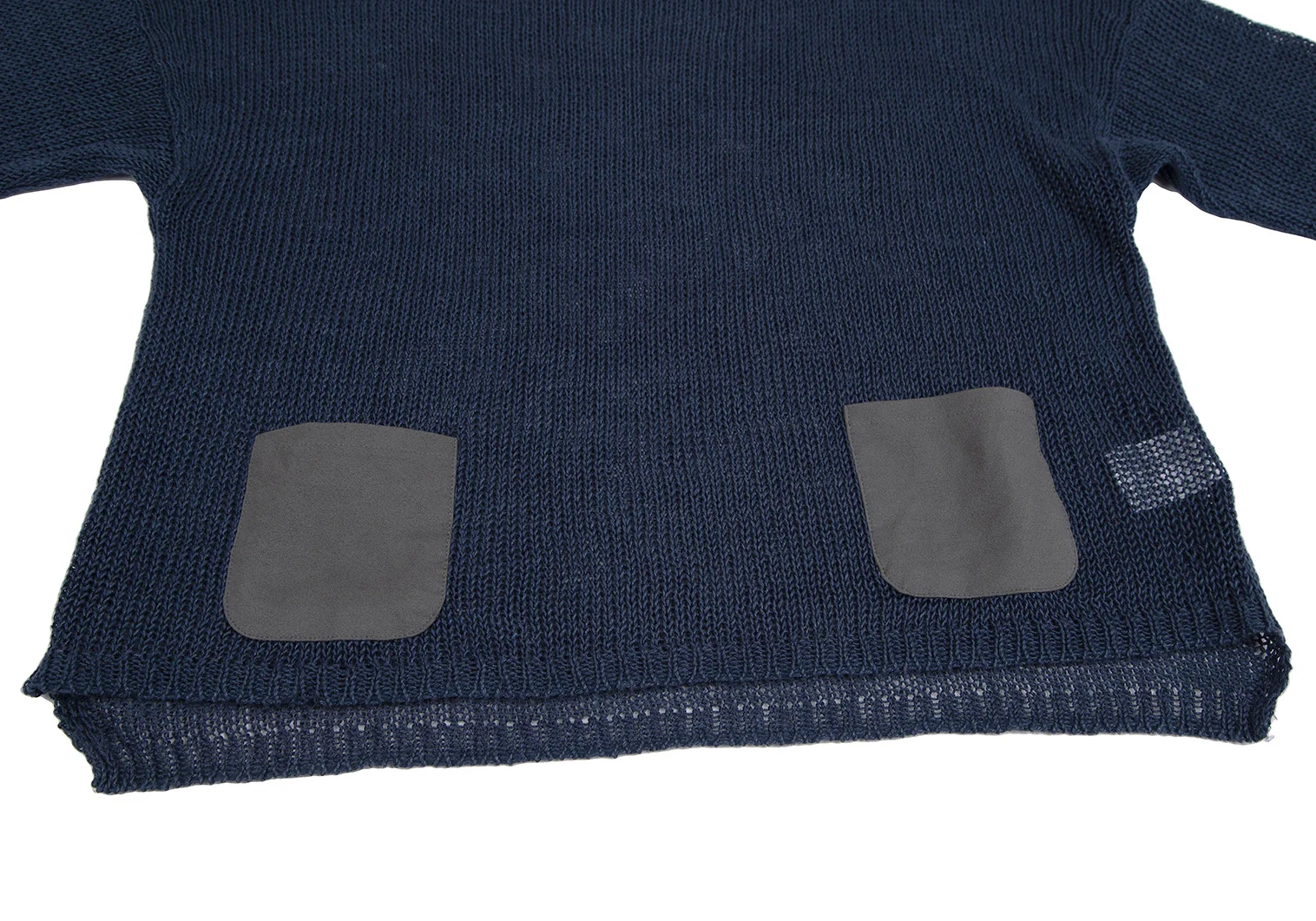 ラピスルーチェビームス LAPIS LUCE BEAMS フェイクレザーポケット切替メッシュ半袖ニットセーター 青M位
