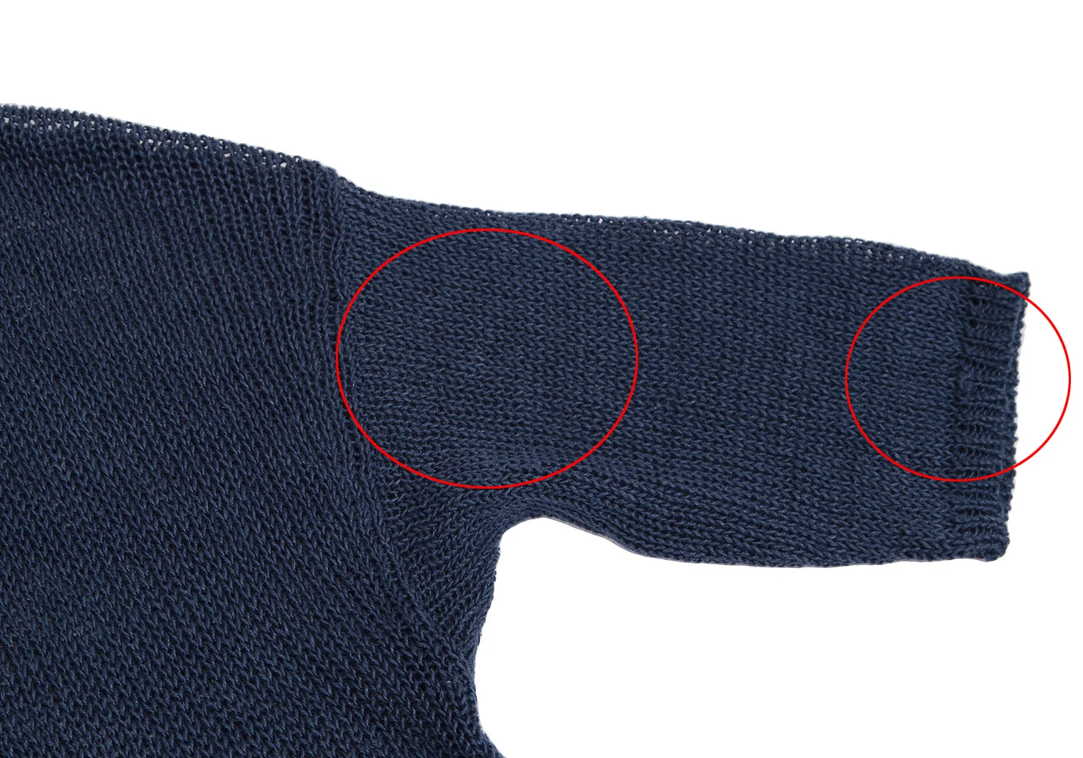 透け感があります。左袖に薄汚れ、袖先に引っかけがあります(画像参照)。その他目立ったシミ、汚れ、ほつれ等なくいい状態です。クリーニング済み