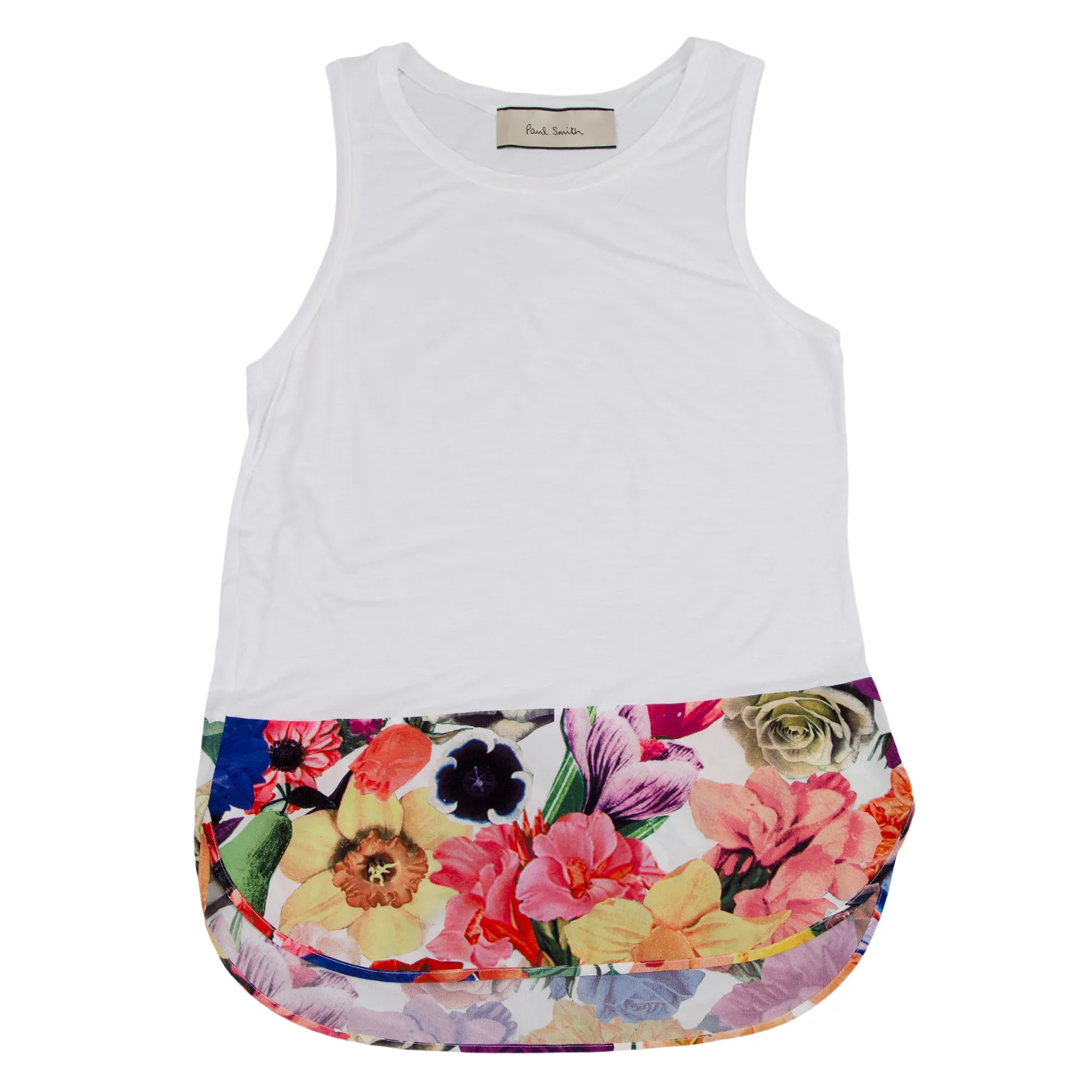 ポールスミスPaul Smith 裾花柄切替タンクトップ 白マルチM