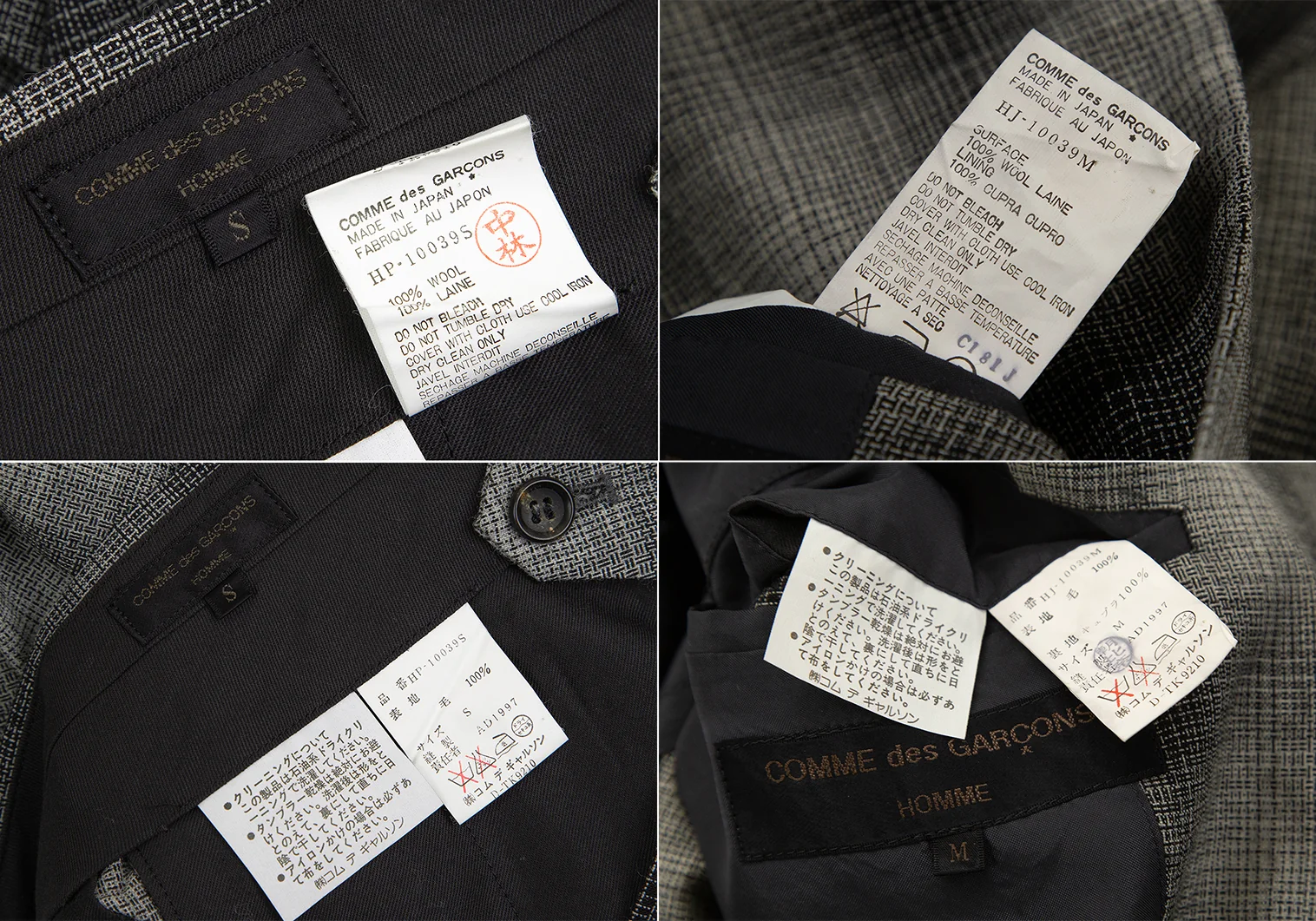 ジャケット:肩パッドあり。左袖に薄シミがあります(写真参照)その他目立ったシミ、汚れ、ほつれ等なくいい状態です。クリーニング済み