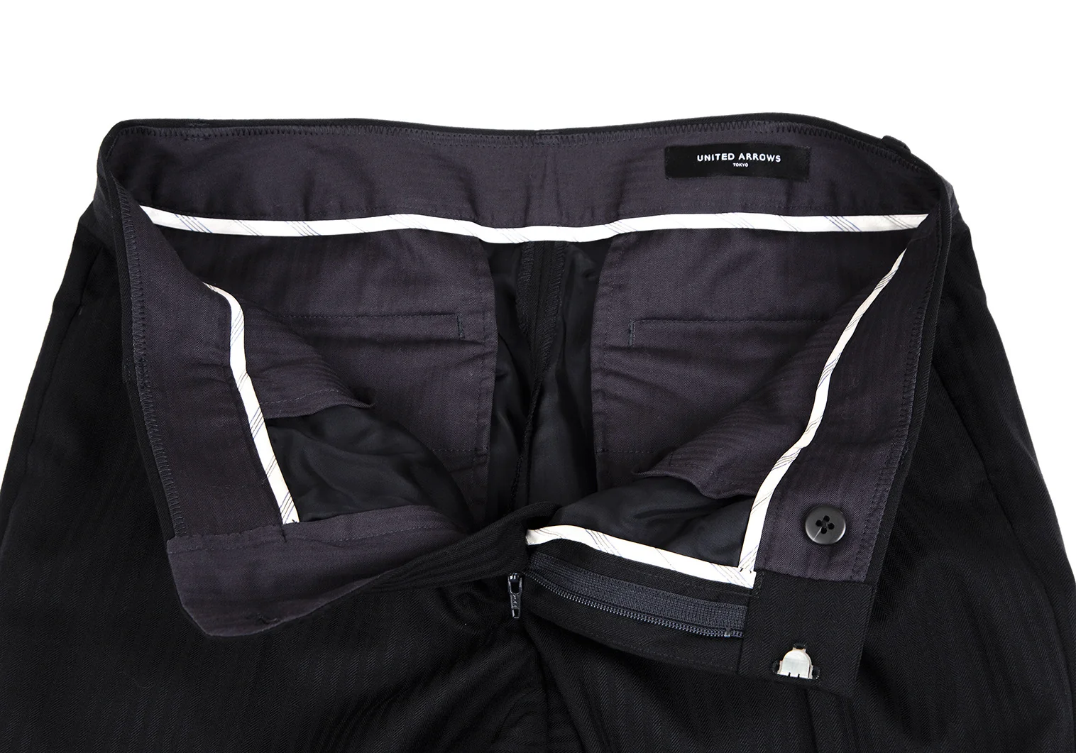 ユナイテッドアローズUNITED ARROWS ウールストライプ織りストレートパンツ 黒38