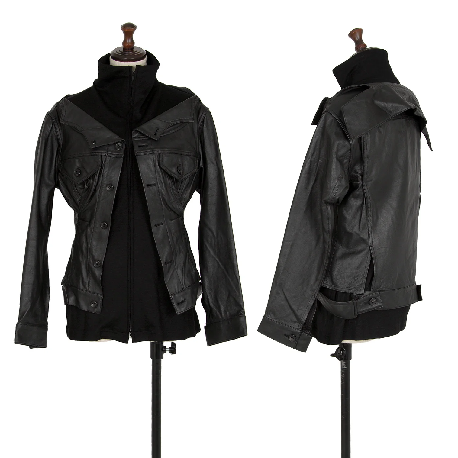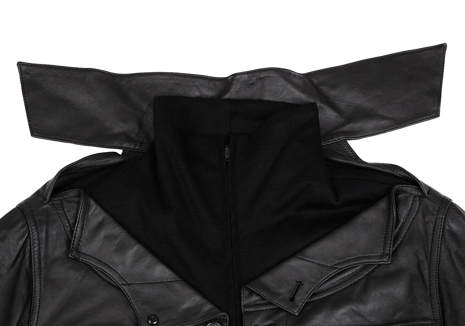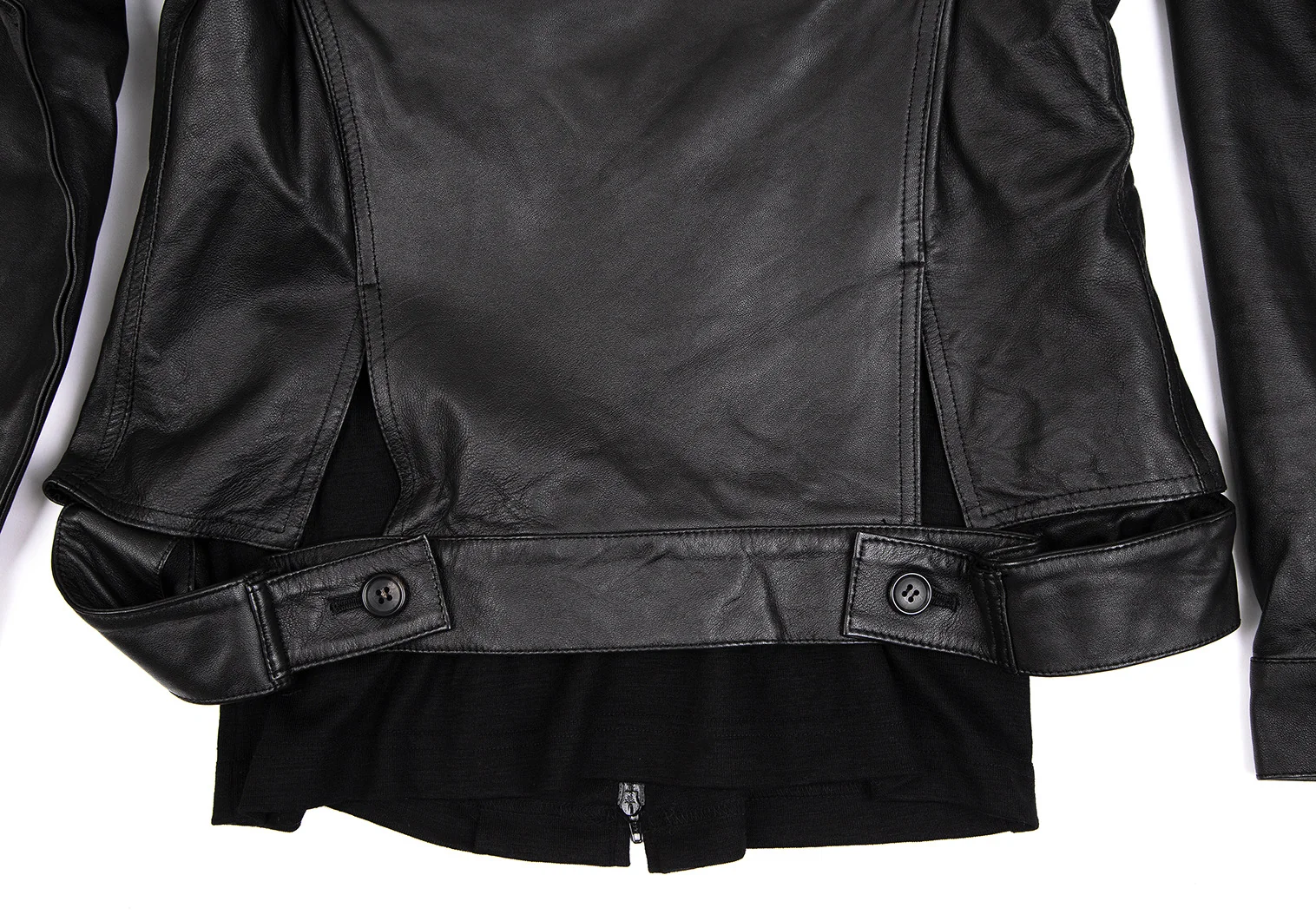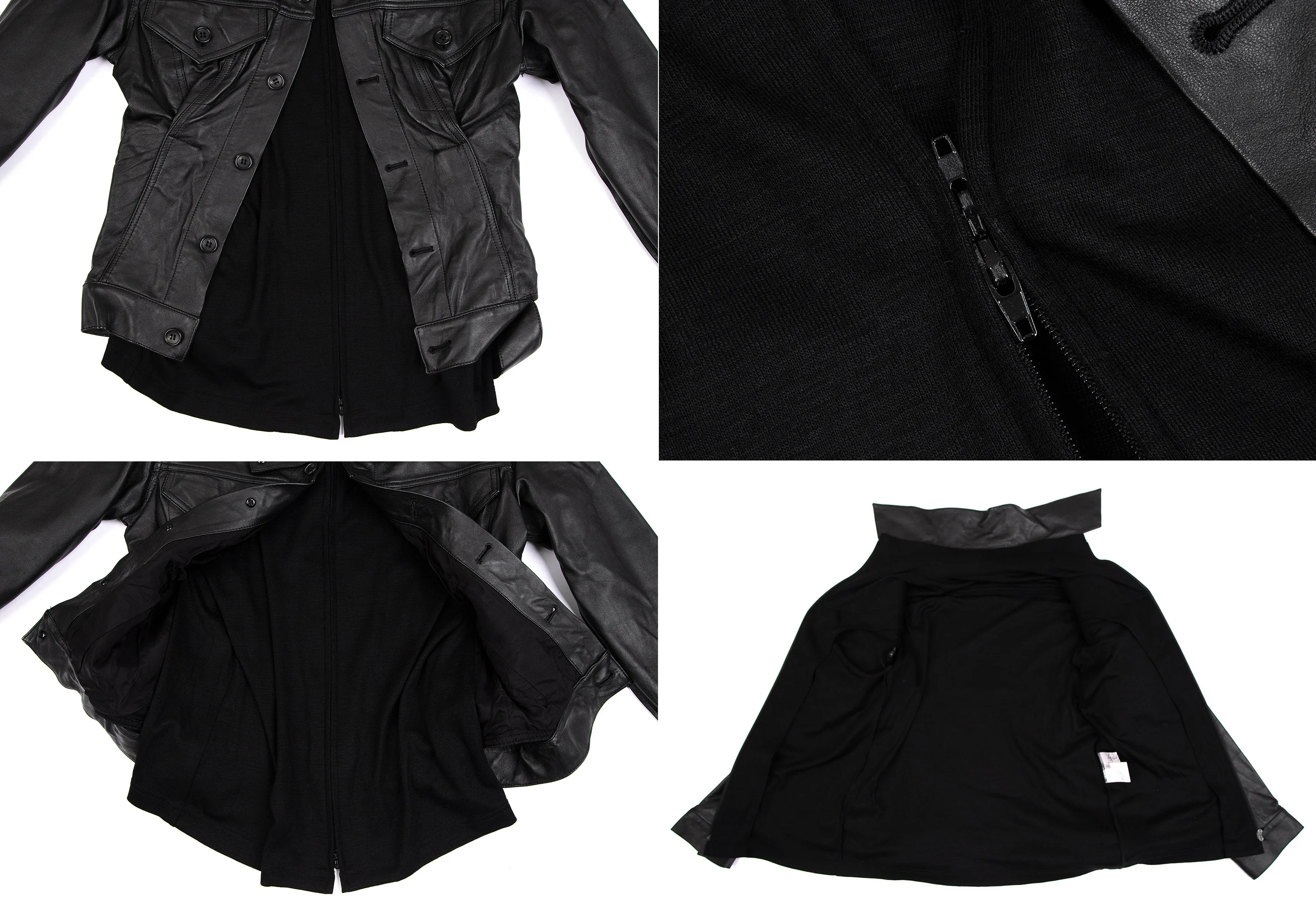 ヨウジヤマモト ファムYohji Yamamoto FEMME ラムレザードッキングダブルジップジャケット 黒1