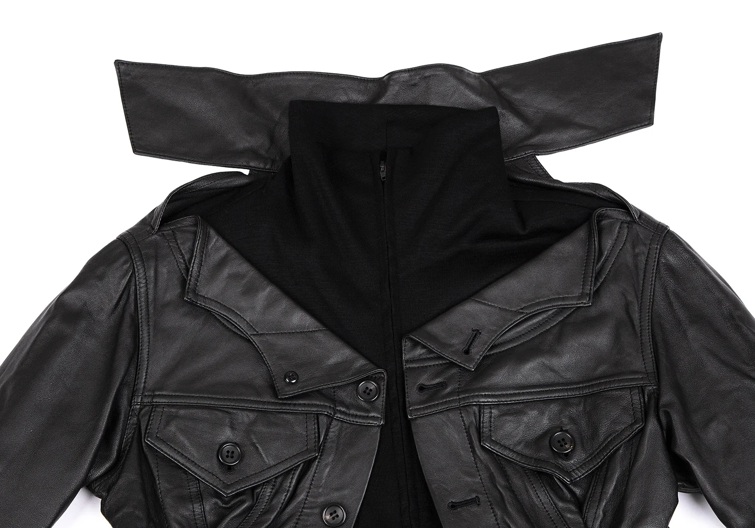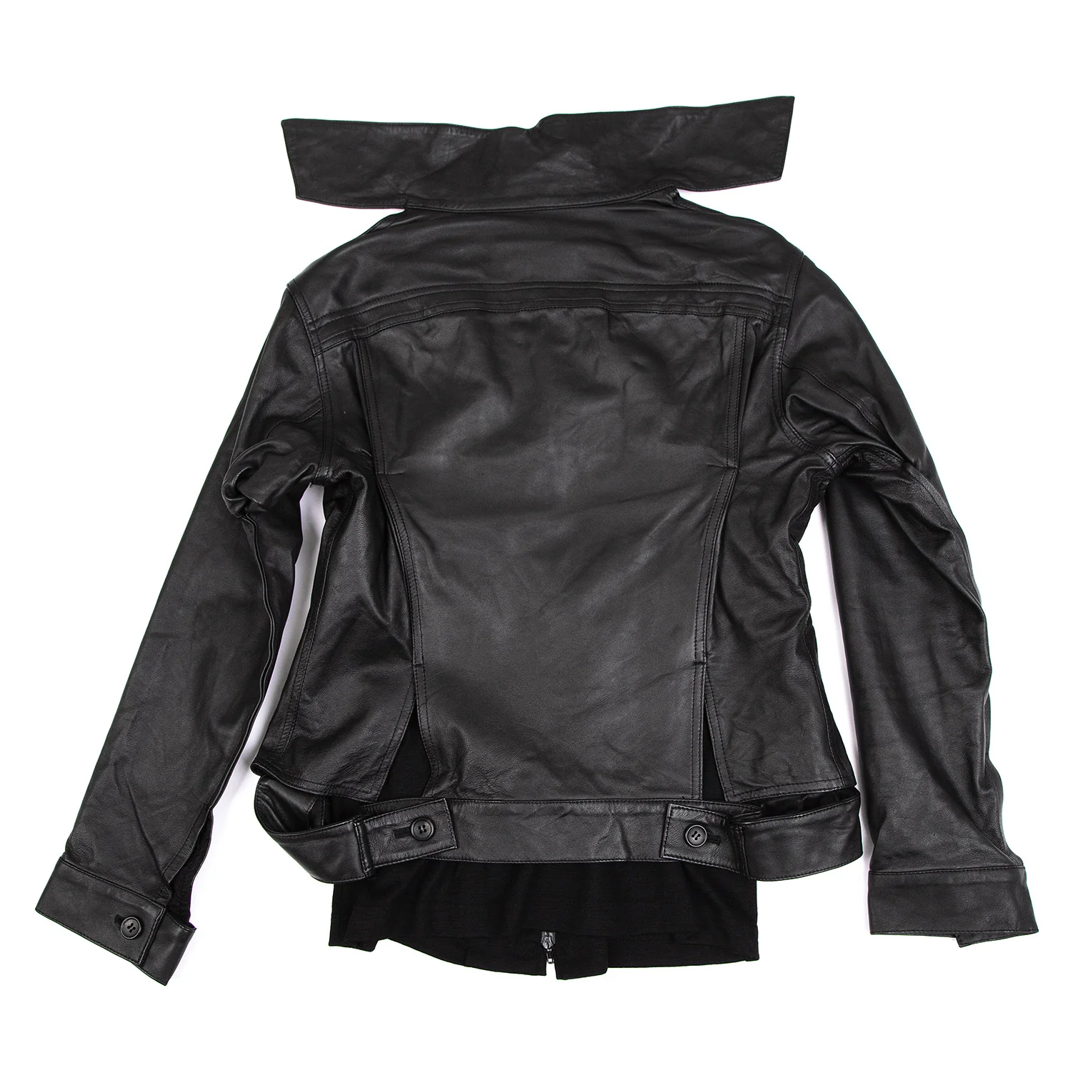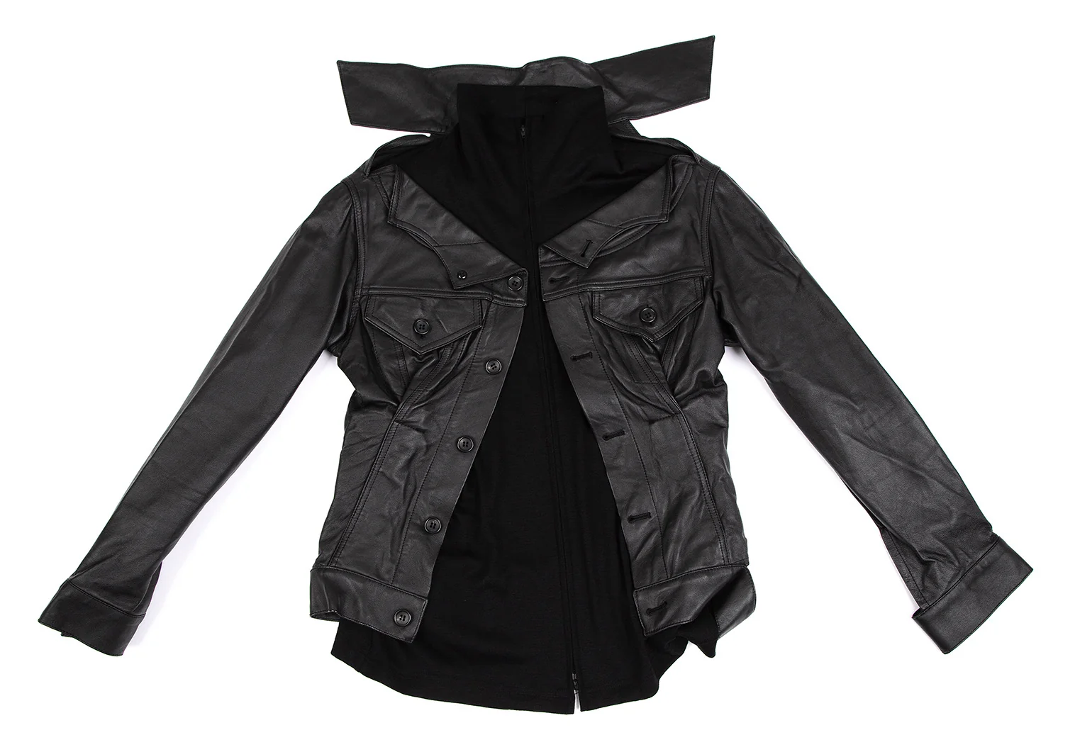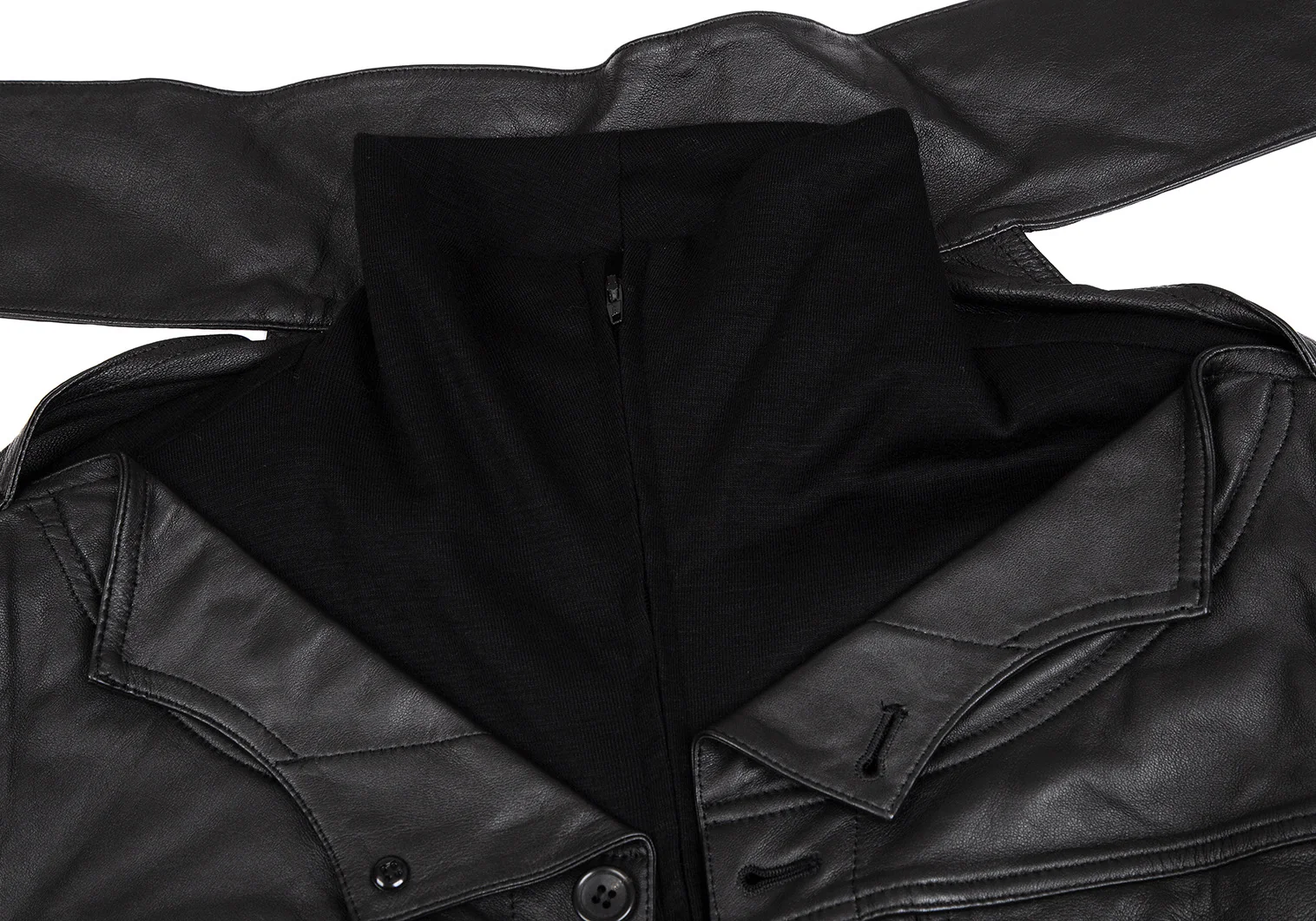 ヨウジヤマモト ファムYohji Yamamoto FEMME ラムレザードッキングダブルジップジャケット 黒1