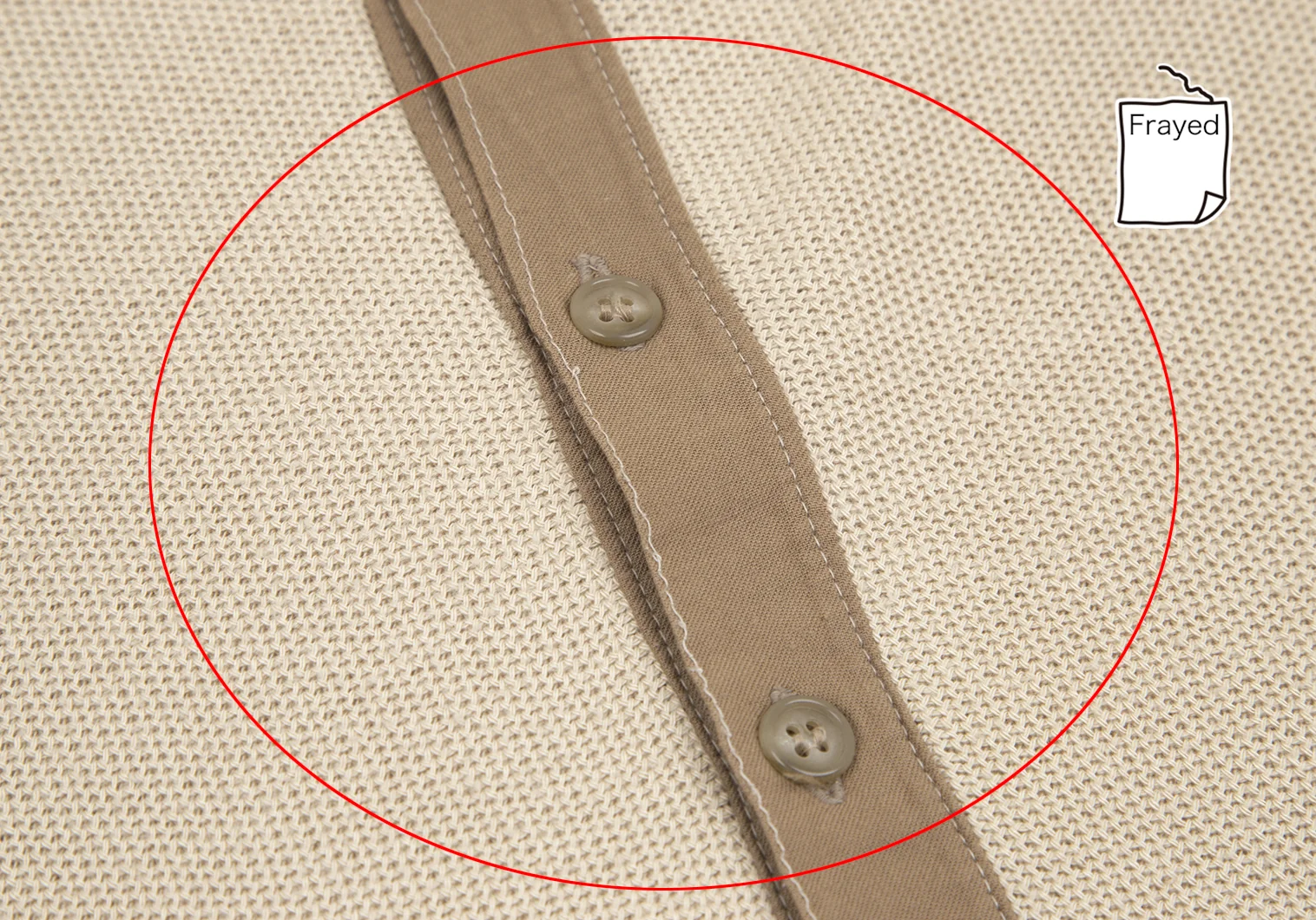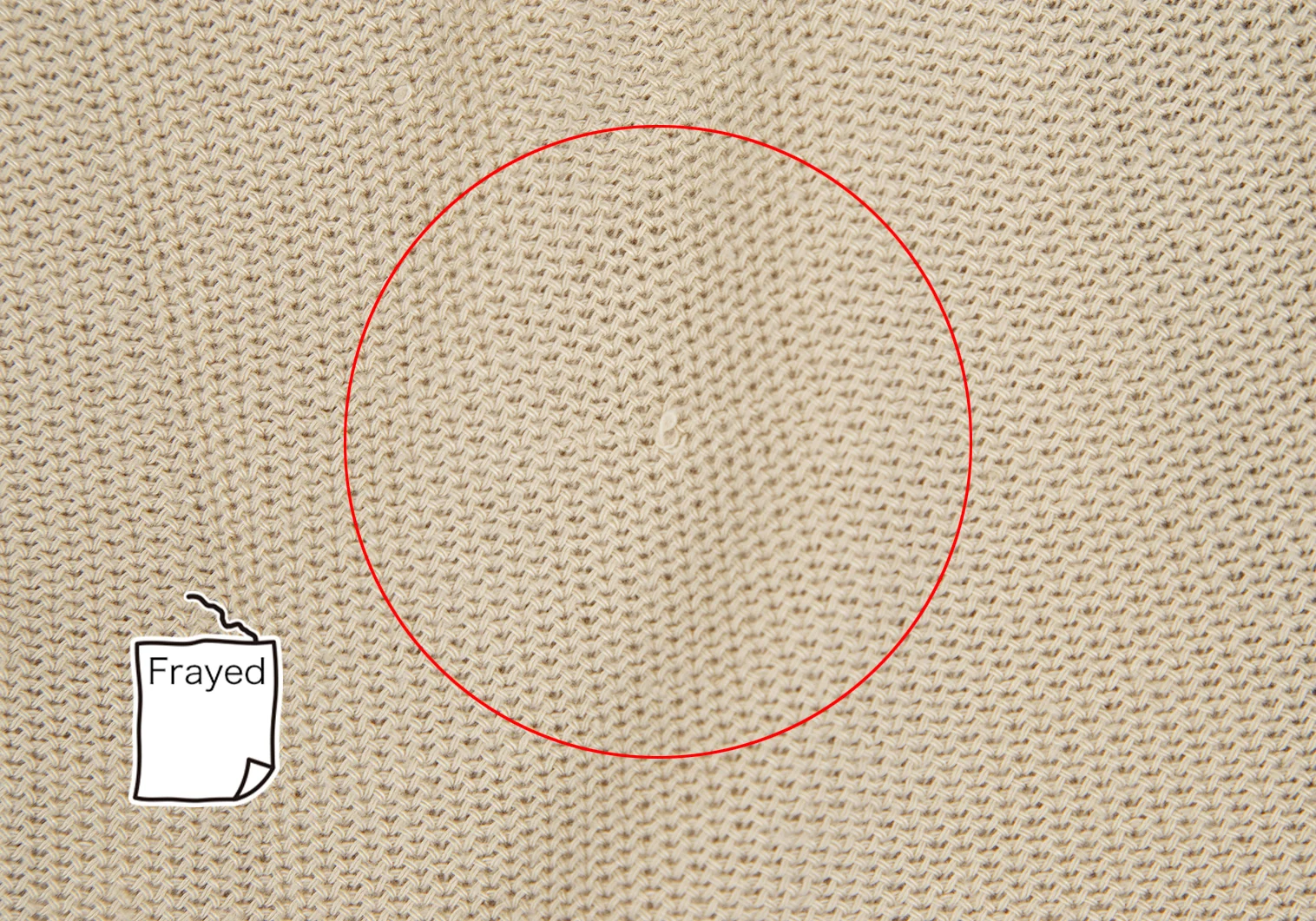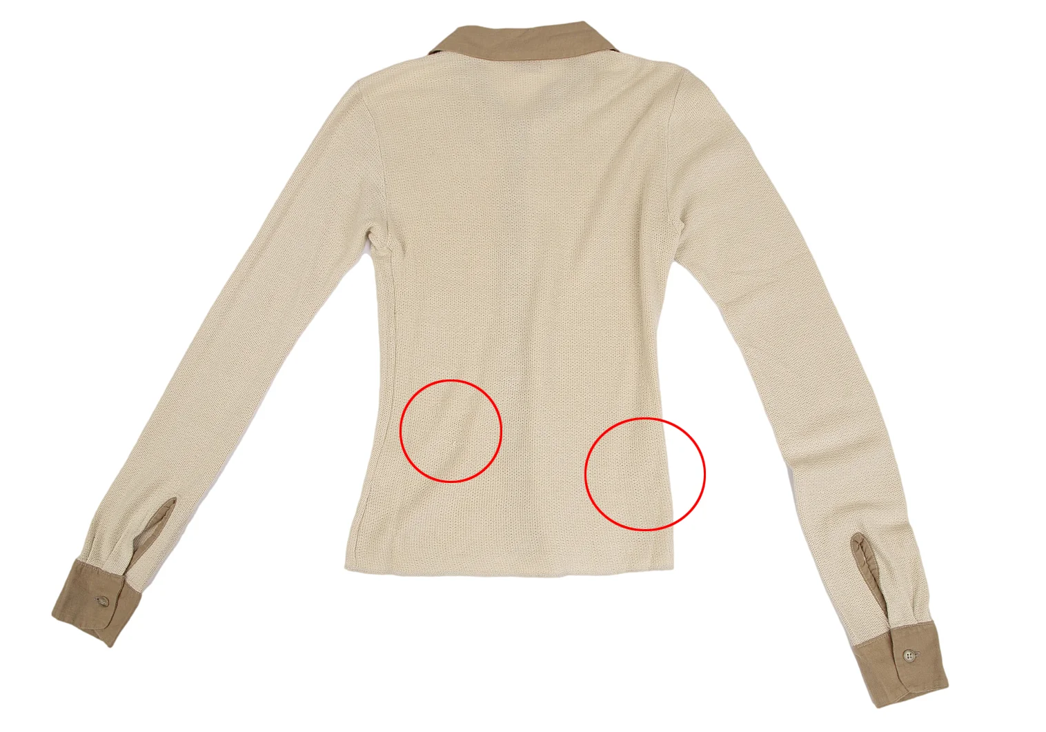 透け感があります。前立てステッチにほつれ、右袖・後ろ裾に引っ掛け、後ろ裾にスレがあります(写真参照)その他目立ったシミ、汚れ、ほつれ等なくいい状態です。クリーニング済み