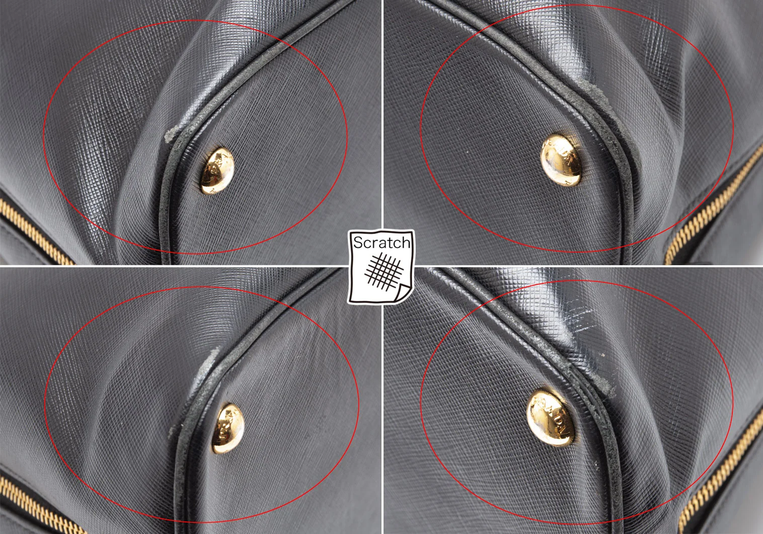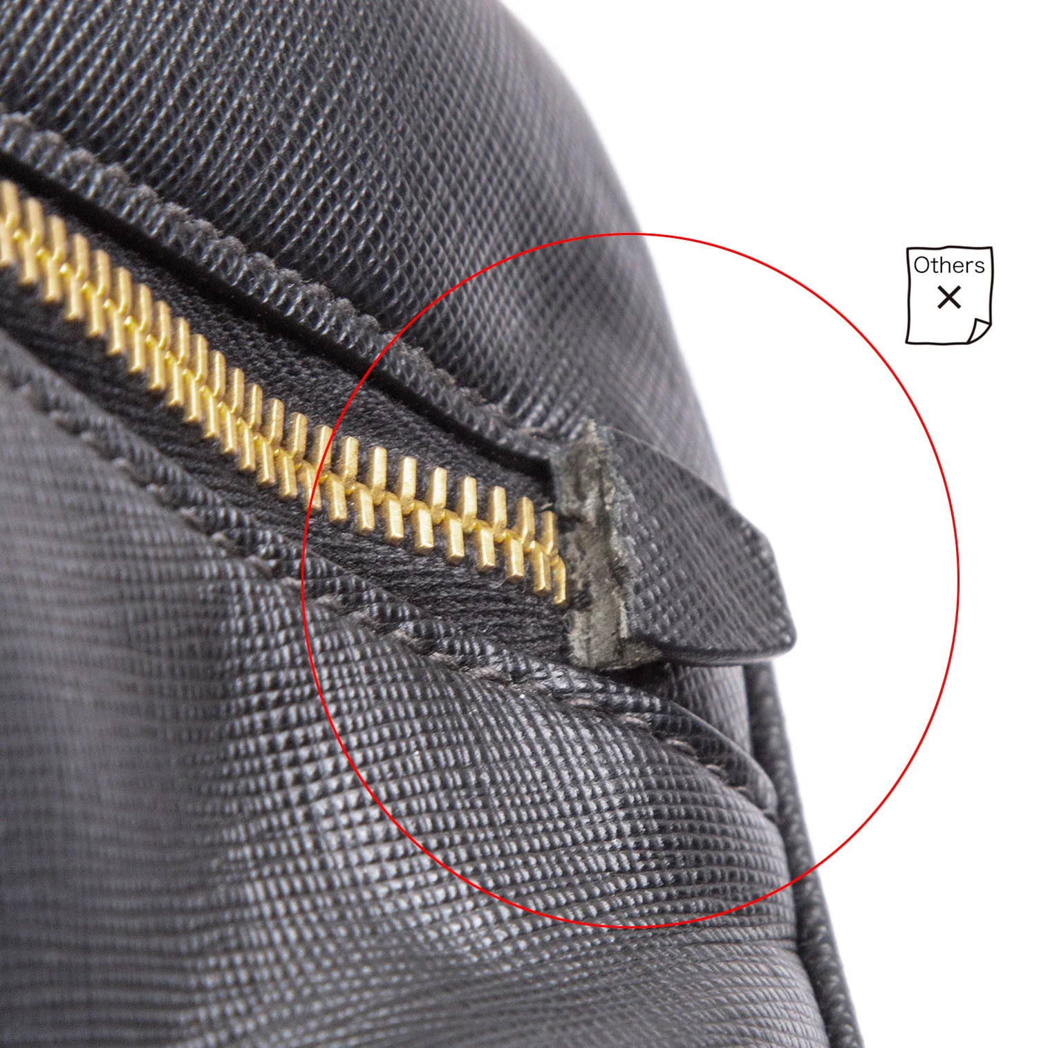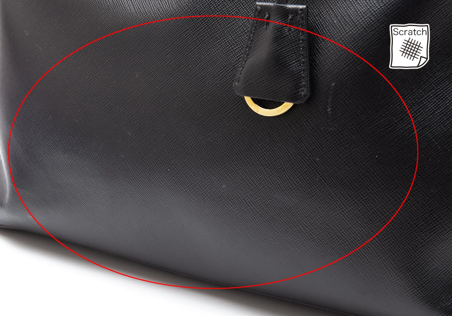 全体に使用感・擦れ傷、サイドのジップ根元パーツにダメージ、ファスナー引き手のメッキ剥がれがあります(写真参照)。その他目立った傷や汚れなどはありません。