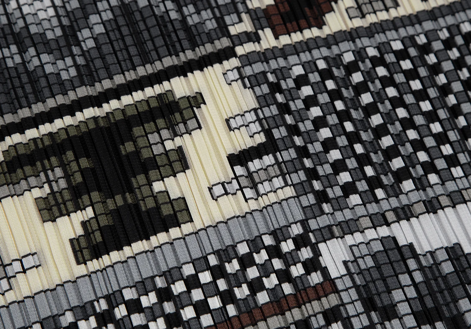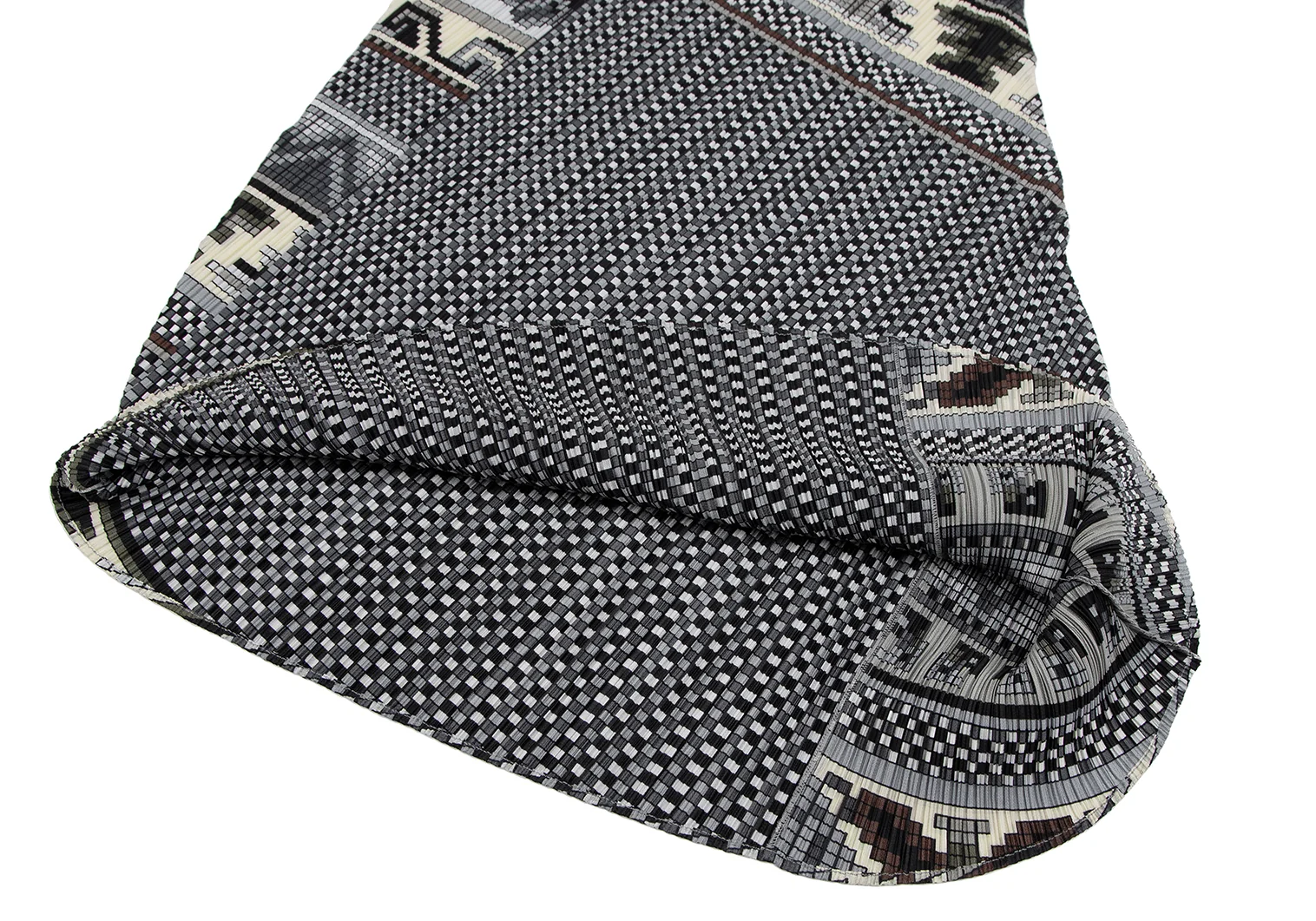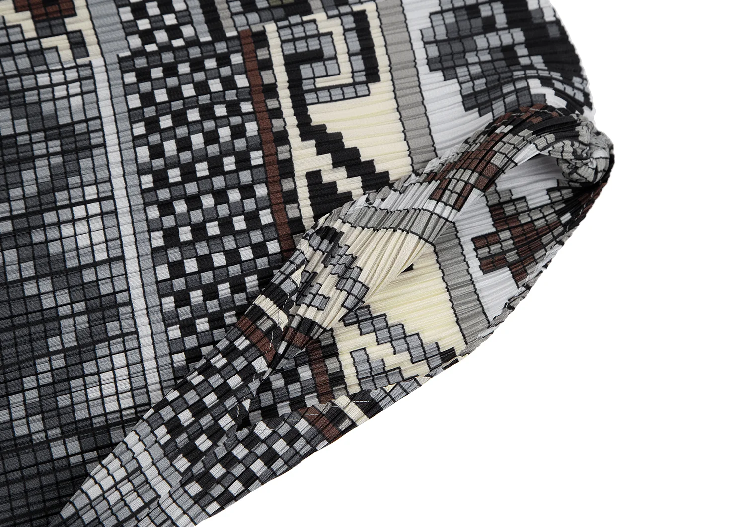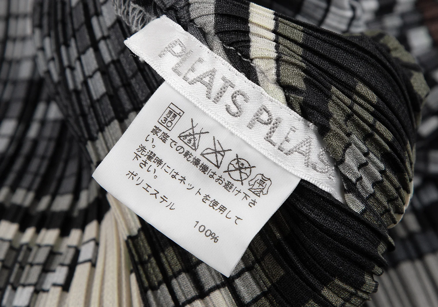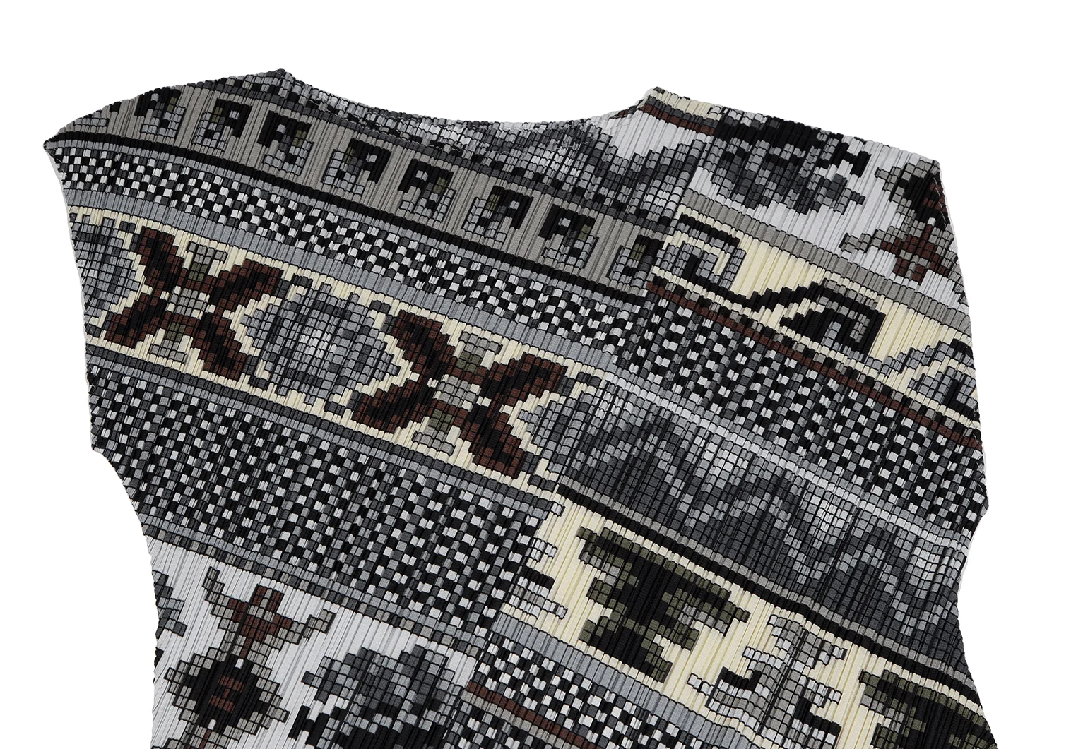 プリーツプリーズPLEATS PLEASE 斜行ブロックプリントプリーツノースリーブワンピース グレーマルチ1