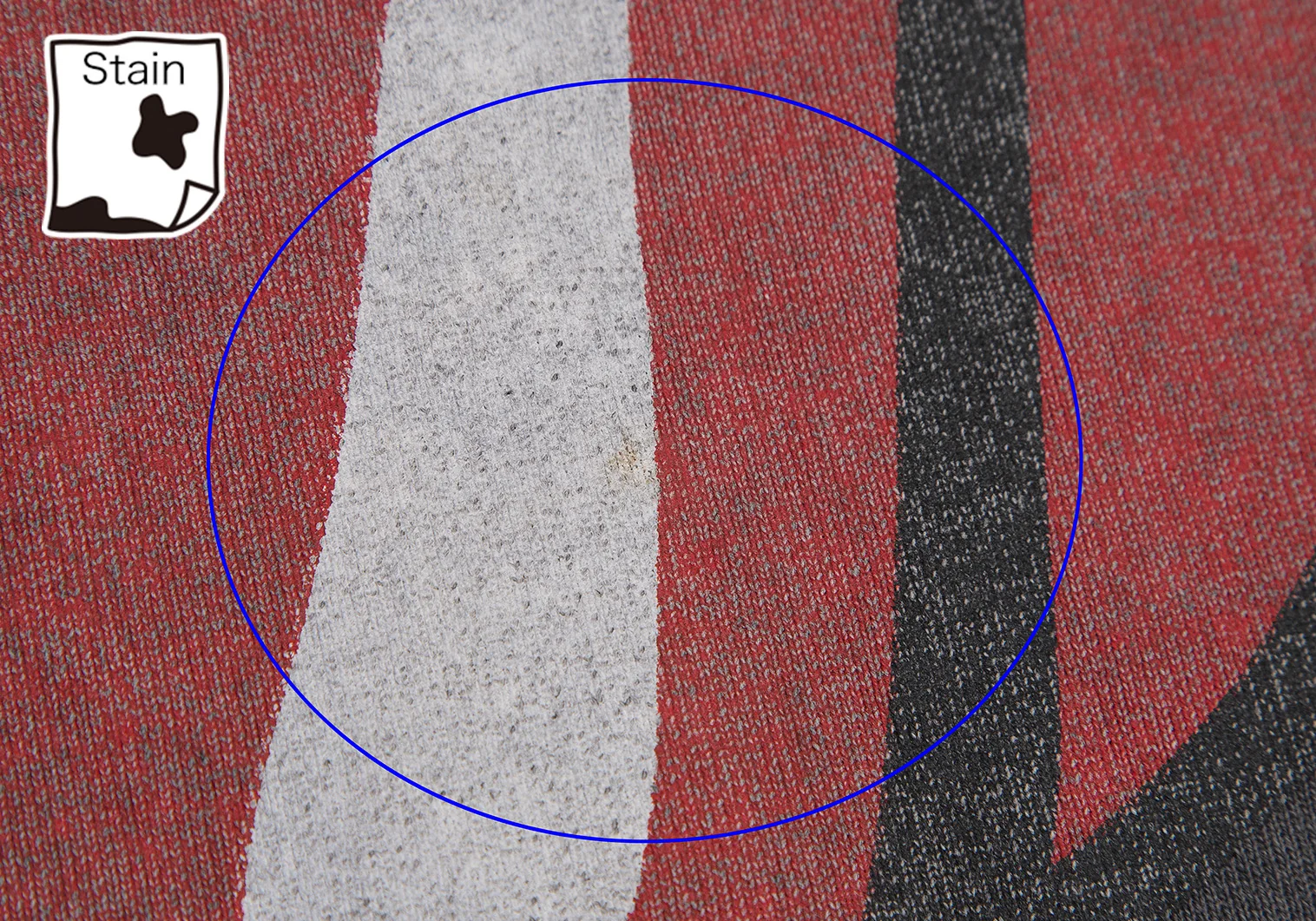 首周り・右脇・前身頃に薄汚れ、左脇に穴あきがあります(画像参照)。その他目立ったシミ、汚れ、ほつれ等なくいい状態です。クリーニング済み