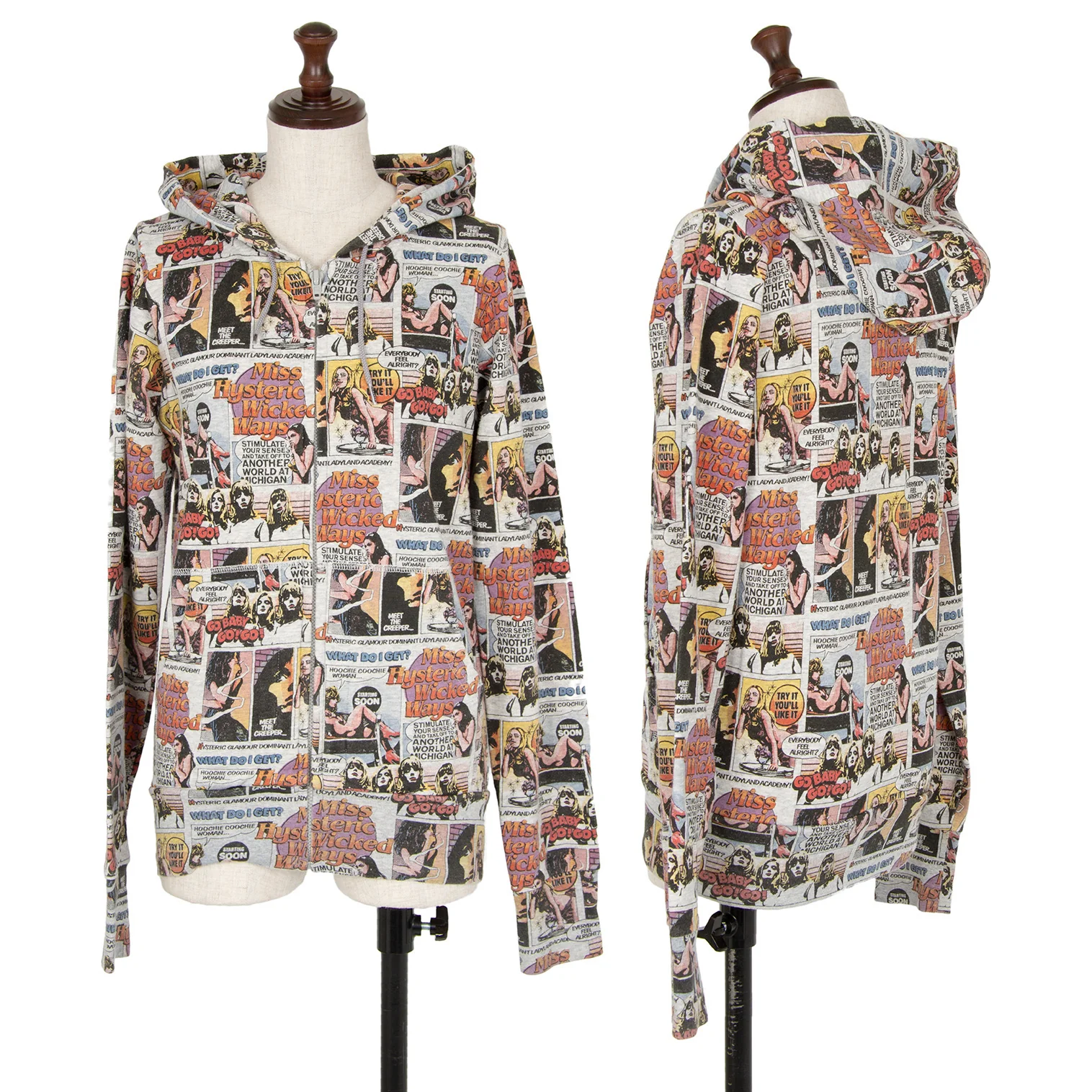 ヒステリックグラマーHYSTERIC GLAMOUR アメコミガールプリントジップアップパーカー 杢グレーF