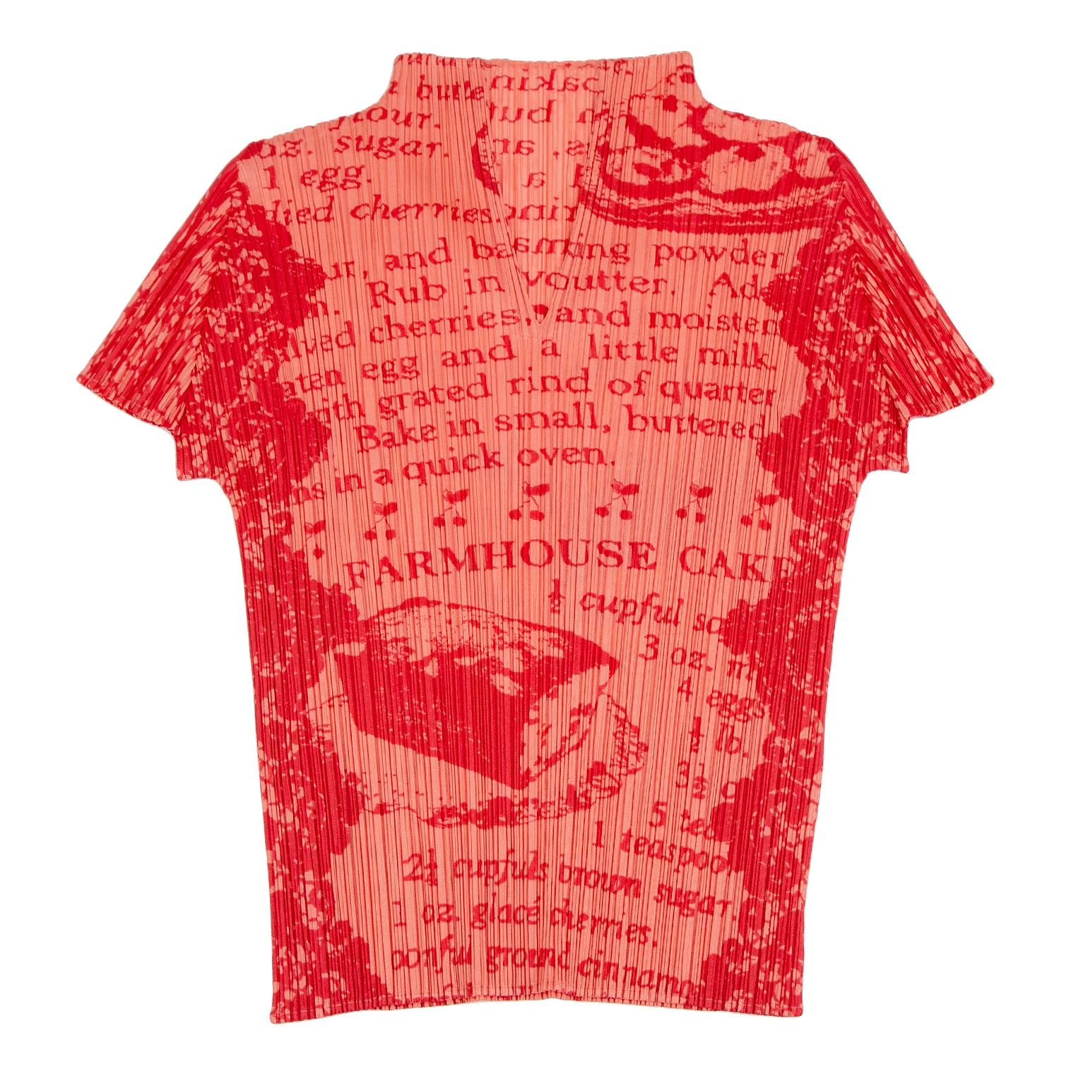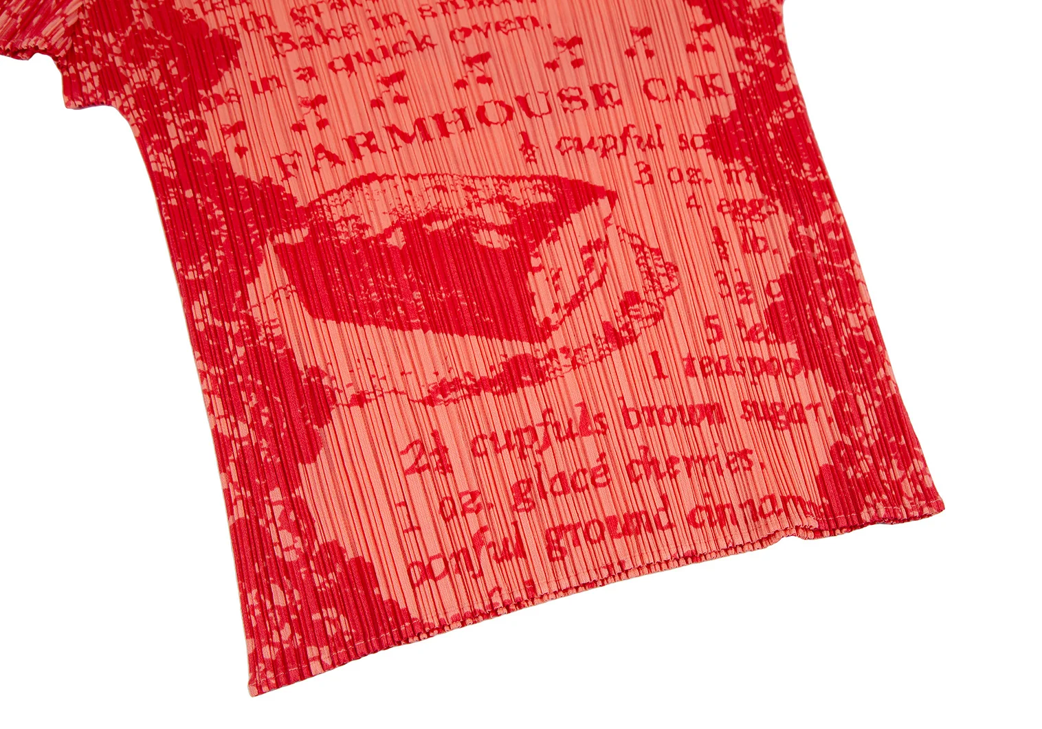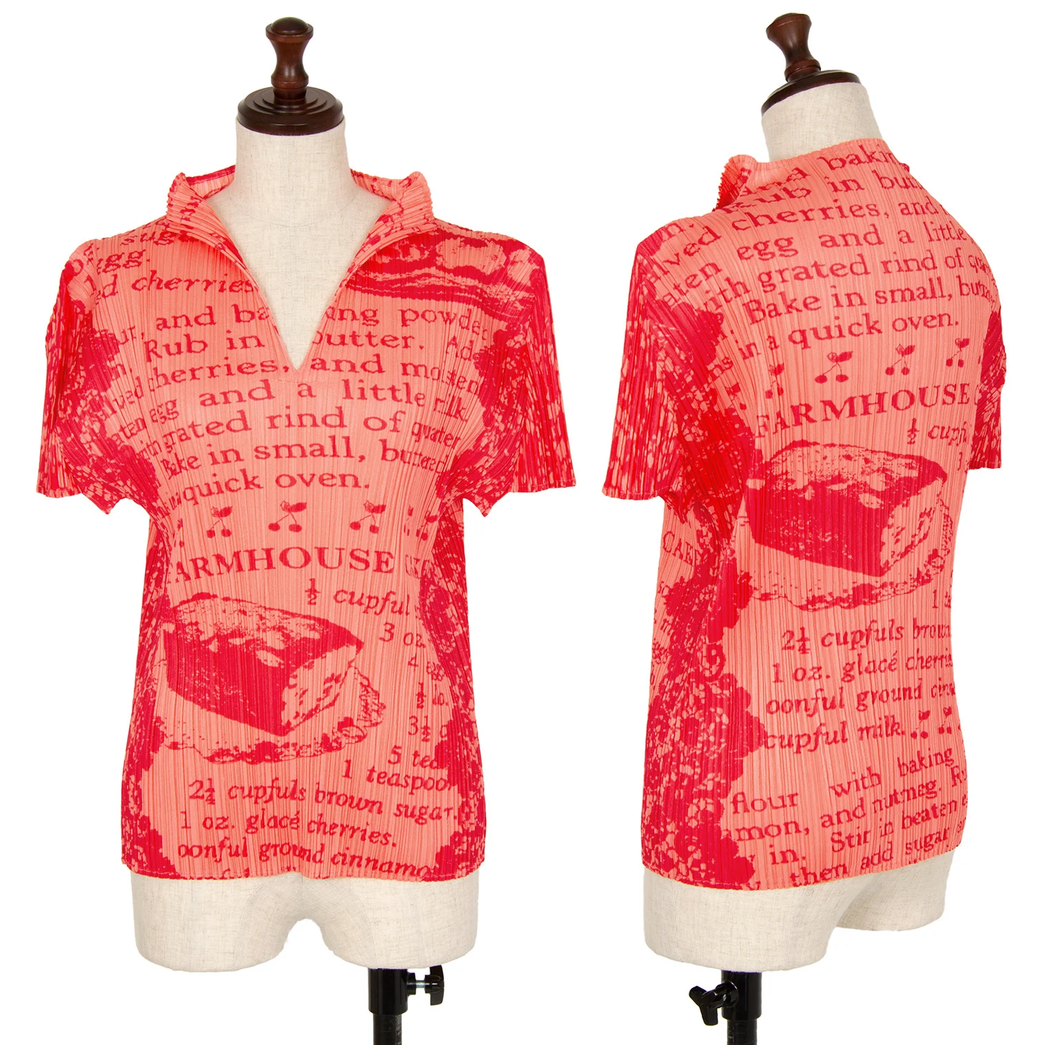 プリーツプリーズPLEATS PLEASE ケーキレシピプリントプリーツ半袖スキッパーシャツ ピンク3