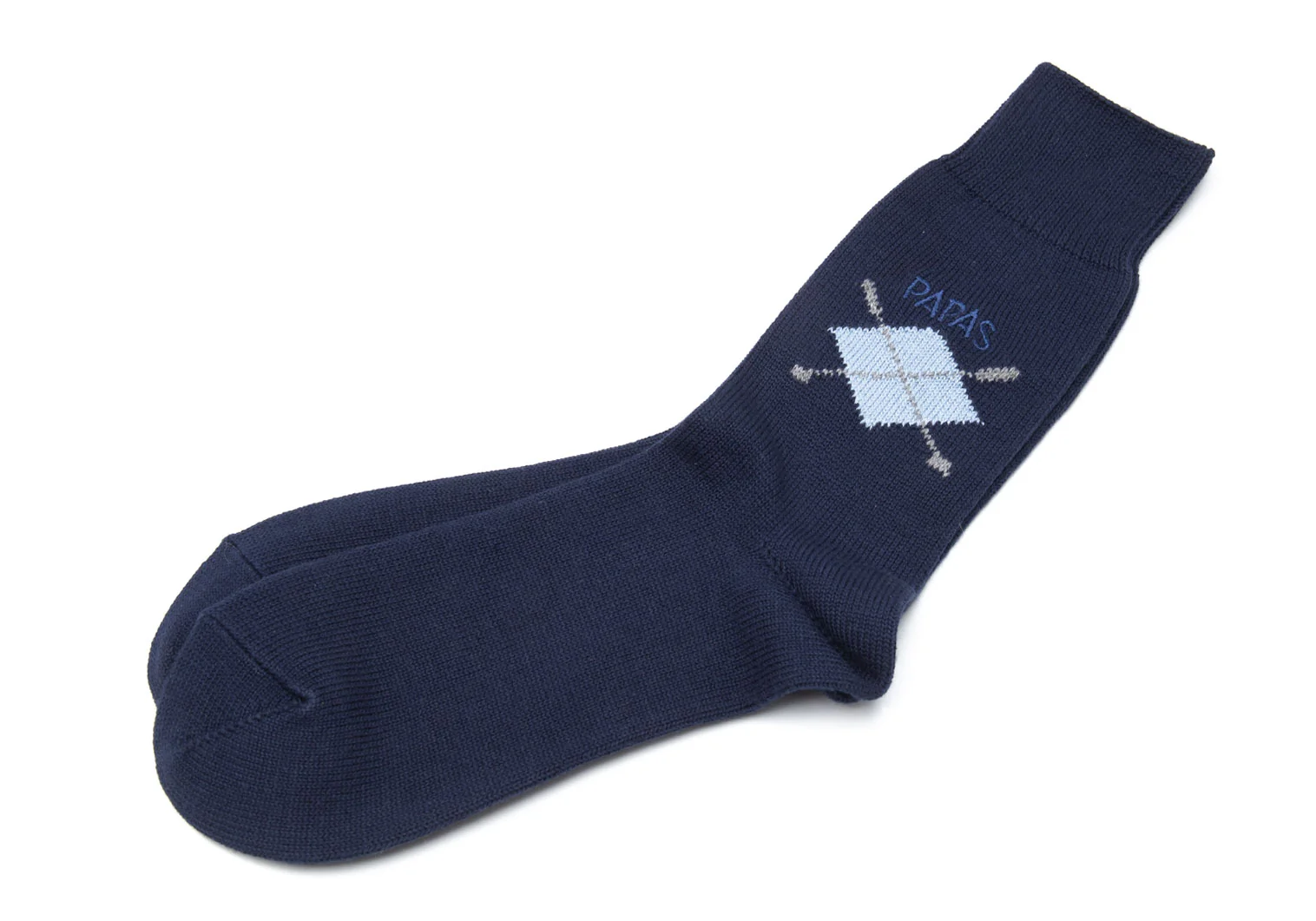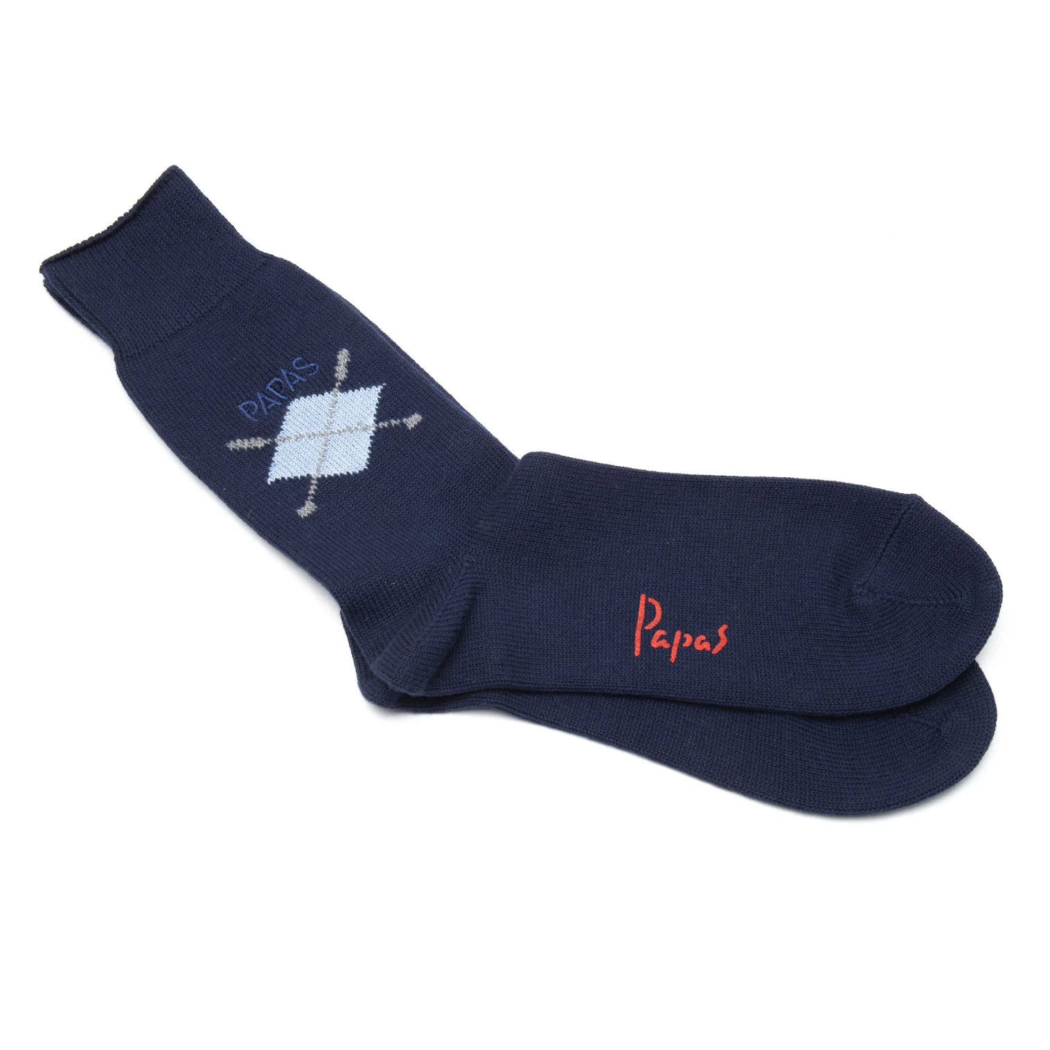 新品!パパスPapas アーガイルソックス ネイビーM位(25cm~27cm)