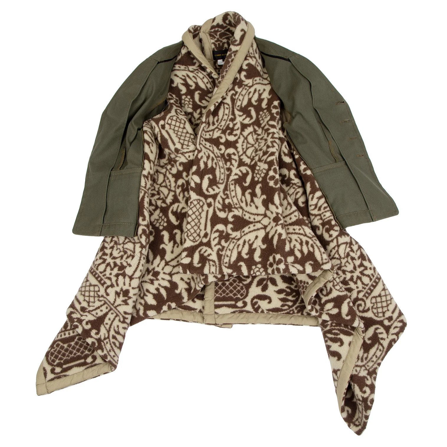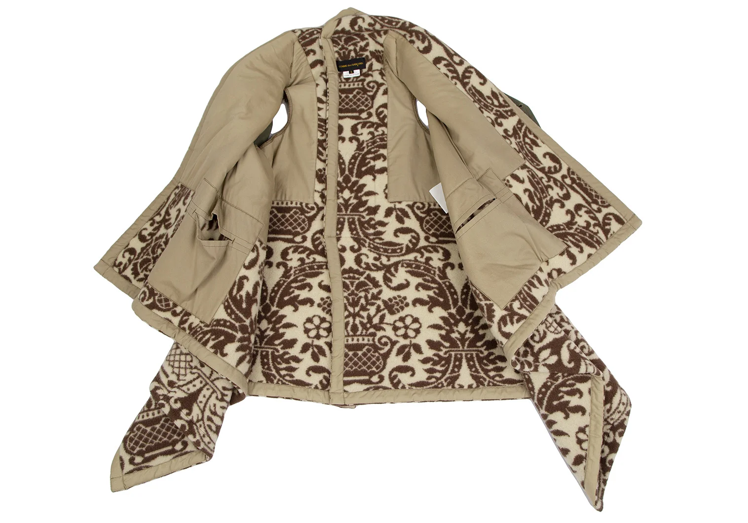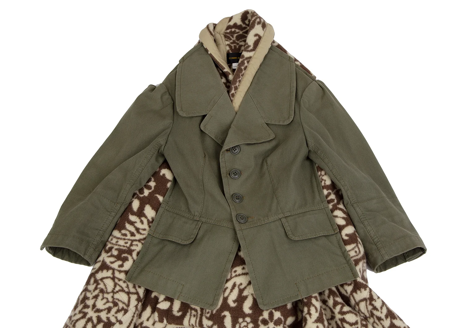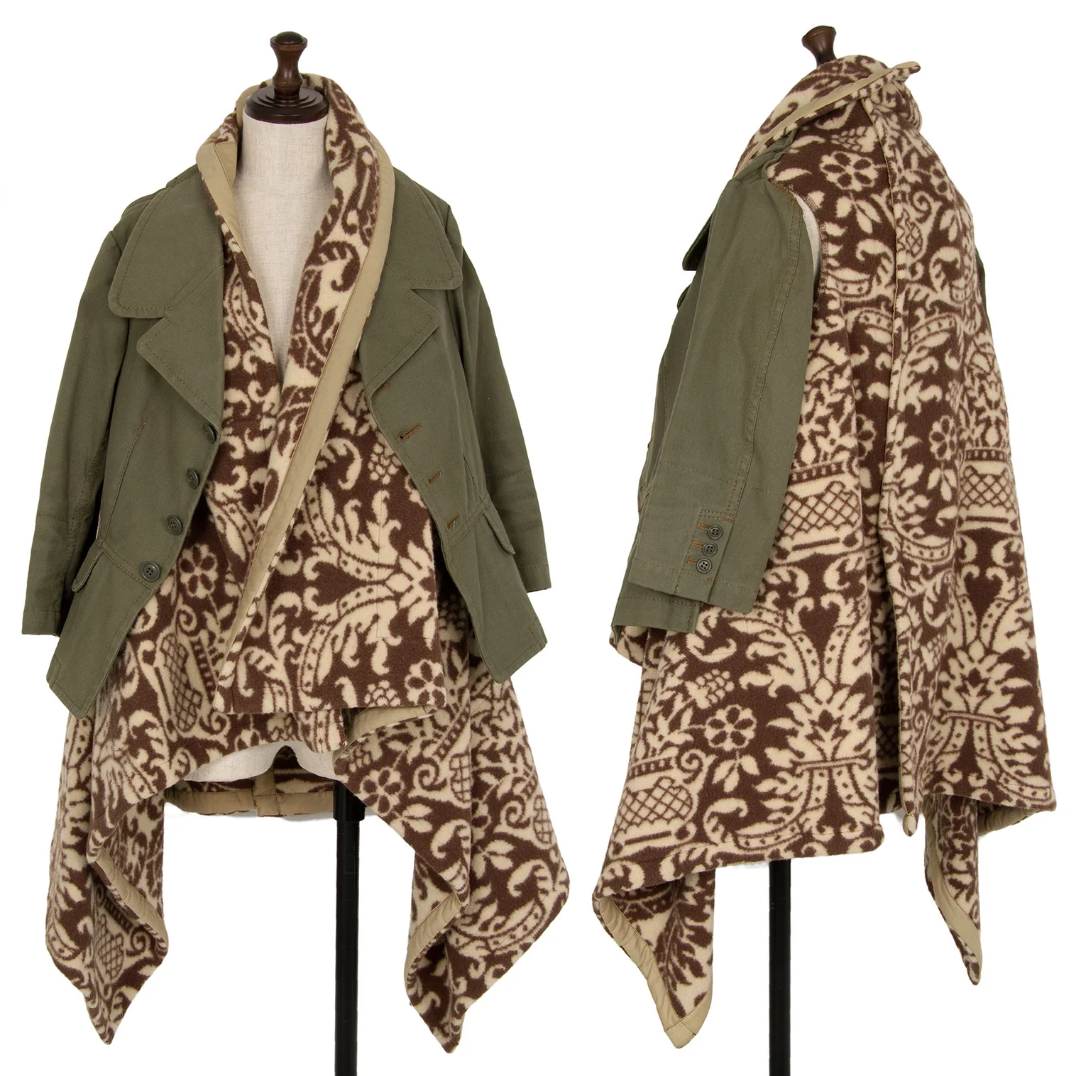 コムデギャルソンCOMME des GARCONS ダマスク柄フリースニット切替ショートジャケットドッキングコート カーキ茶S