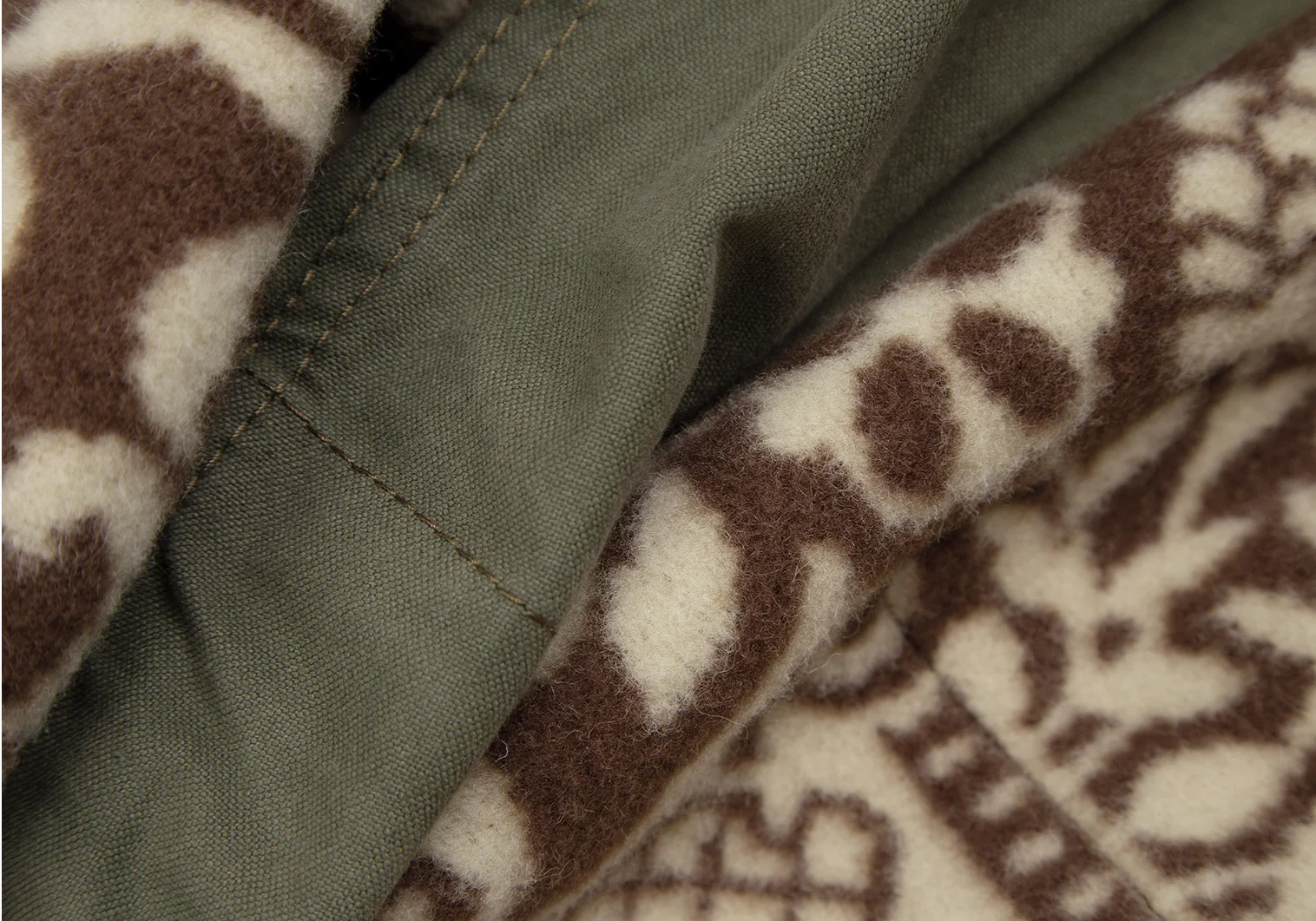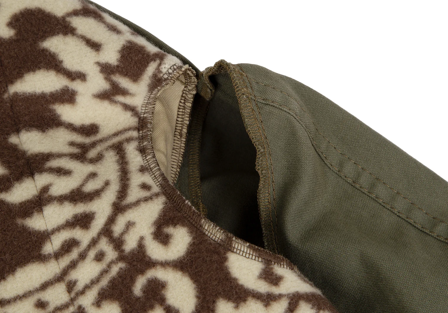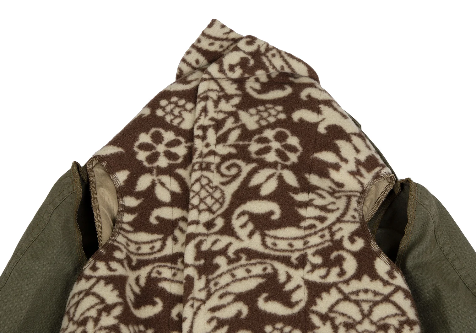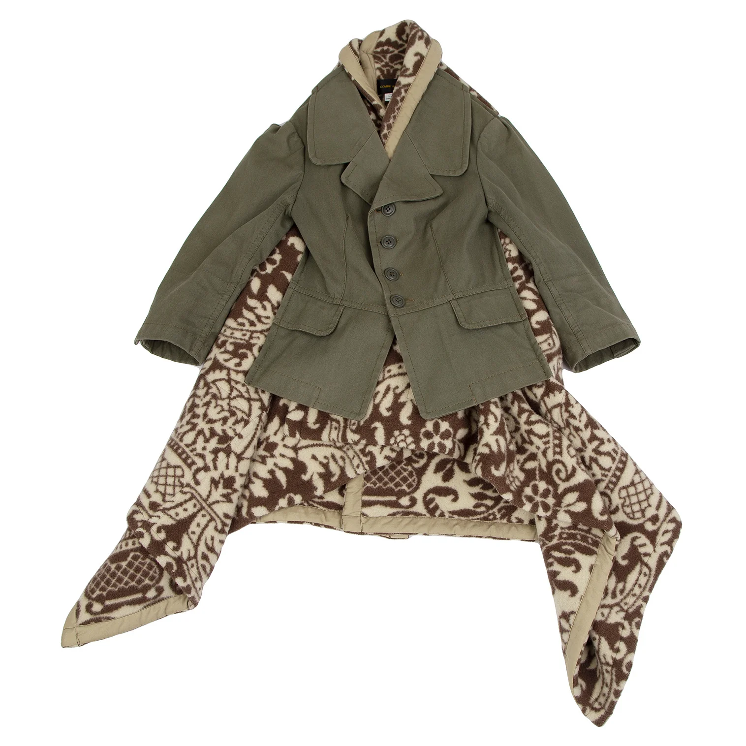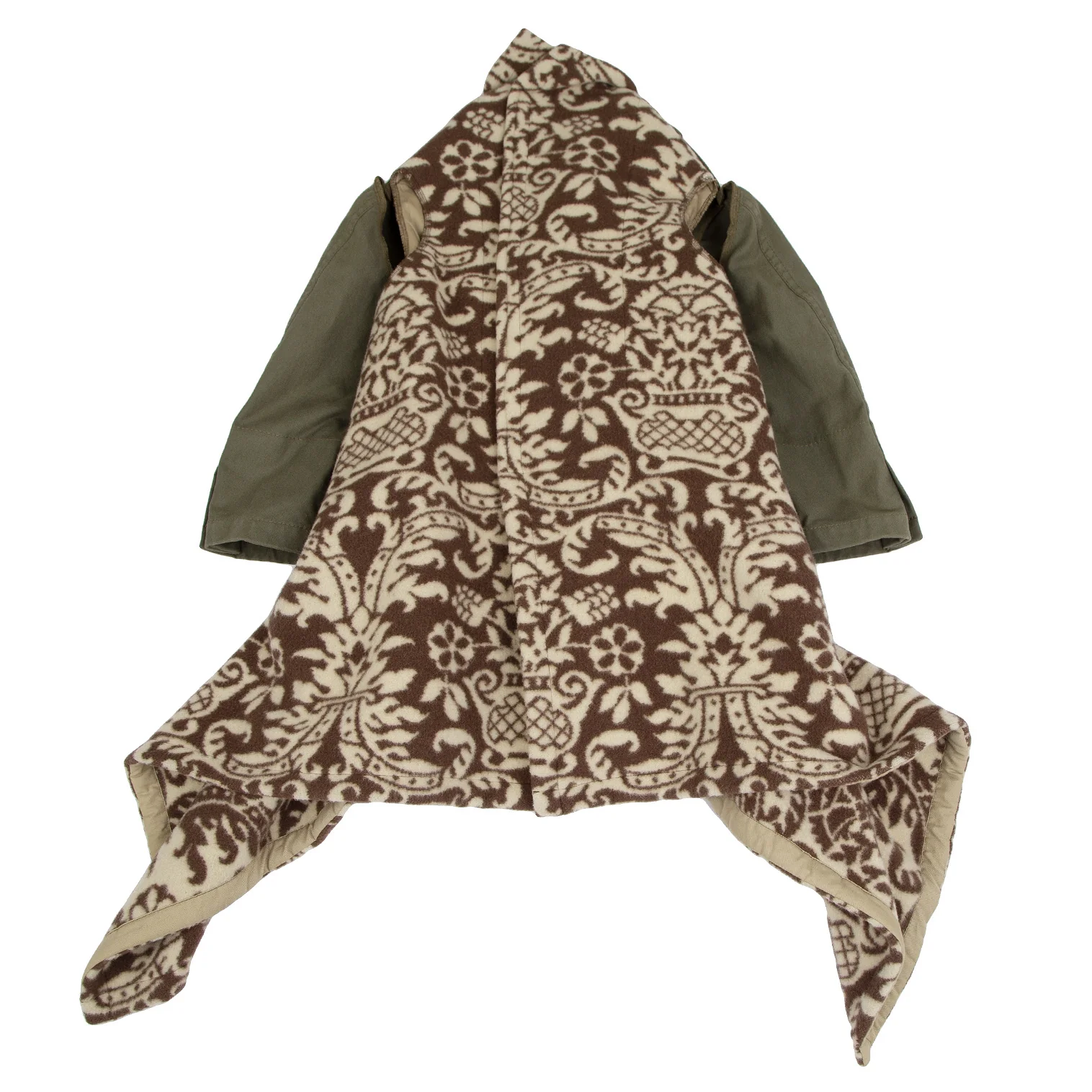 コムデギャルソンCOMME des GARCONS ダマスク柄フリースニット切替ショートジャケットドッキングコート カーキ茶S