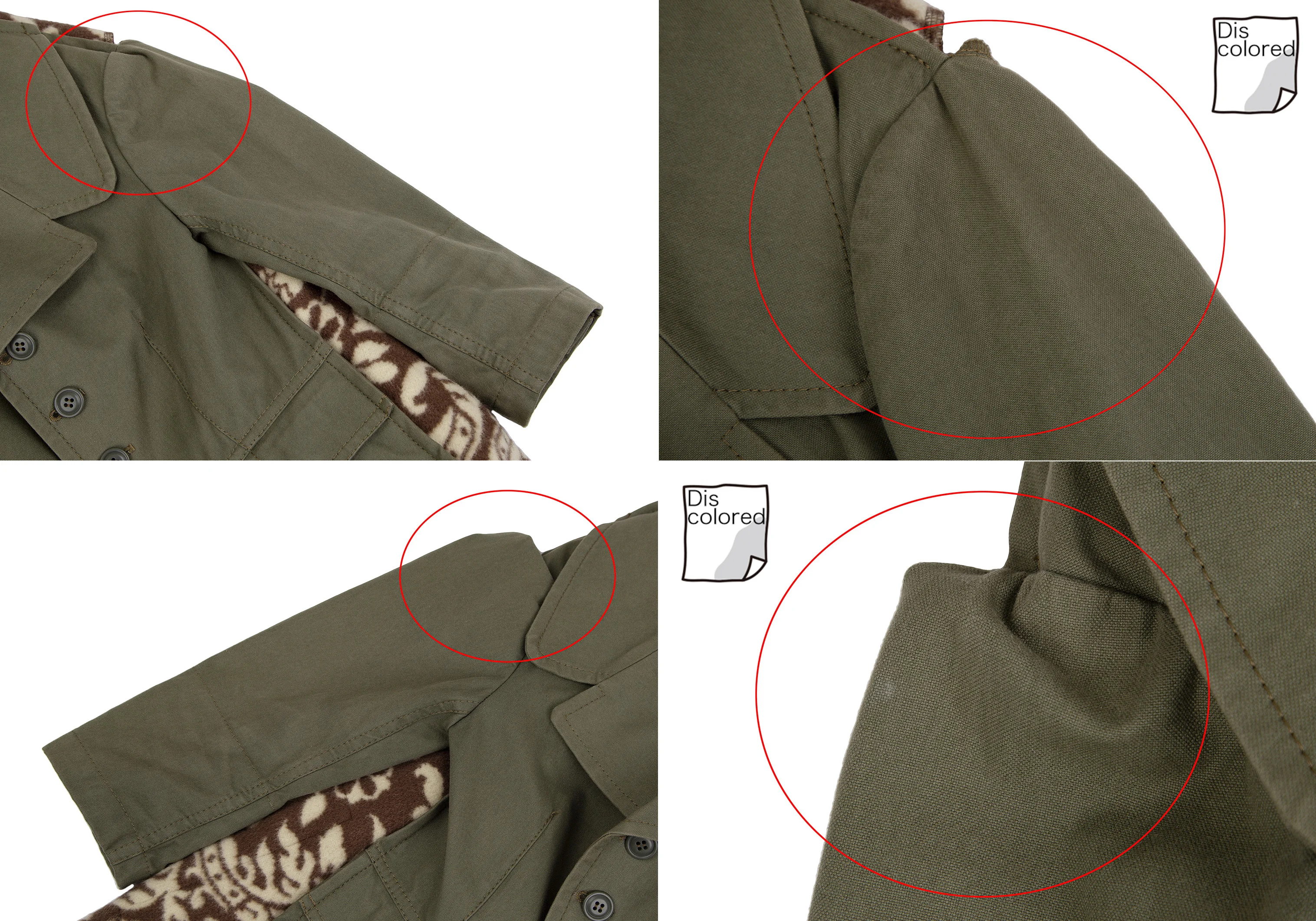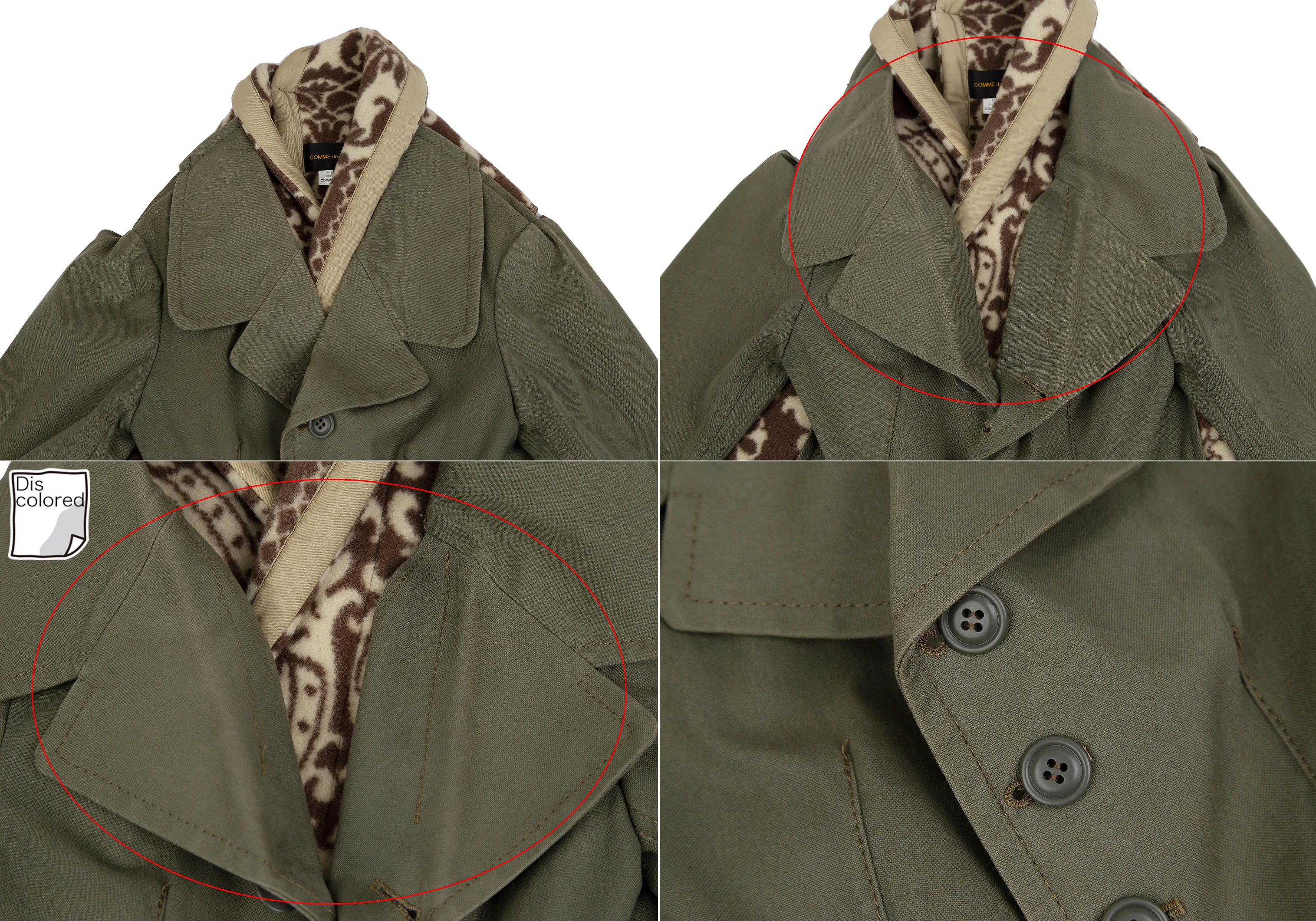 2009A/W コレクション着用アイテムです。襟・肩・袖口に色褪せ、前に薄シミがあります(画像参照)。その他目立ったシミ、汚れ、ほつれ等ない状態です。クリーニング済み