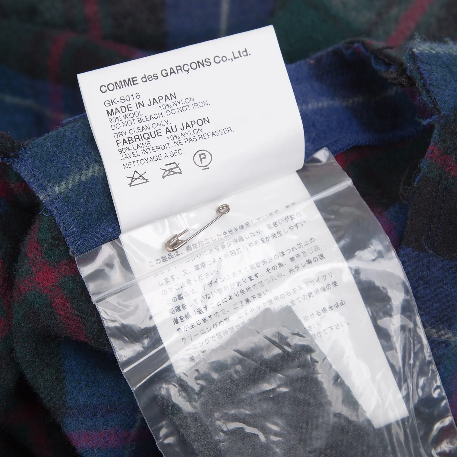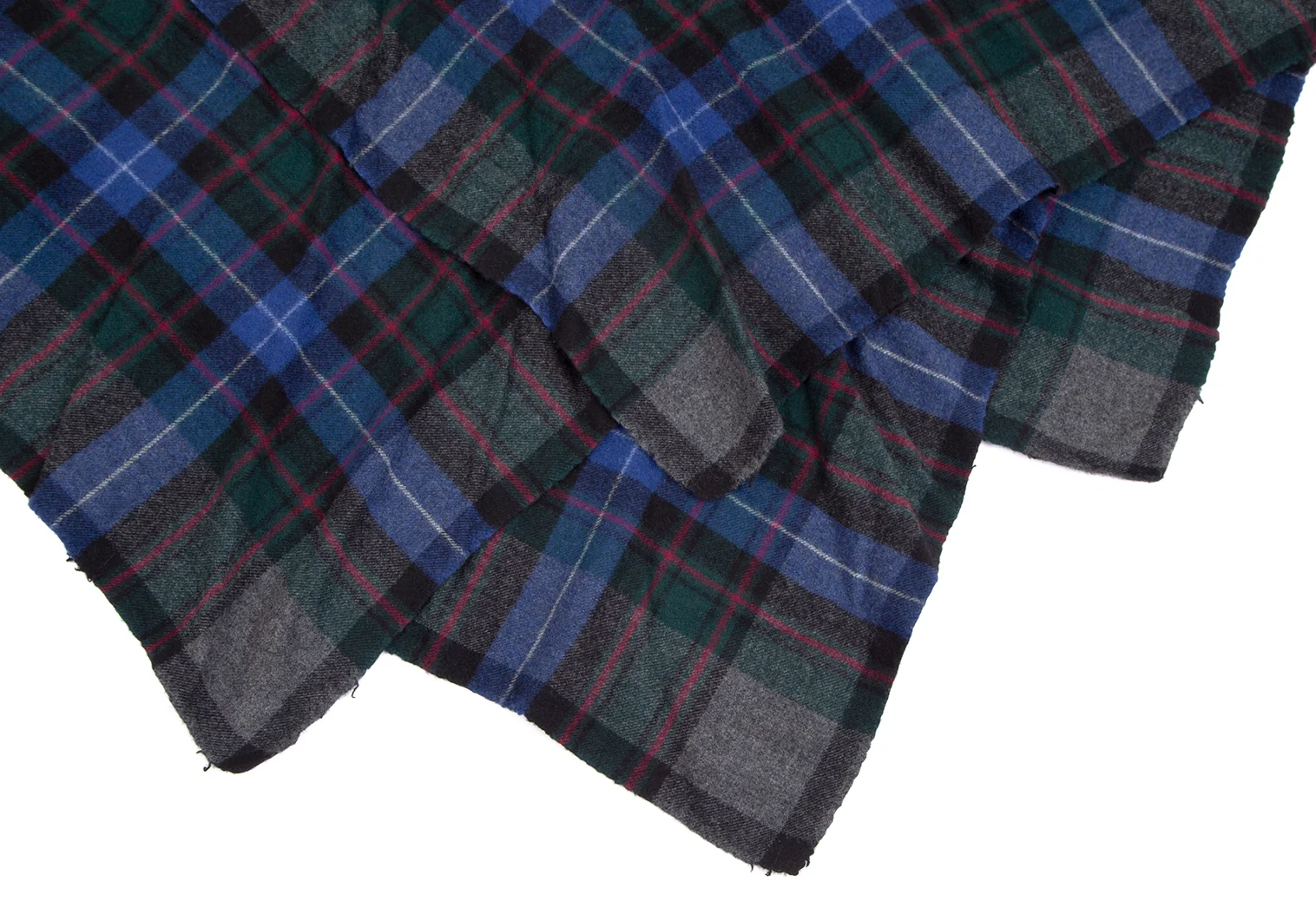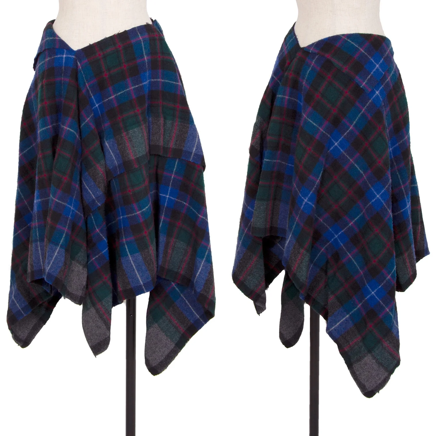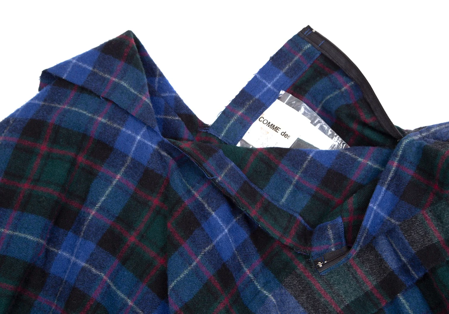 コムデギャルソンCOMME des GARCONS ウール縮絨チェックスクエアシルエットスカート 青他M位
