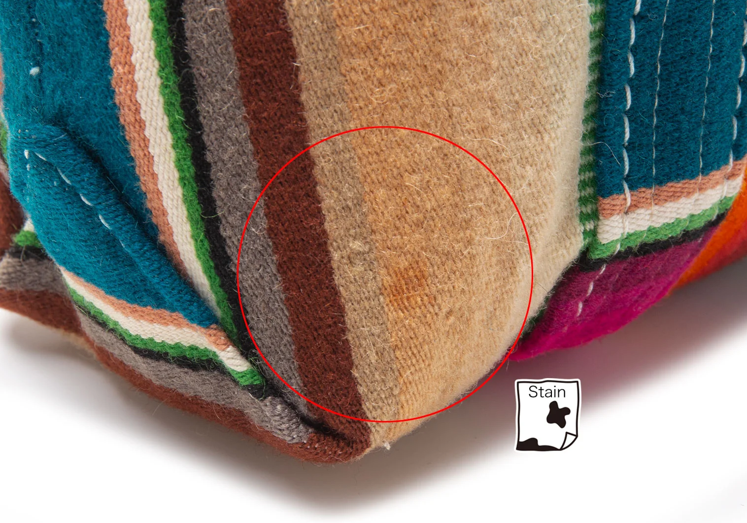 サイドにシミ、開き口にダメージがあります(写真参照)。その他目立った傷や汚れなどはありません。