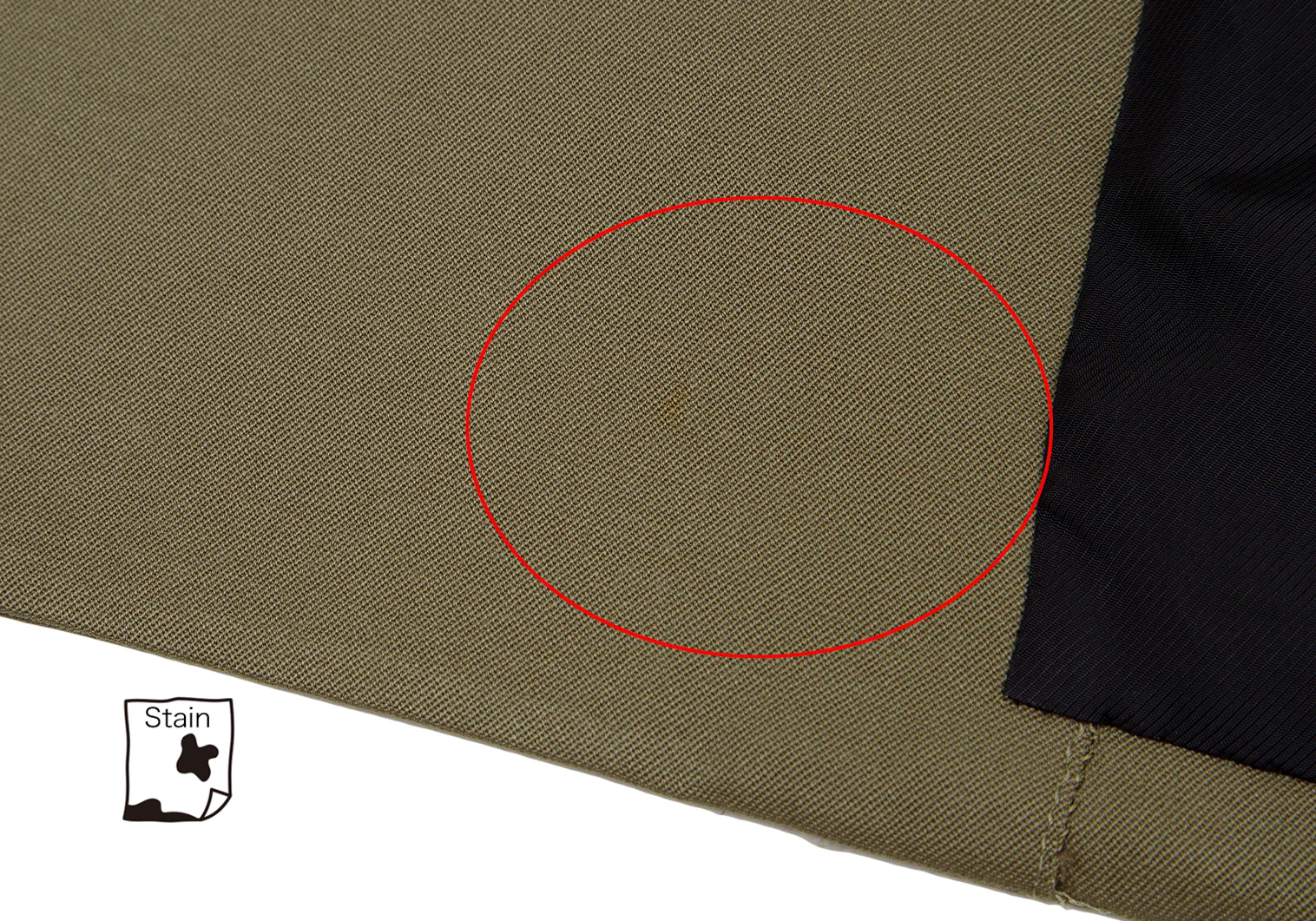 前裾裏側に薄汚れがあります。(写真参照)その他目立ったシミ、汚れ、ほつれ等なくいい状態です。クリーニング済み