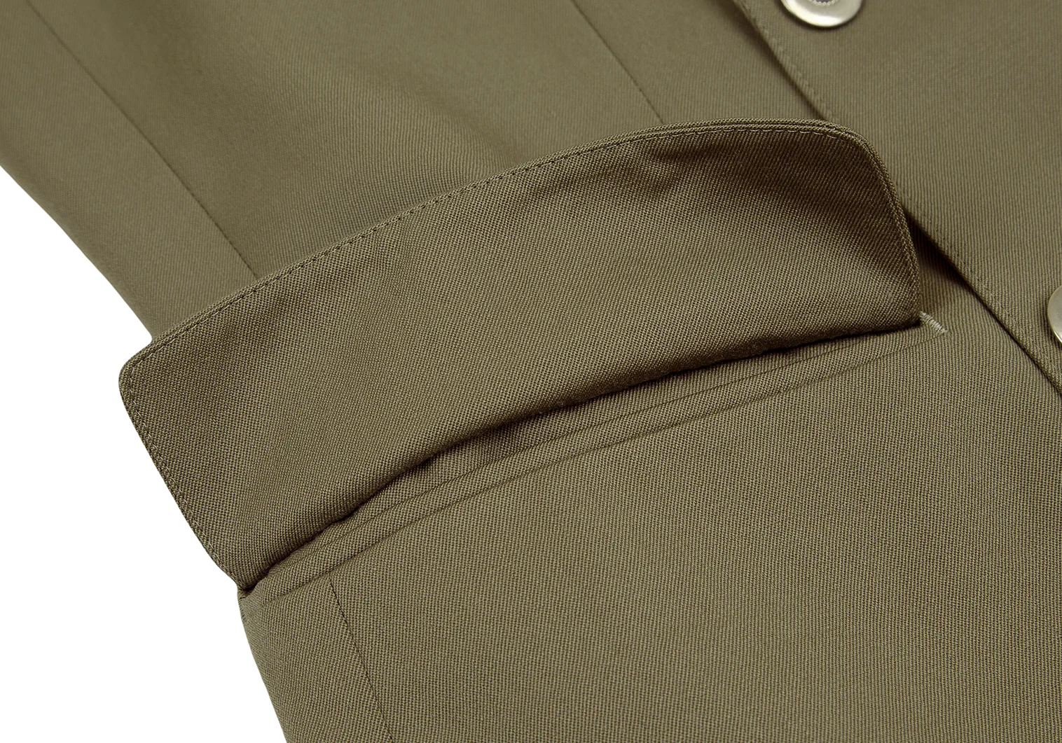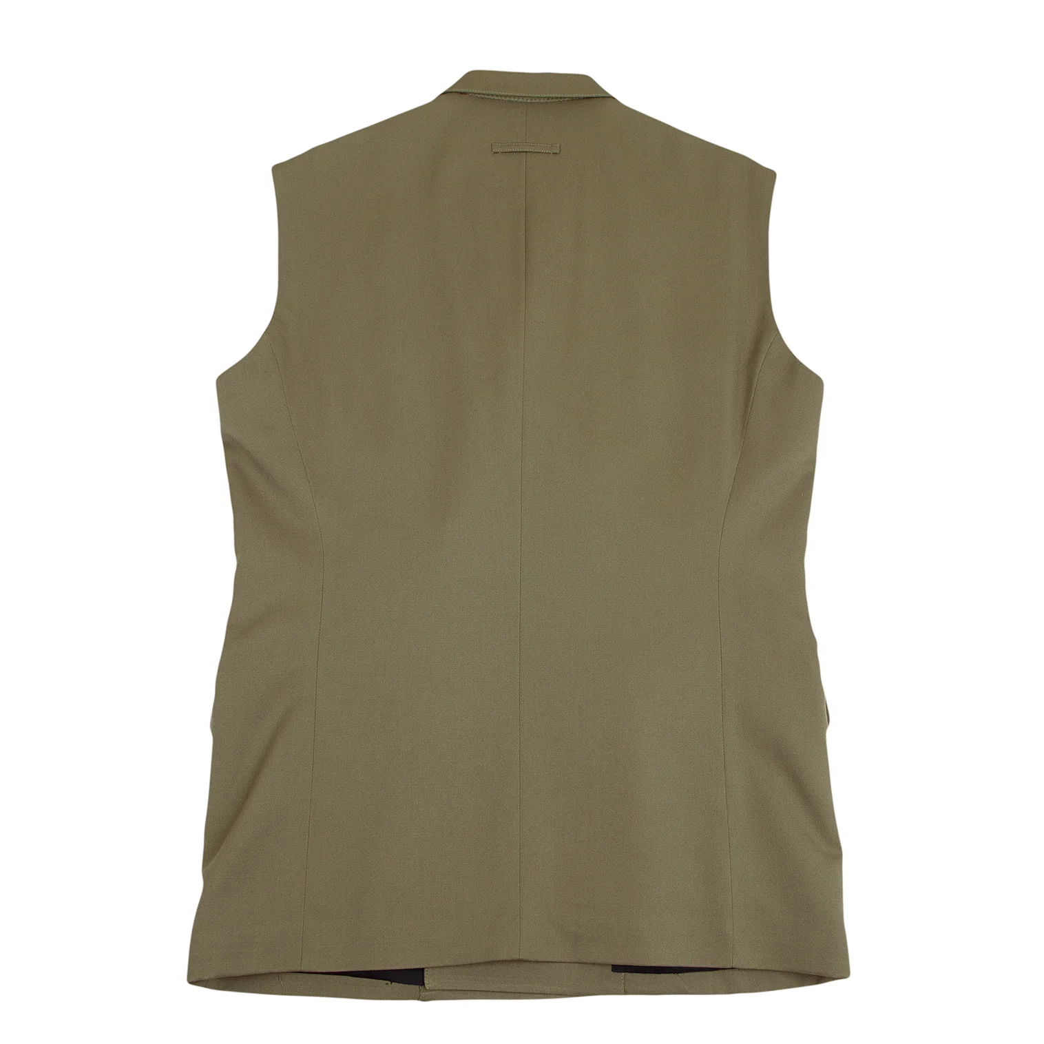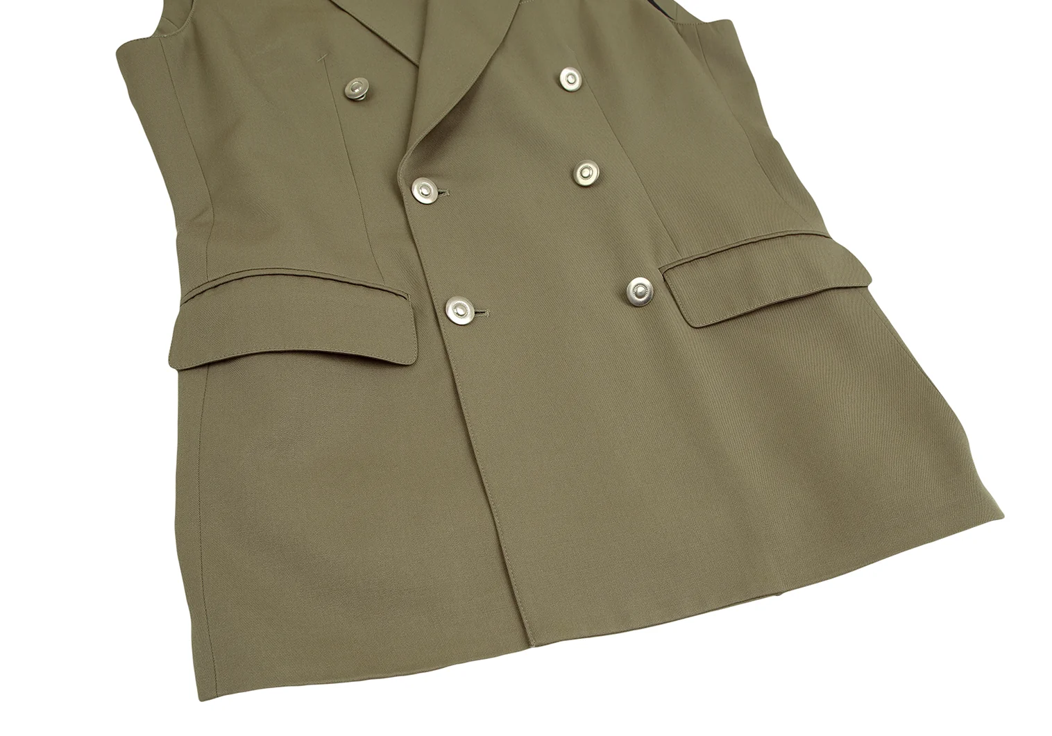 ジャンポールゴルチエ オムJean Paul GAULTIER HOMMEウールギャバメタルボタンダブルブレストノースリーブジャケット カーキ48