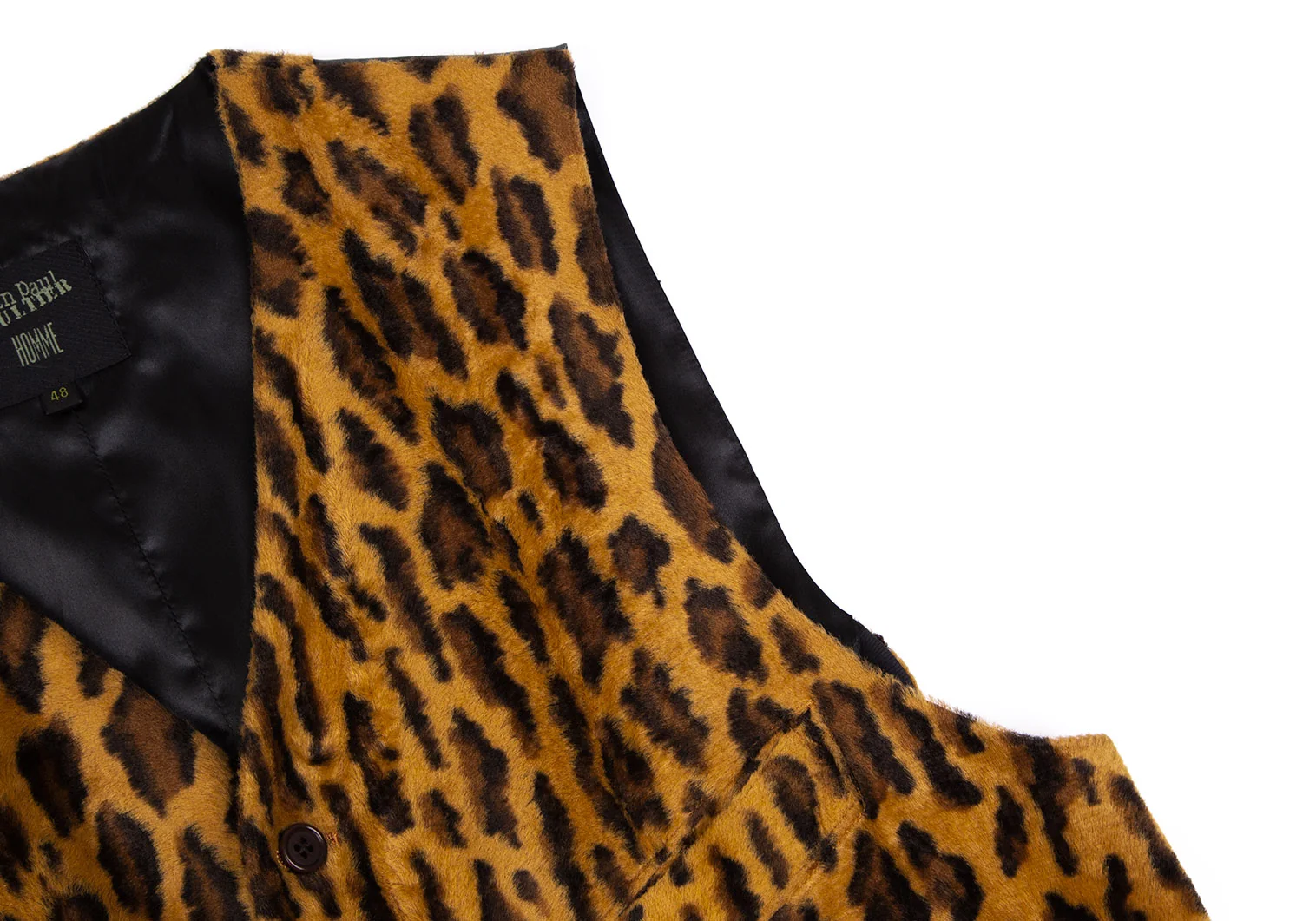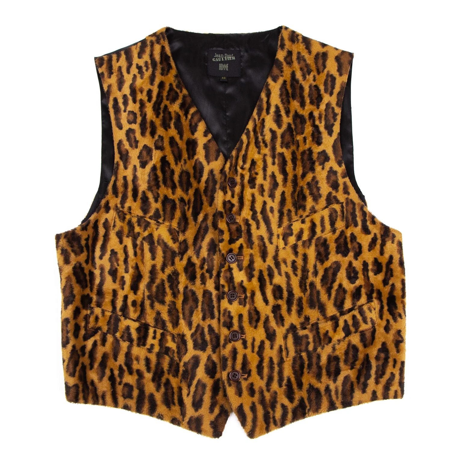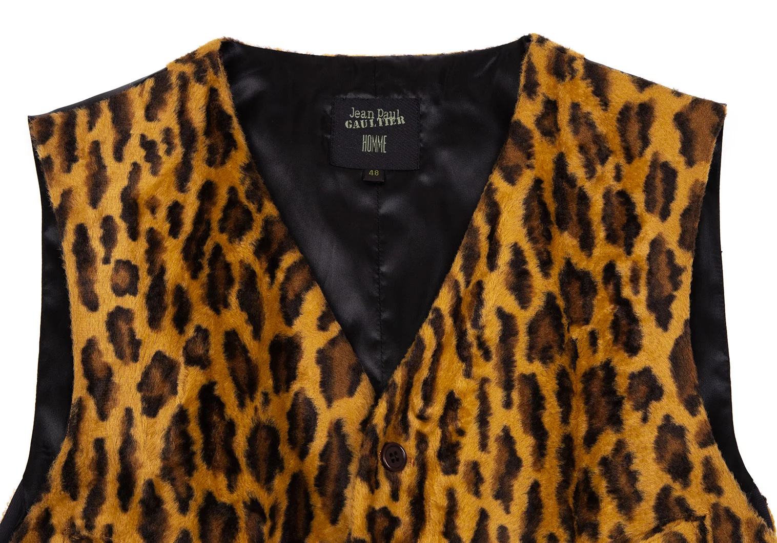 ジャンポールゴルチエ オムJean Paul GAULTIER HOMME レオパードフェイクファー切替ジレベスト 茶黒48