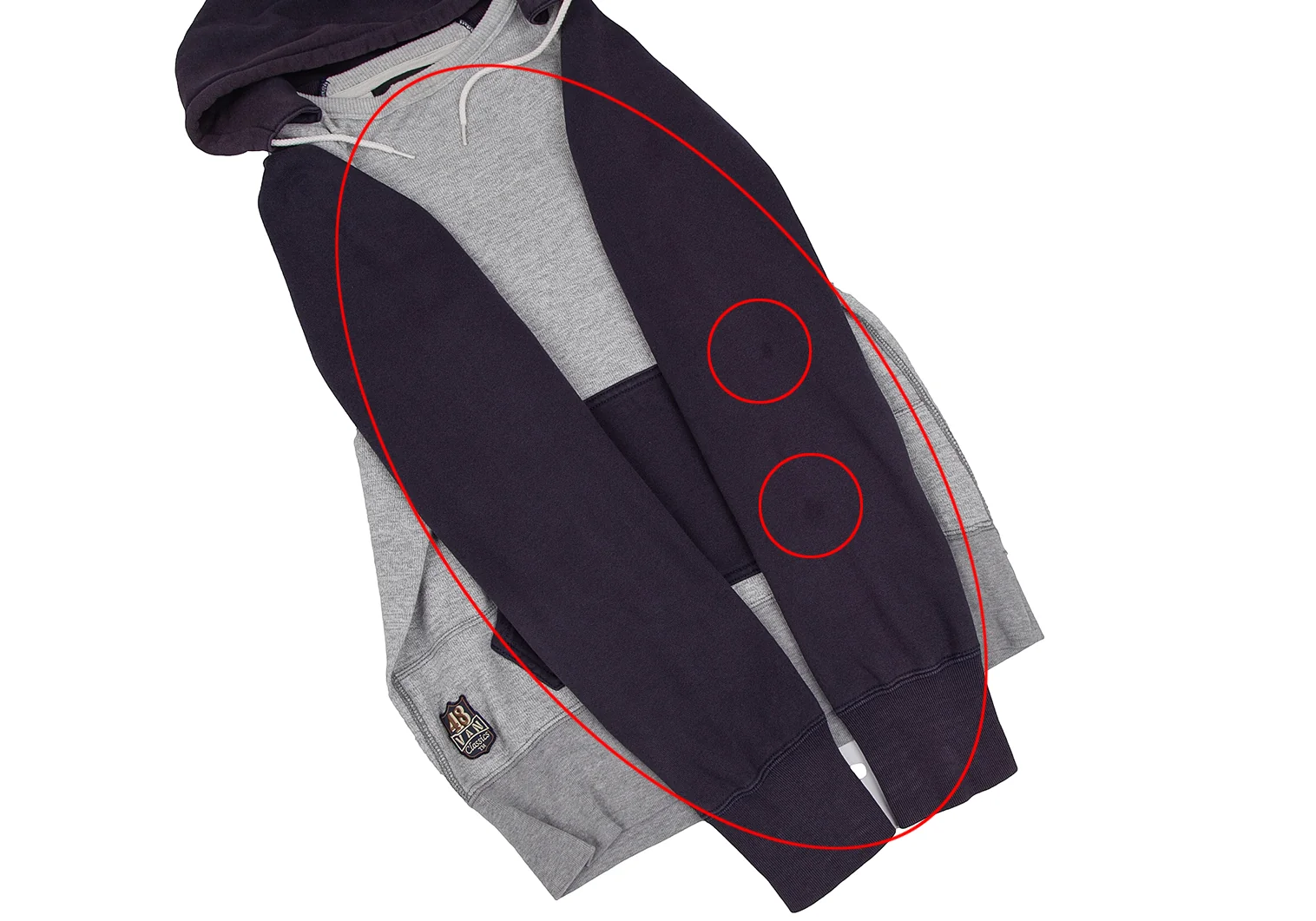 フード・首元・袖・袖口・ポケットに色あせ、袖・ポケットにシミがあります(写真参照)クリーニング済み