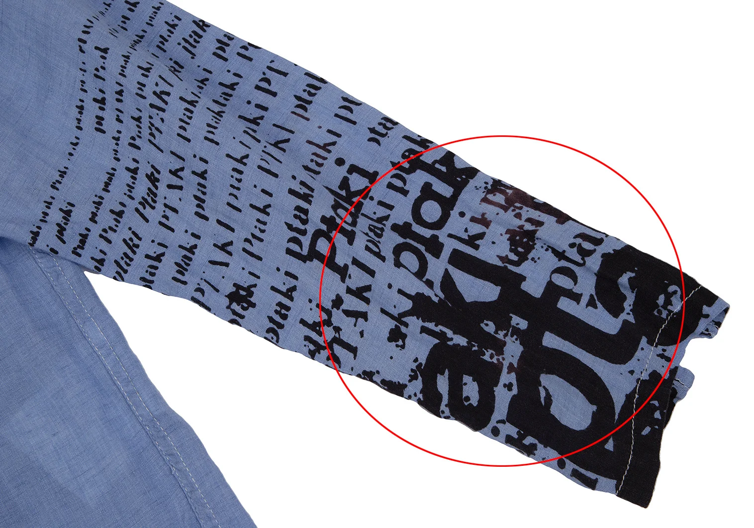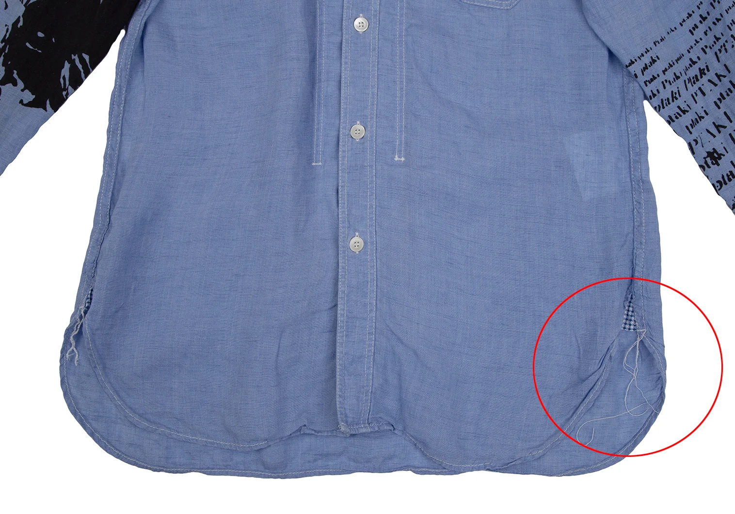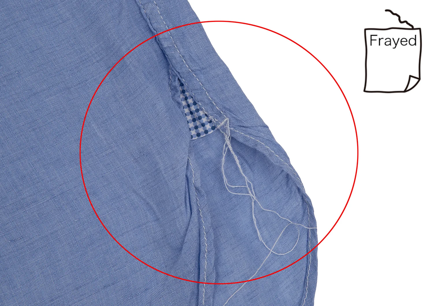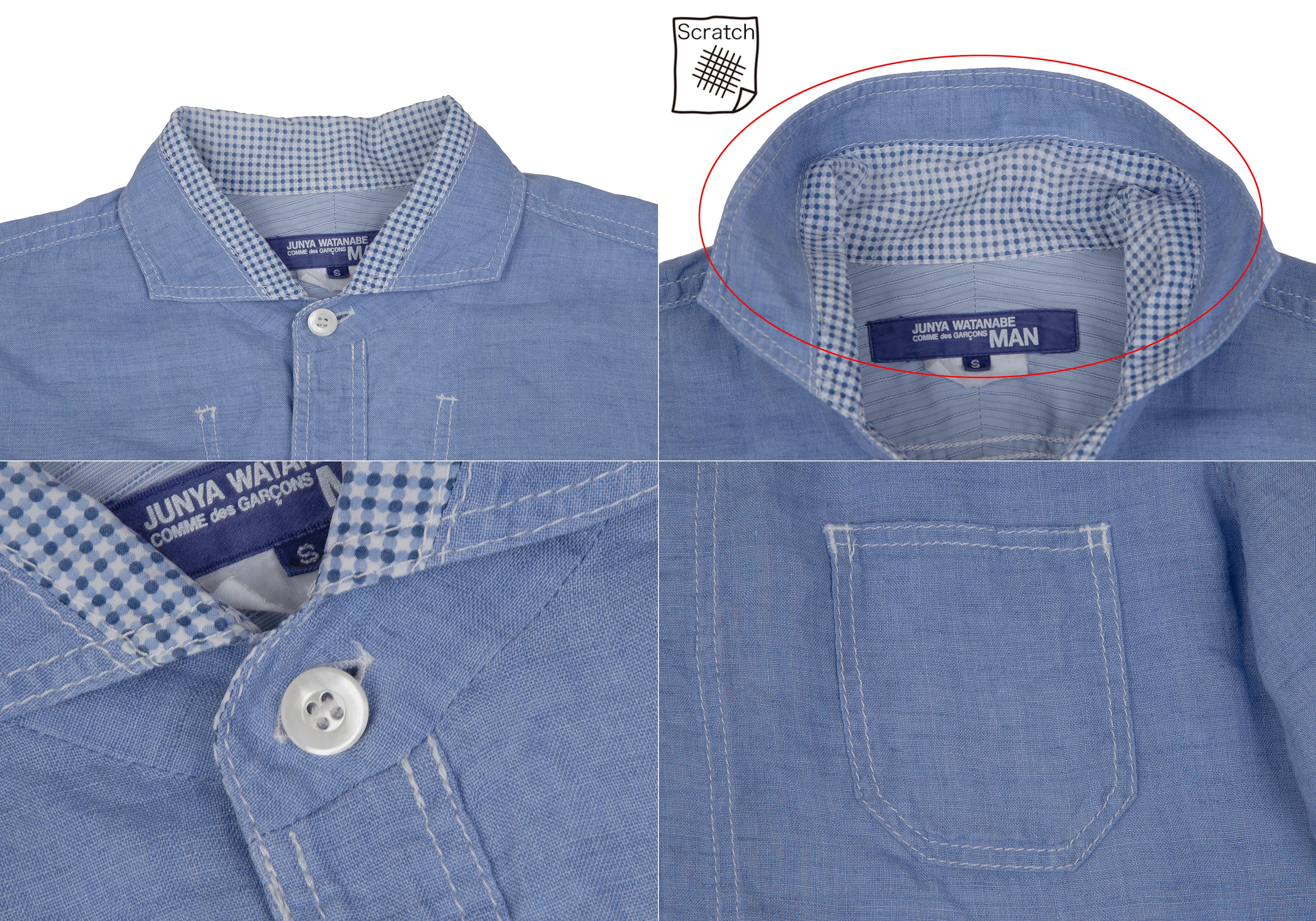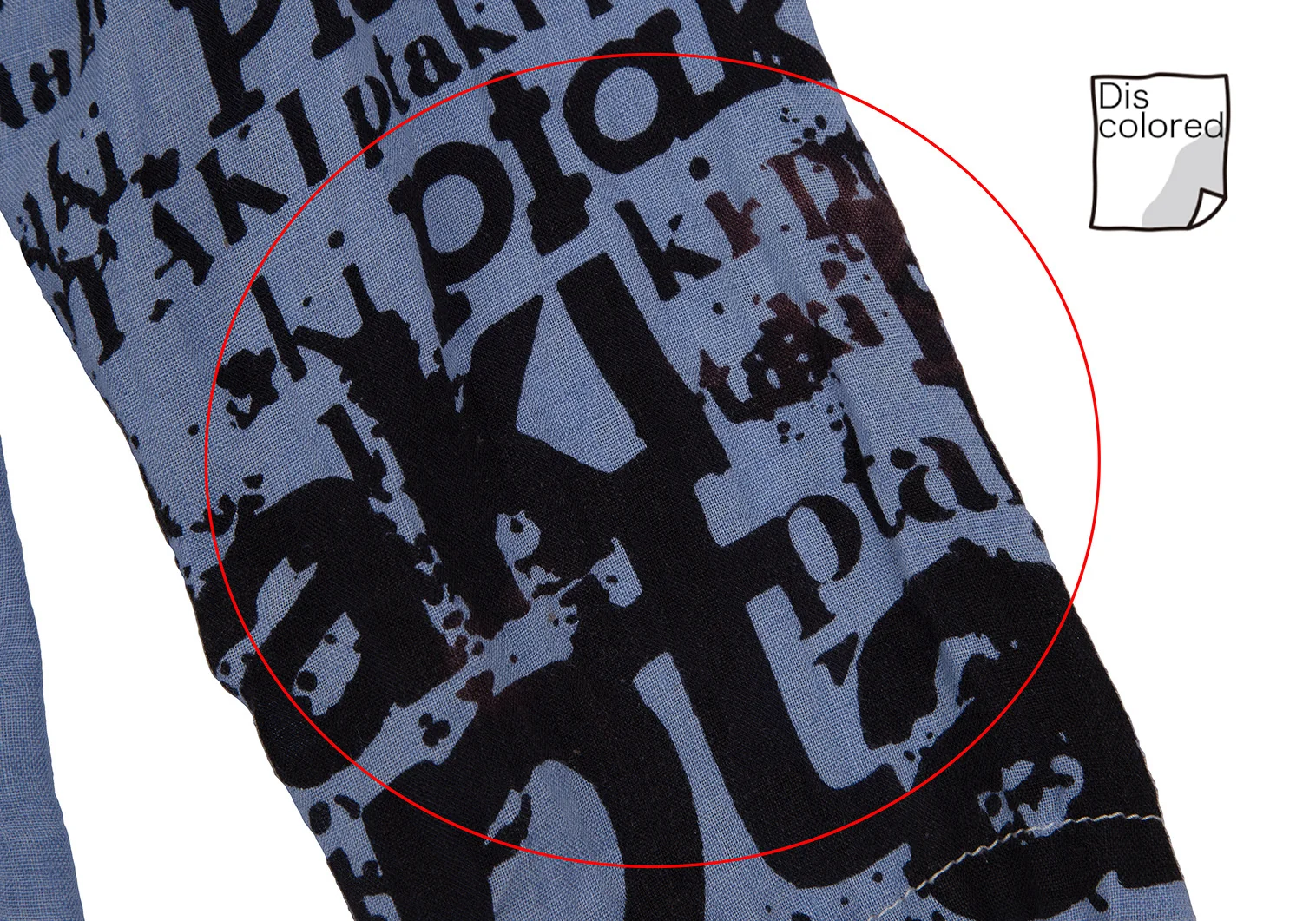 透け感があります。タグの印字が消えています。襟裏にスレ、袖裏に色褪せ、裾にほつれ、袖にヤケ・色褪せがあります(画像参照)。その他目立ったシミ、汚れ、ほつれ等なくいい状態です。クリーニング済み
