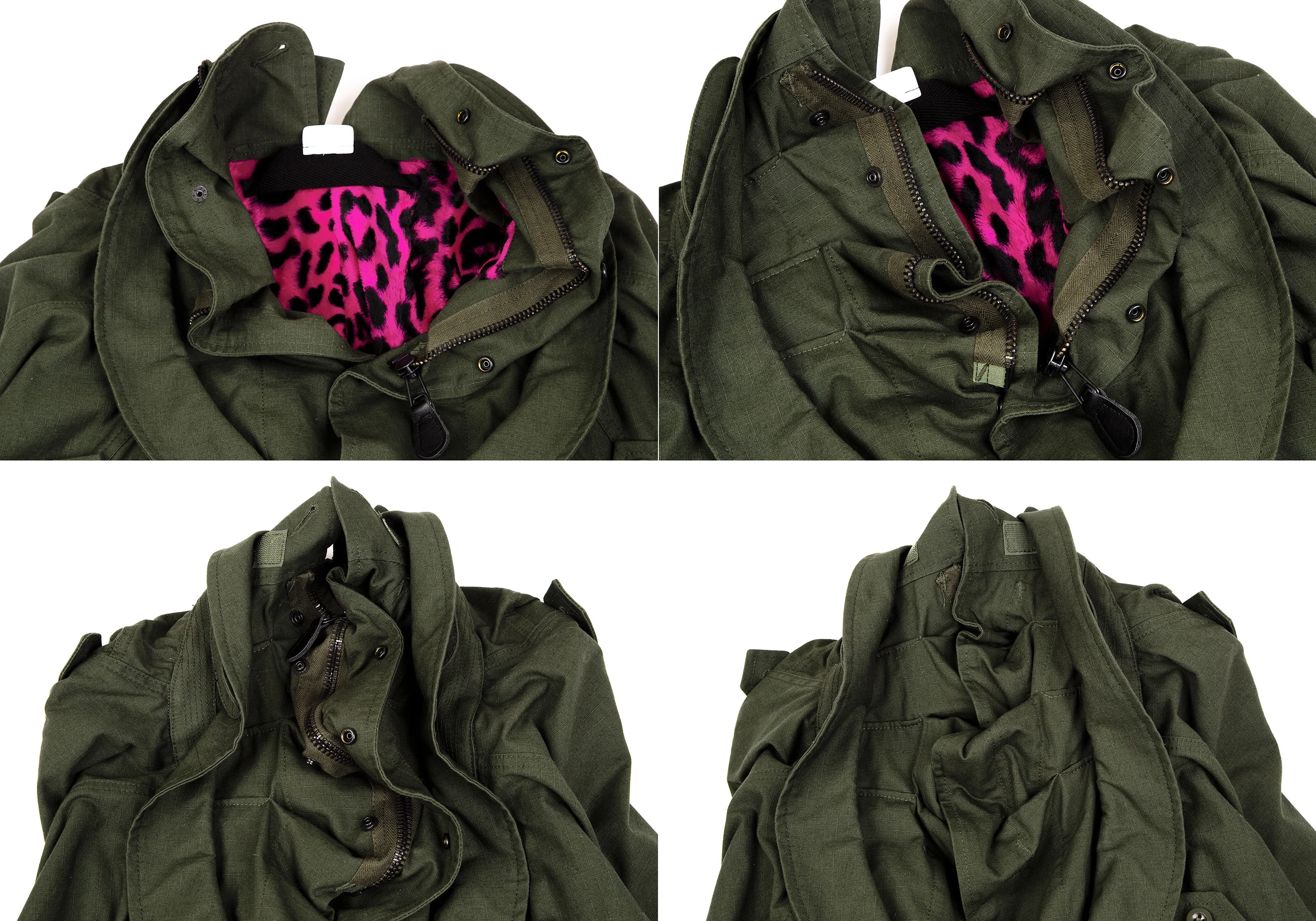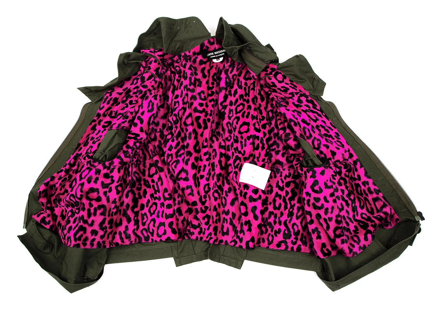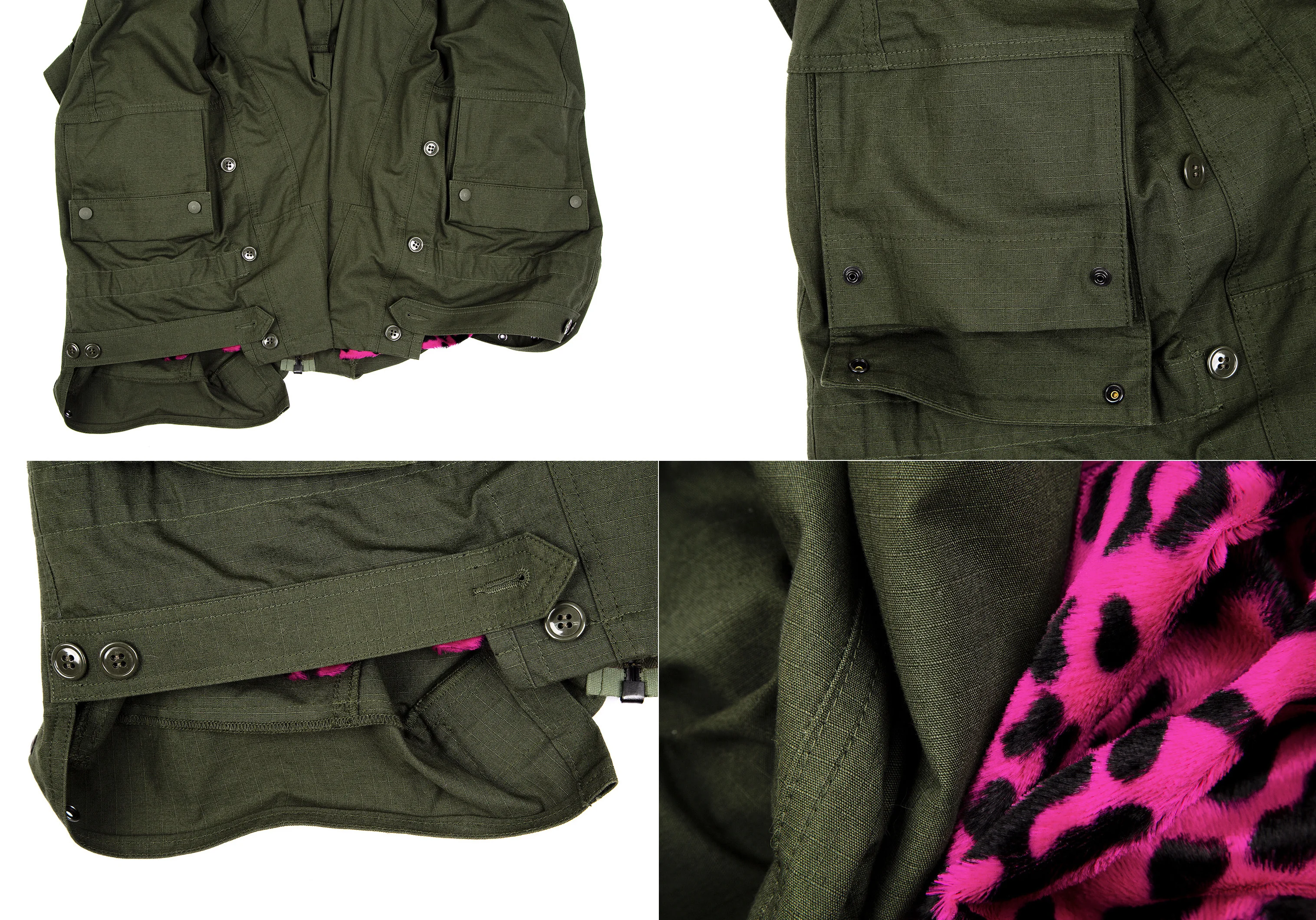 ジュンヤワタナベ コムデギャルソンJUNYA WATANABE COMME des GARCONS レオパードファーライニング解体再構築ミリタリーコート オリーブXS