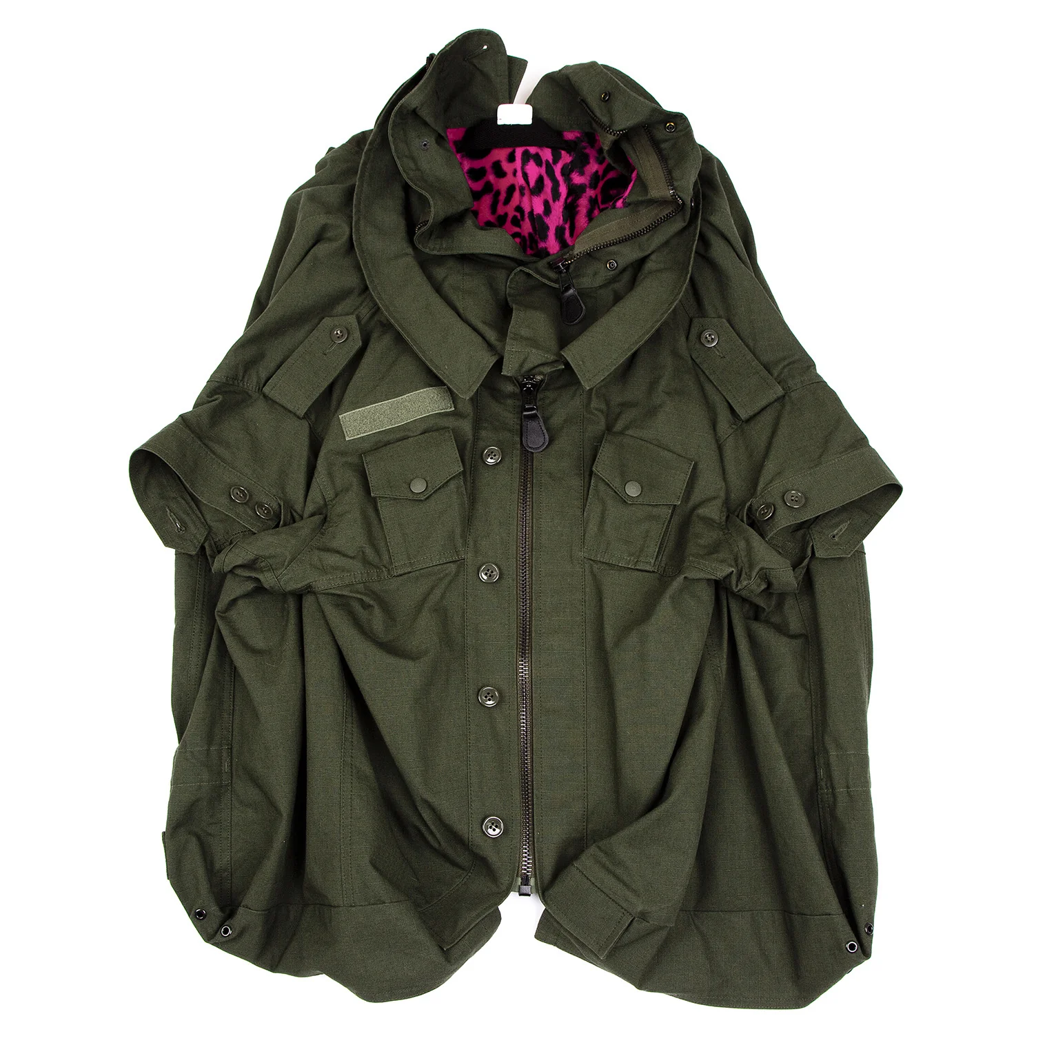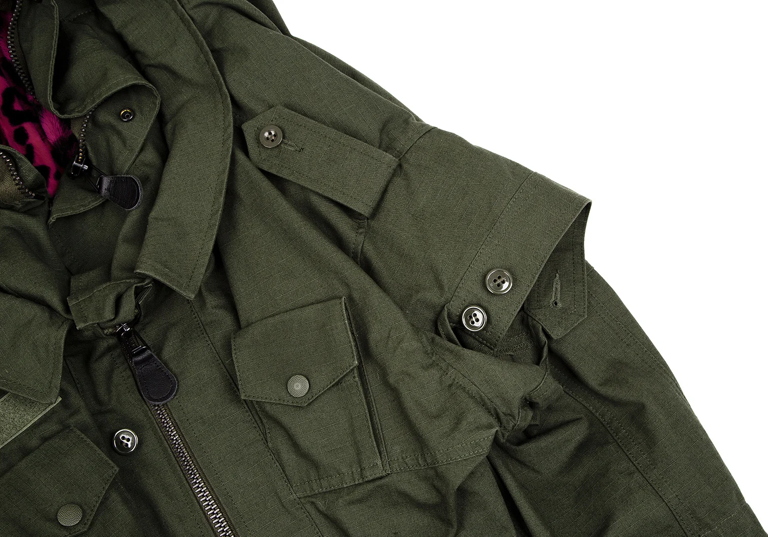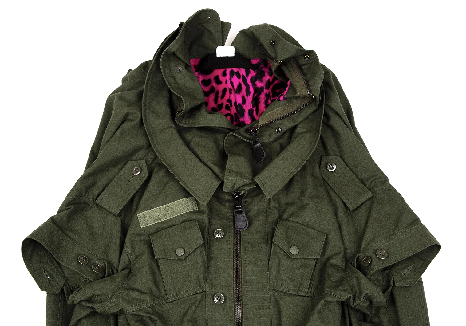 ジュンヤワタナベ コムデギャルソンJUNYA WATANABE COMME des GARCONS レオパードファーライニング解体再構築ミリタリーコート オリーブXS