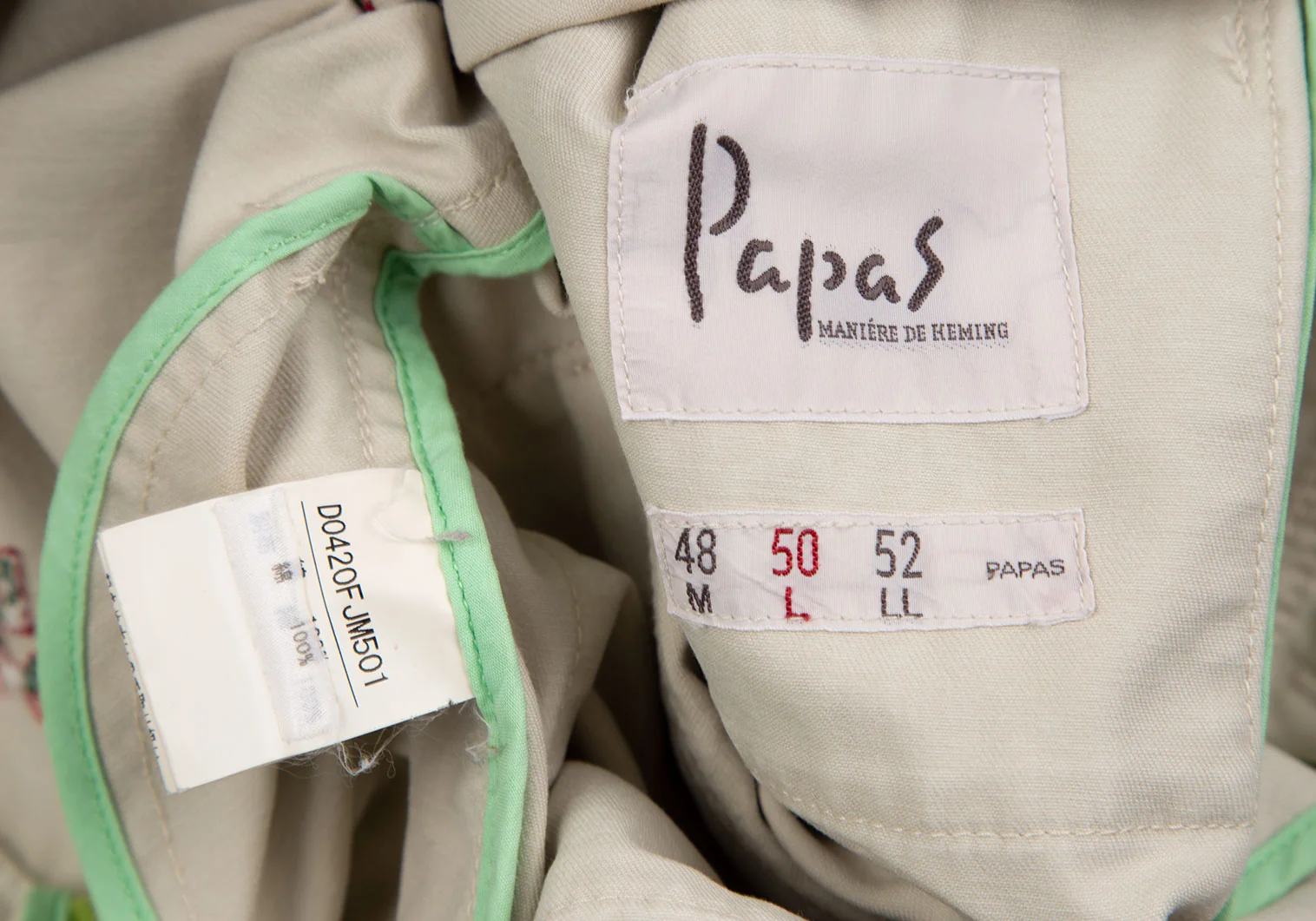 パパスPapas 刺繍コットンジップブルゾン アイボリー50L