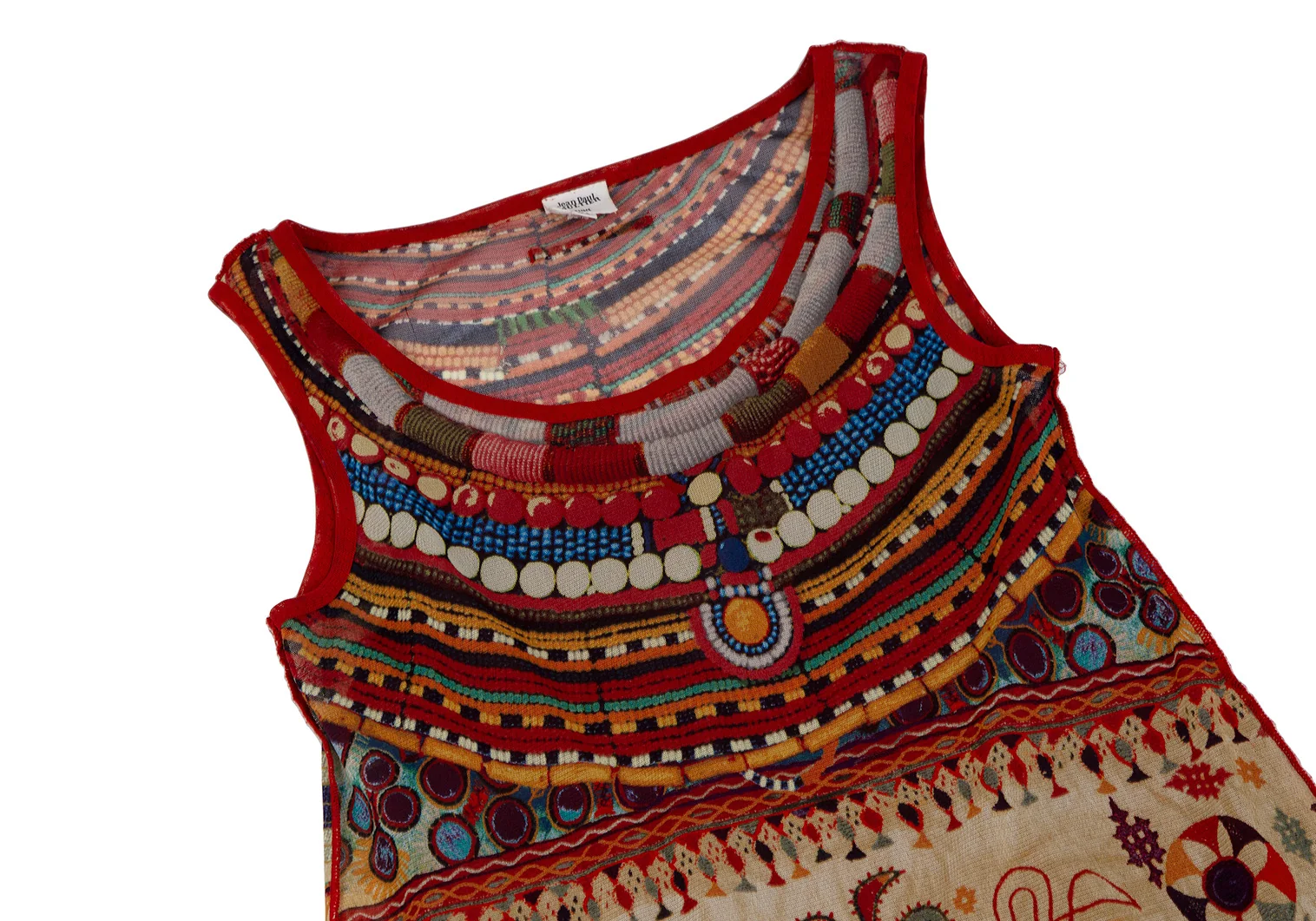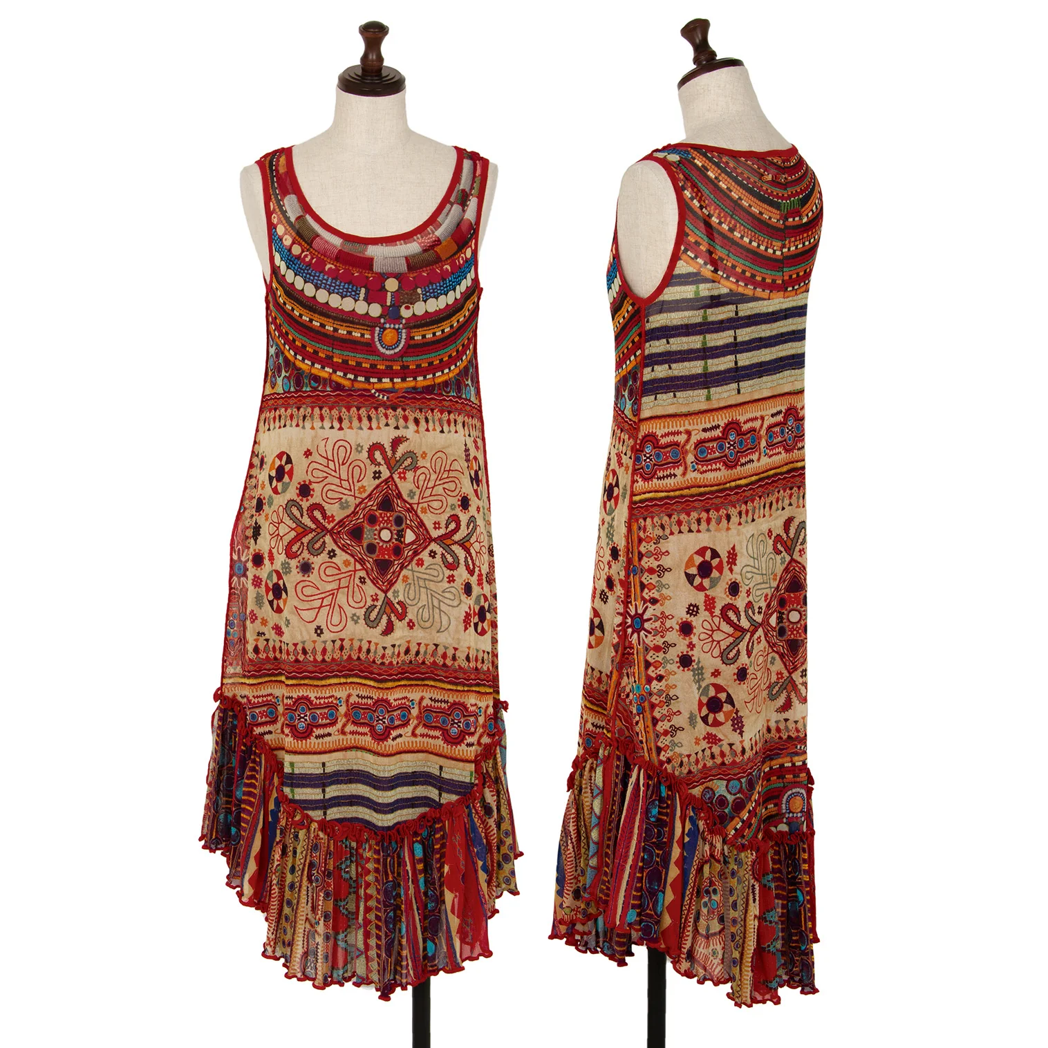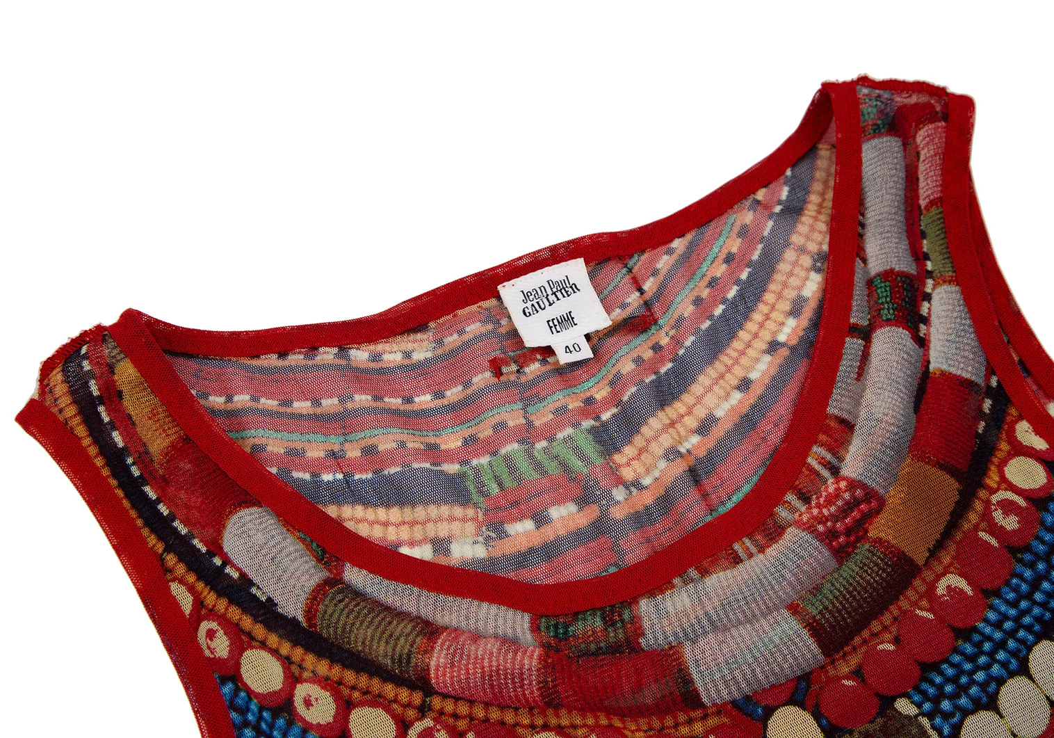 ジャンポールゴルチエ ファムJean Paul GAULTIER FEMME ビーズグラフィックプリントパワーネットノースリーブワンピース マルチ40