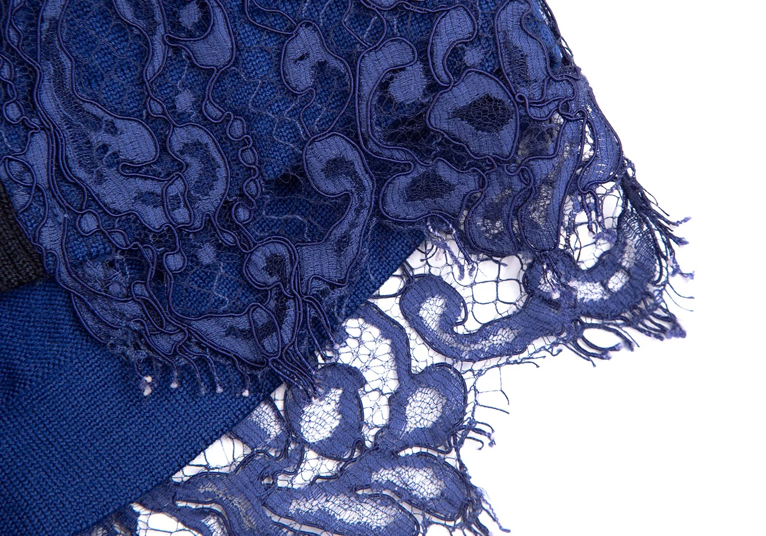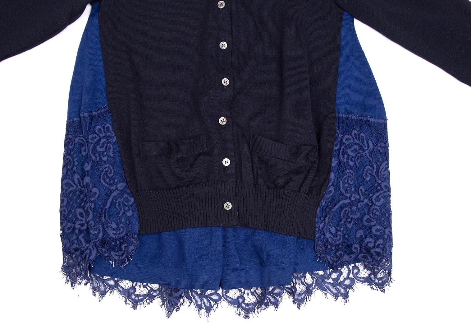 サカイsacai レースレイヤード切替ニットカーディガン 紺青1