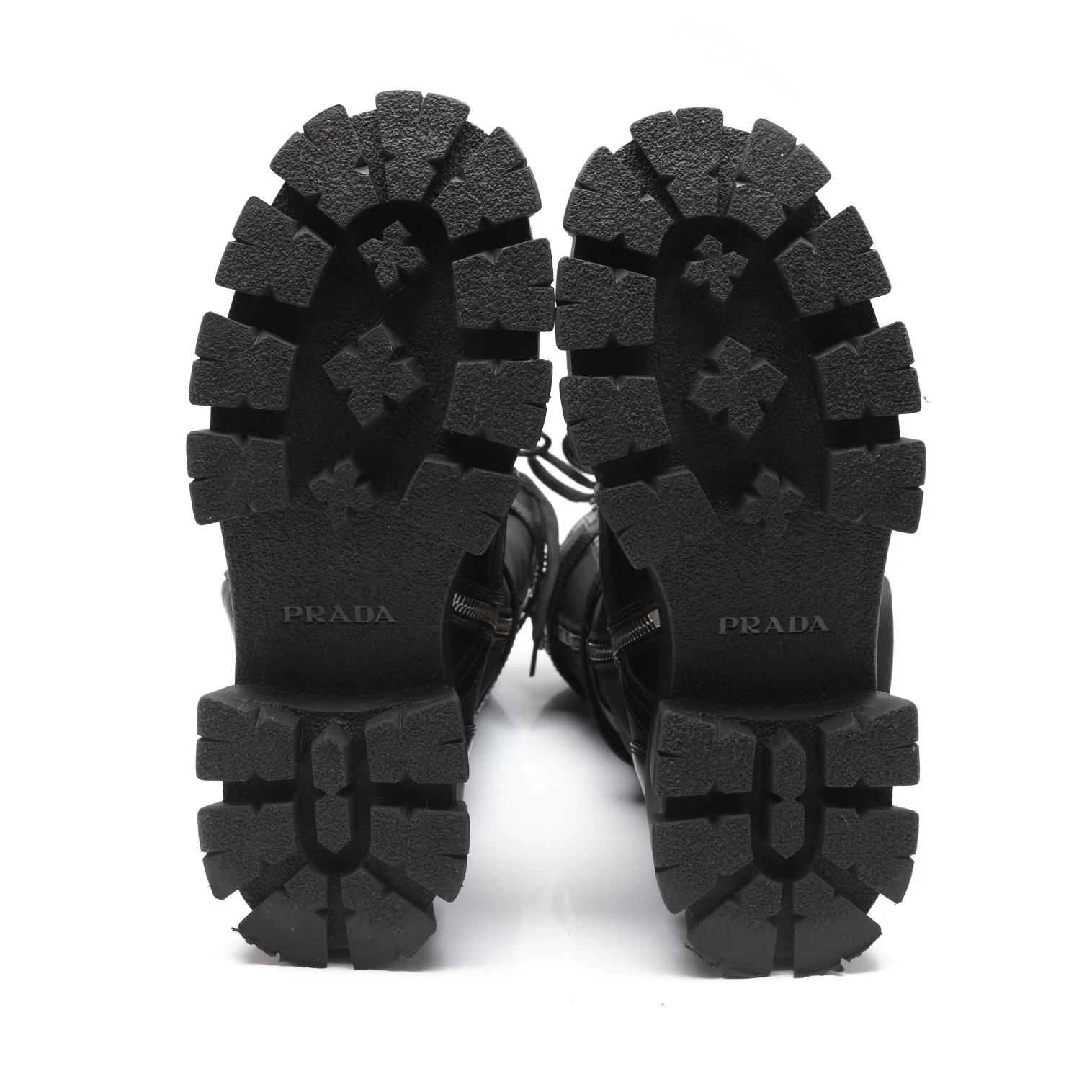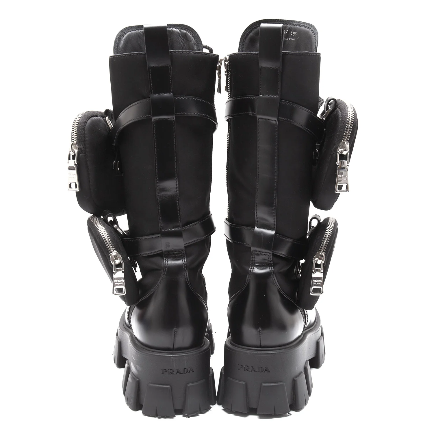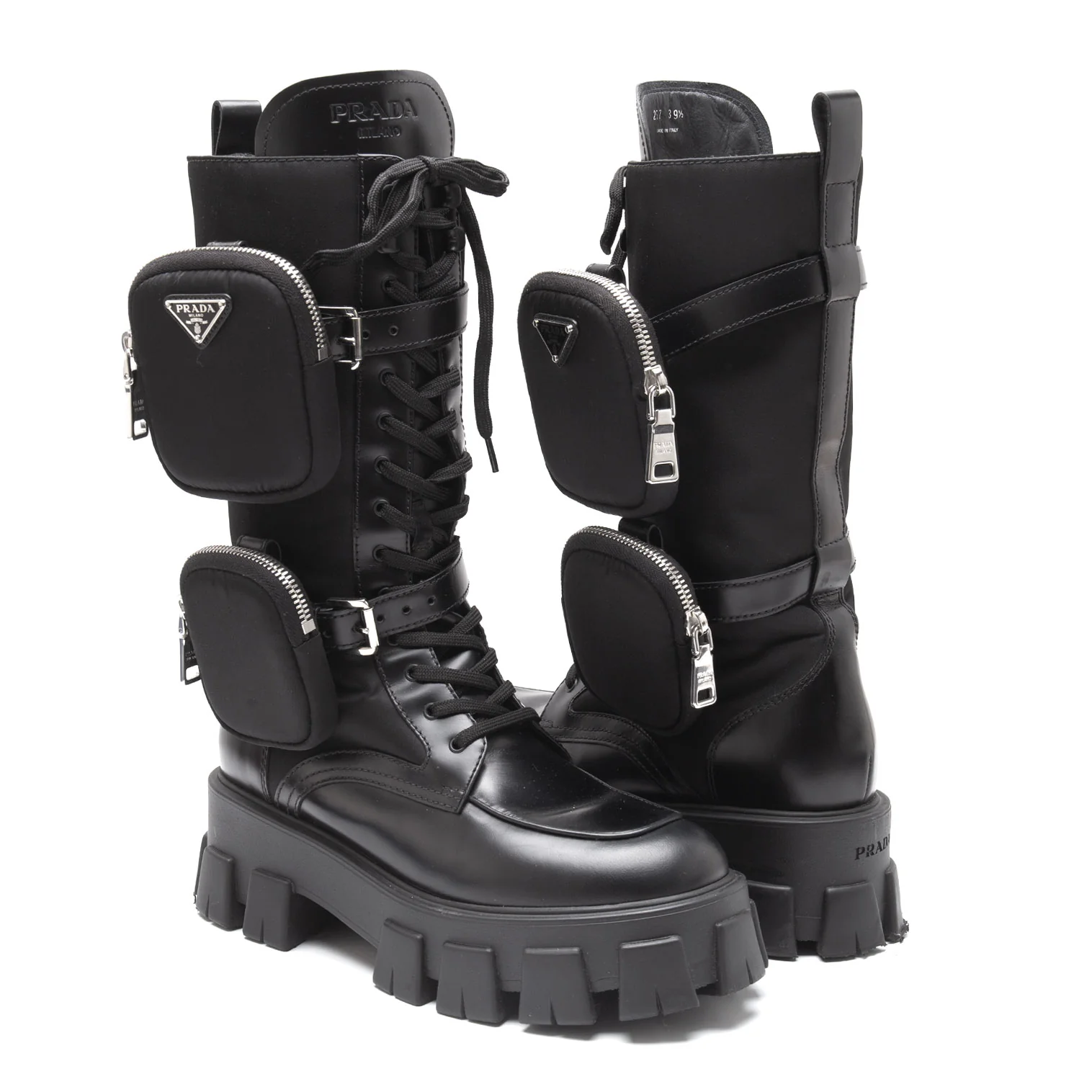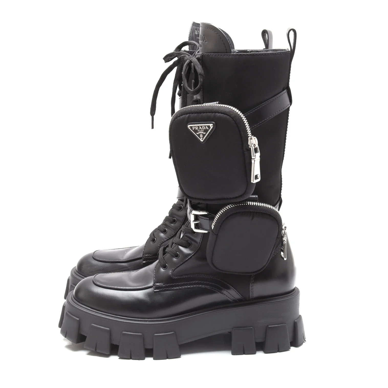 プラダPRADA ブラッシュドレザーナイロン モノリスブーツ 黒39 1/2(25.5位)