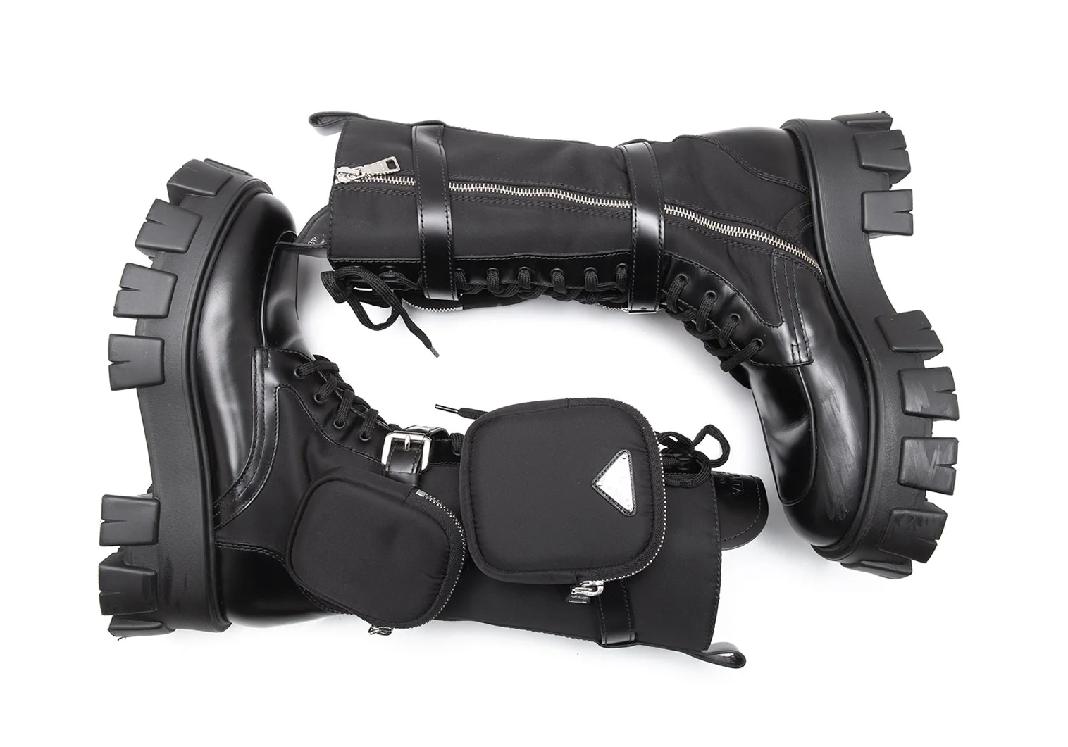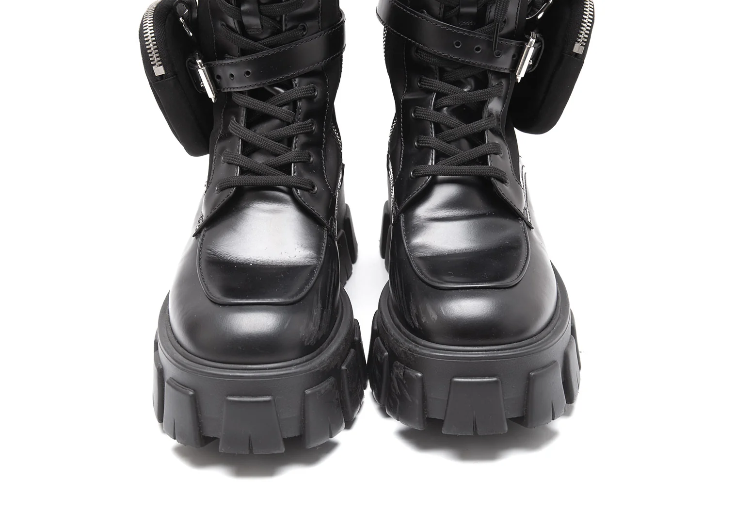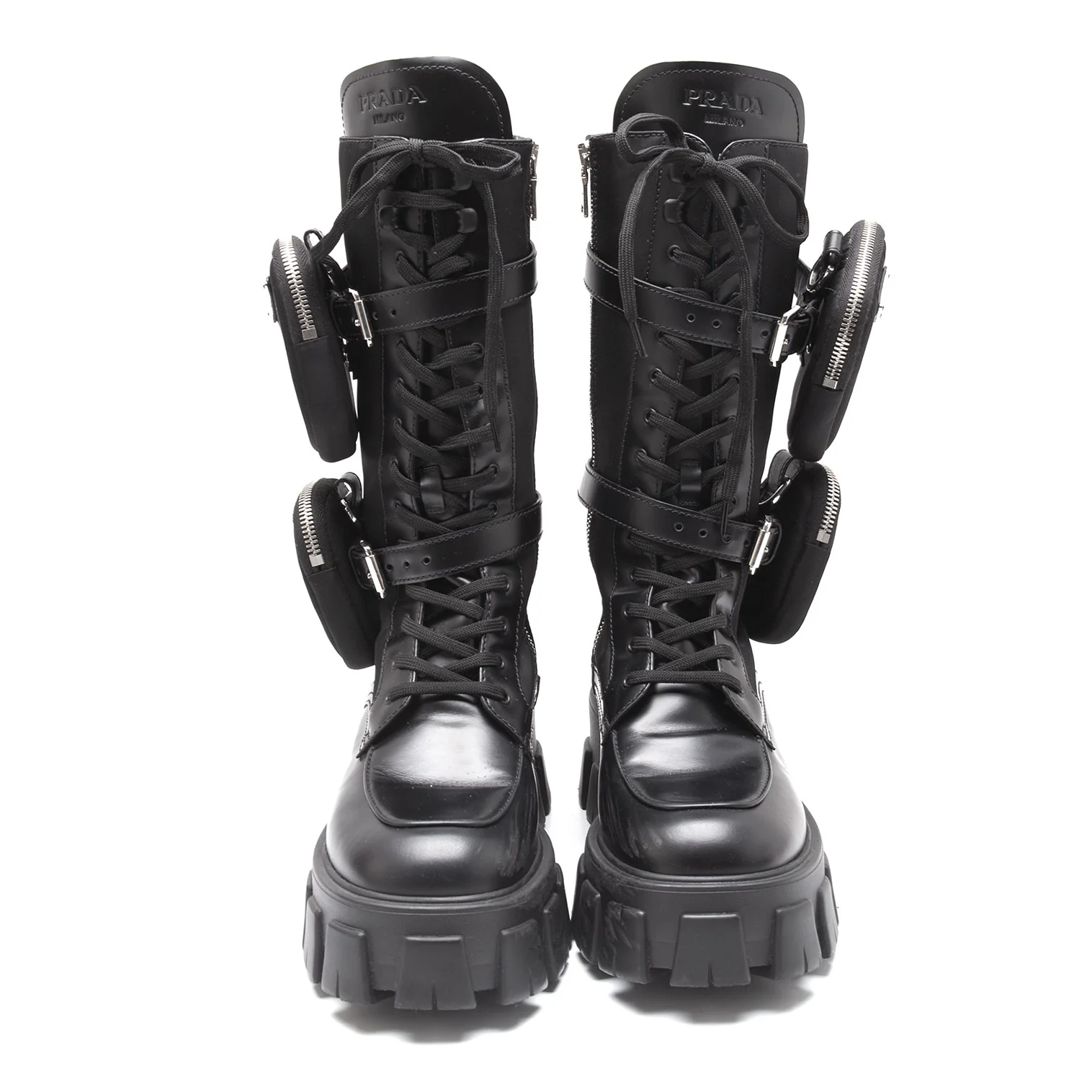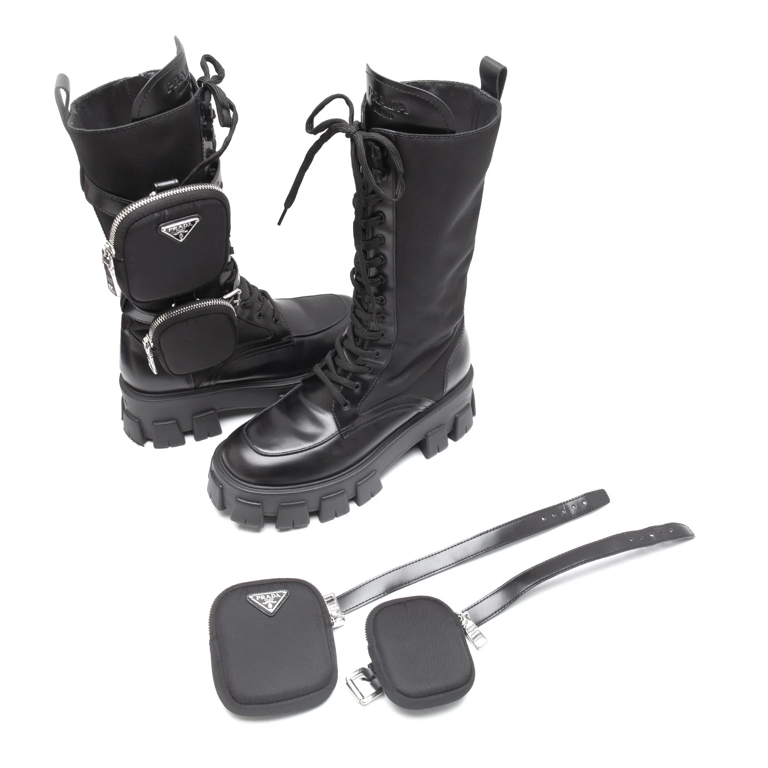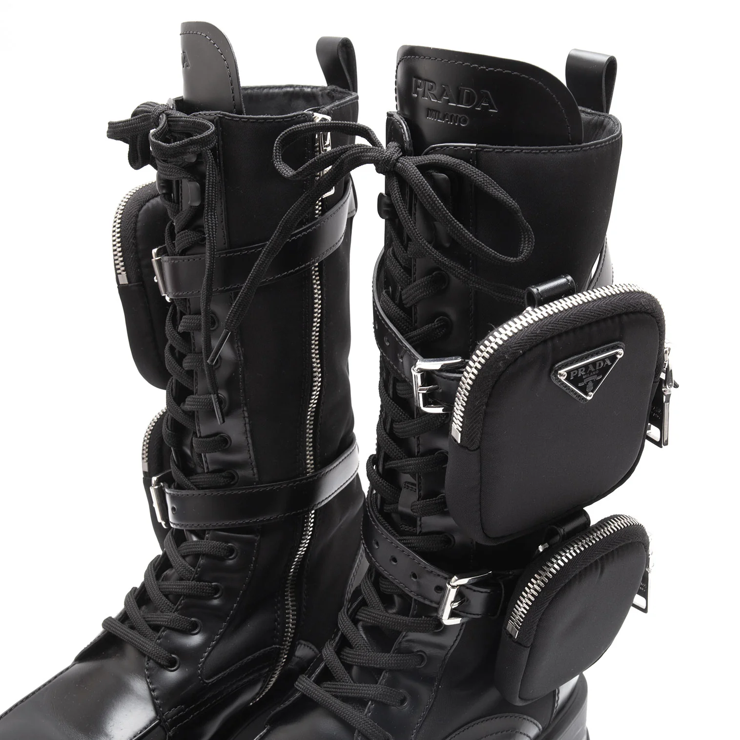 プラダPRADA ブラッシュドレザーナイロン モノリスブーツ 黒39 1/2(25.5位)
