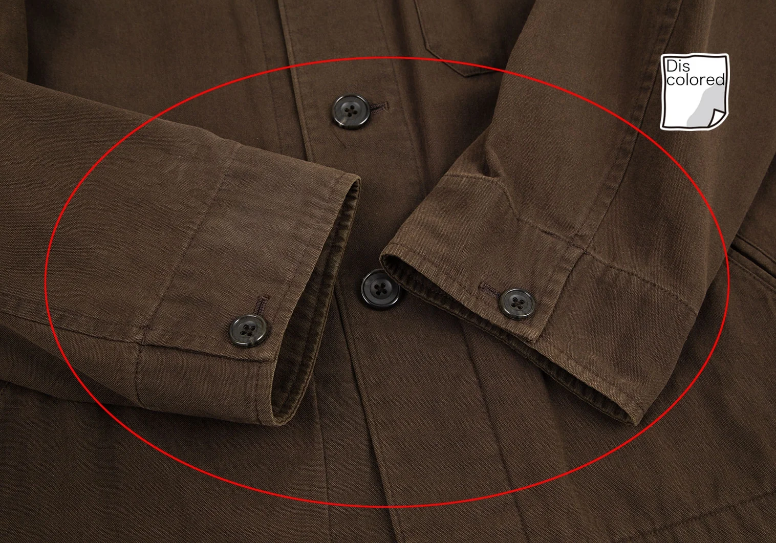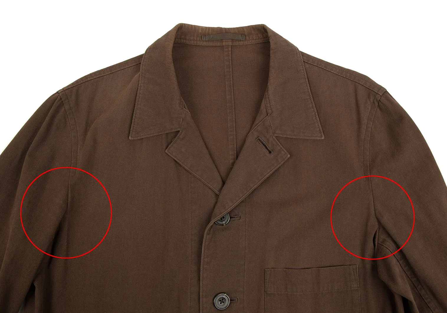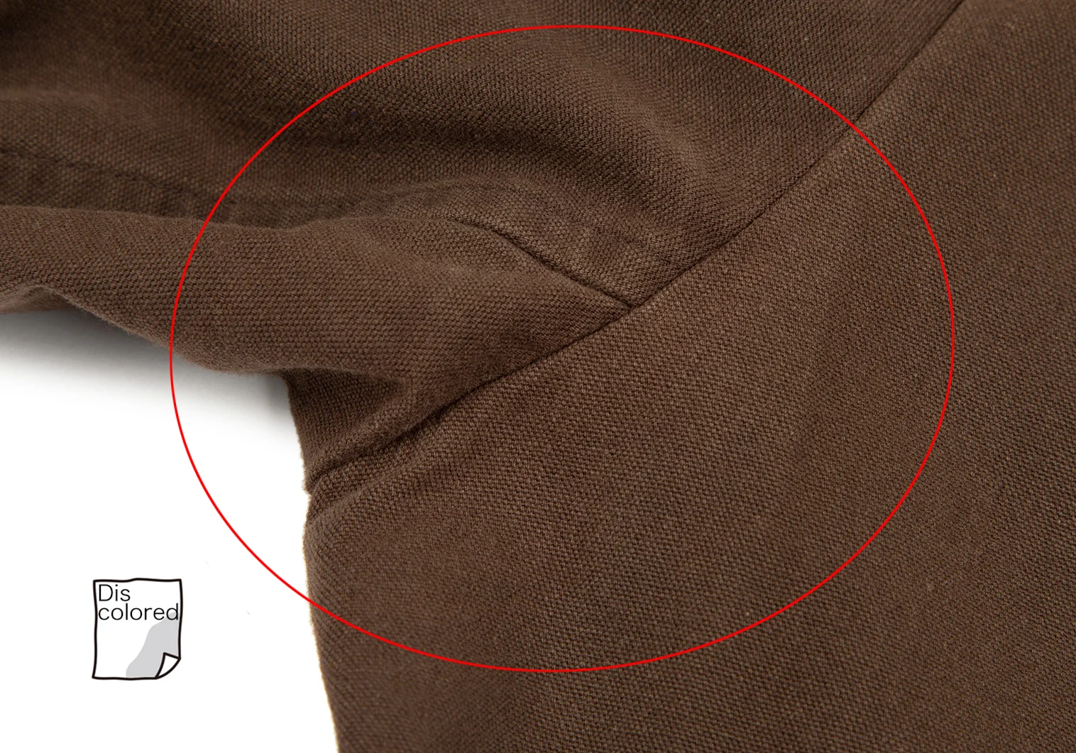 脇下・襟裏・後ろ裾に変色、袖先・肩に色褪せがあります(写真参照)。その他に目立ったシミ、汚れ、ほつれ等はありません。クリーニング済み