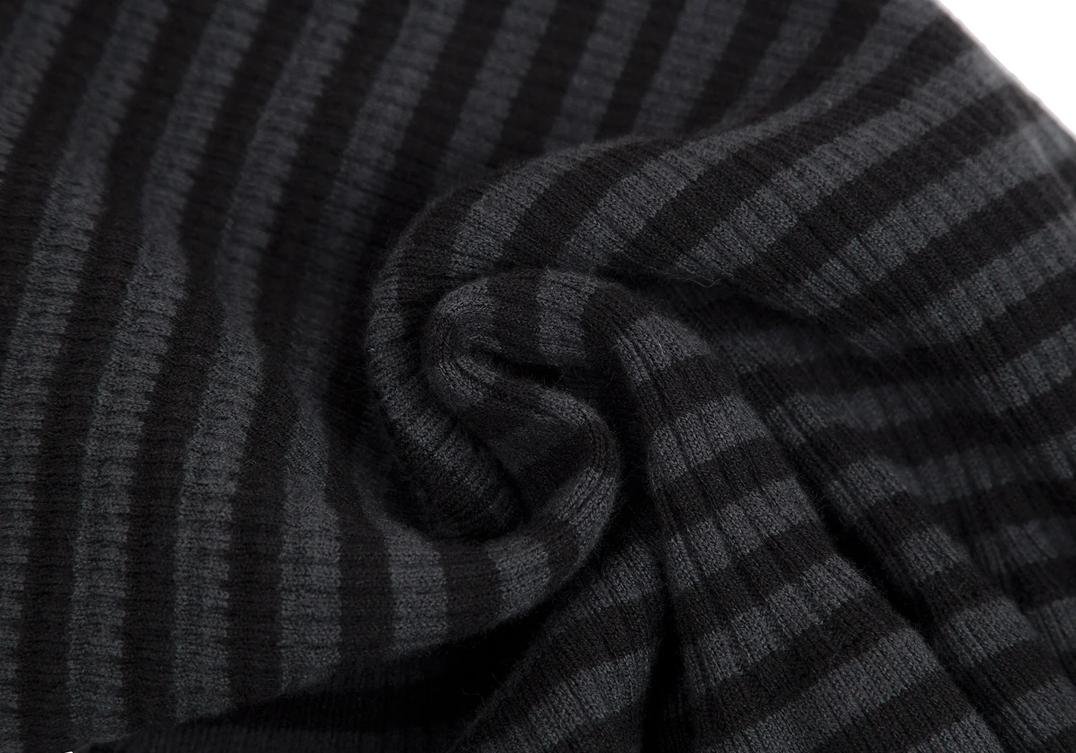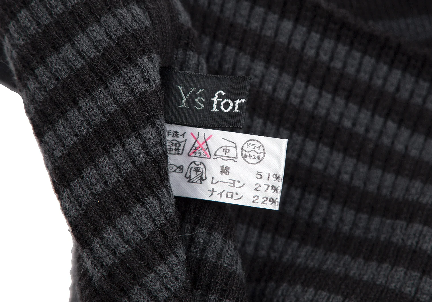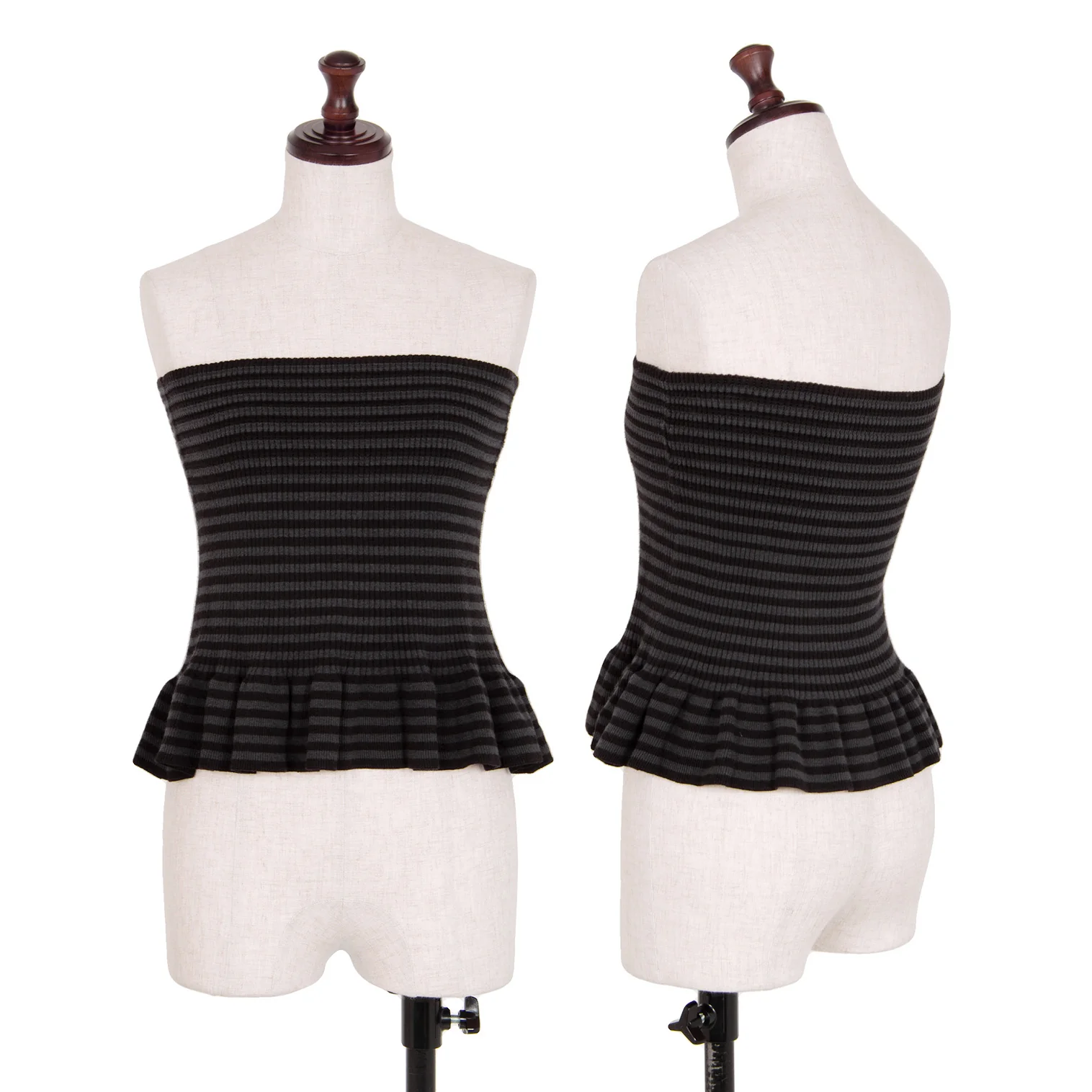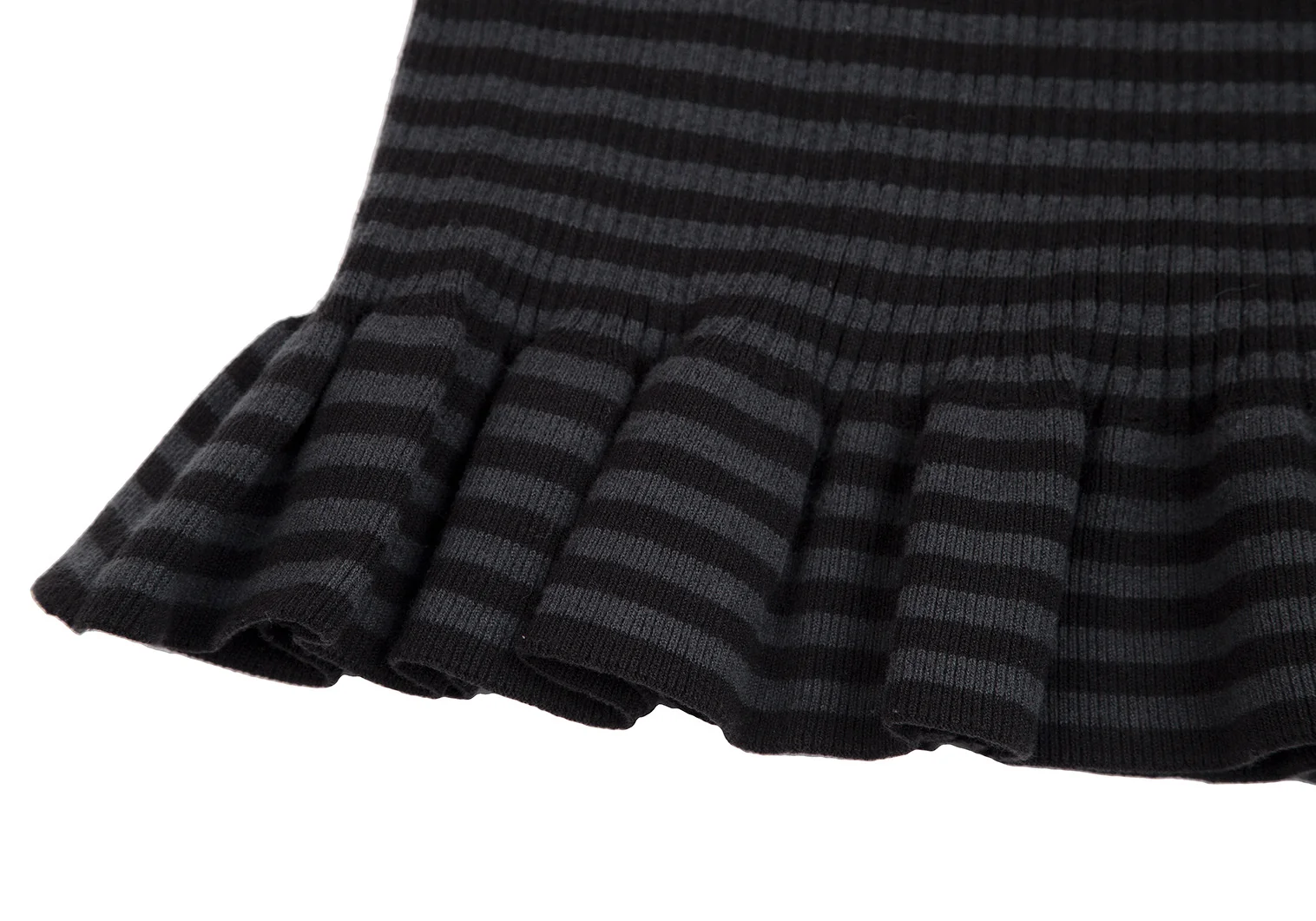 ワイズフォーリビングY's for living 裾フリルボーダーリブニットベアトップ 黒チャコールF
