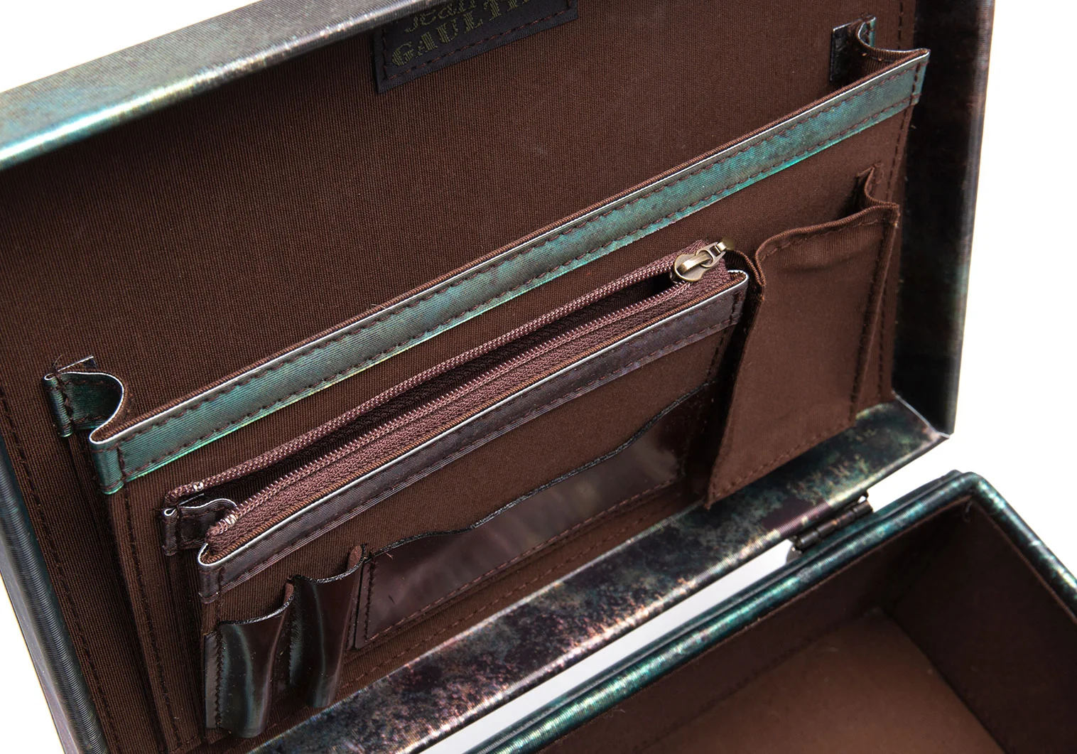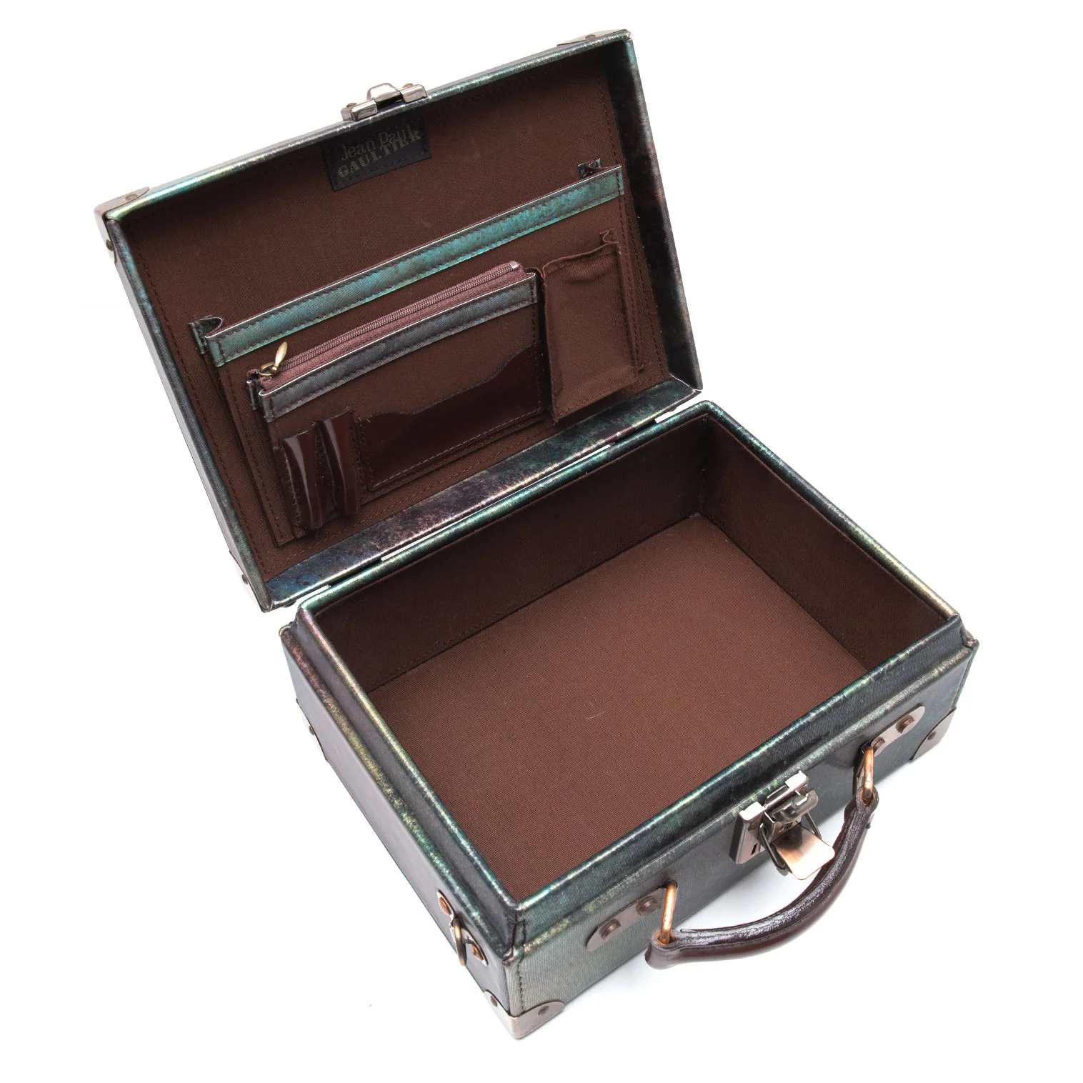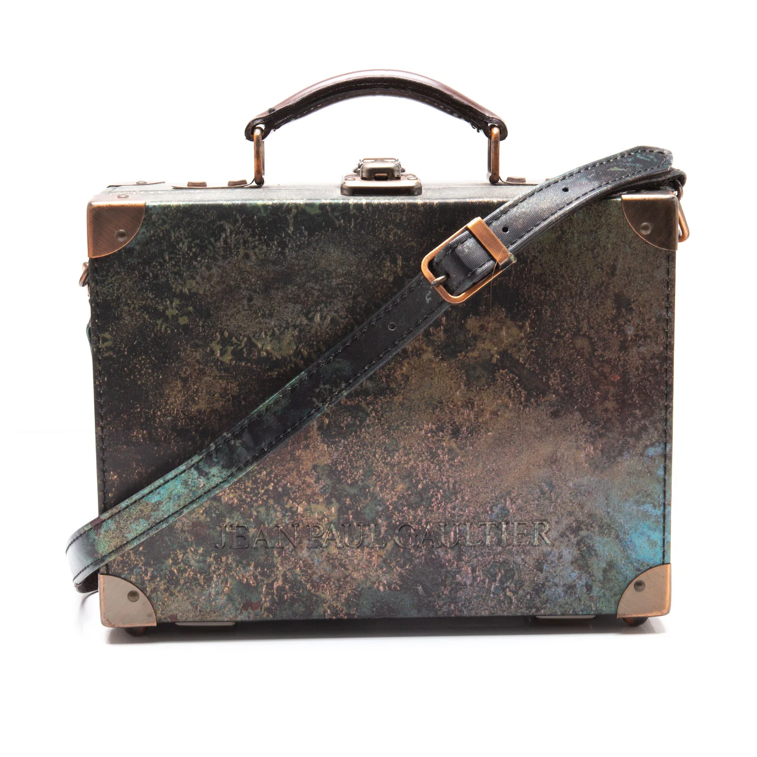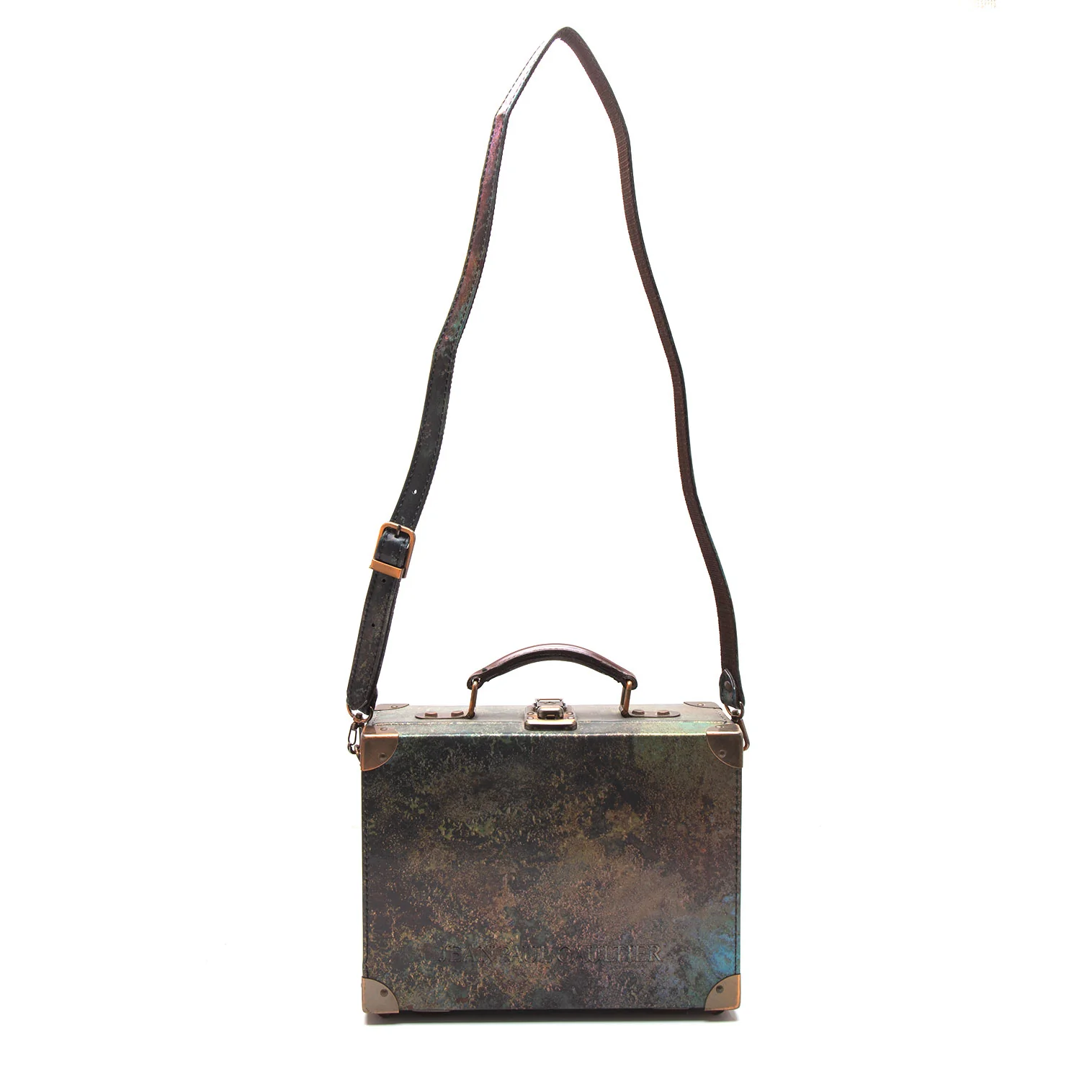 ジャンポールゴルチエJean Paul GAULTIER Vサイバーミニトランクバッグ 玉虫カーキ