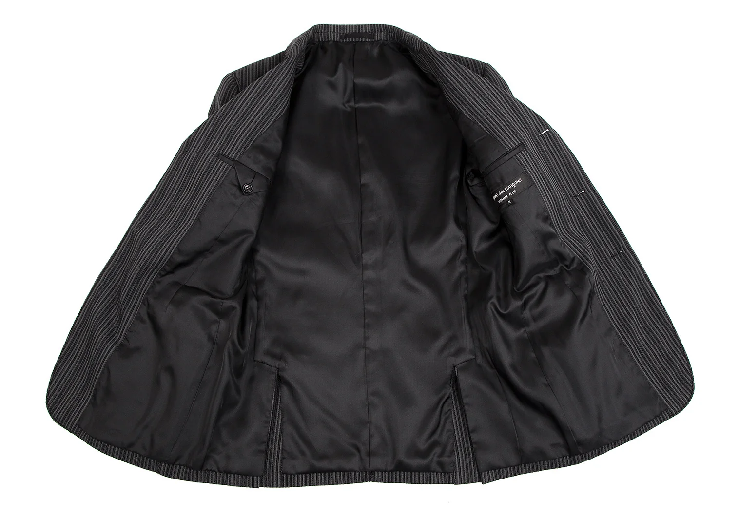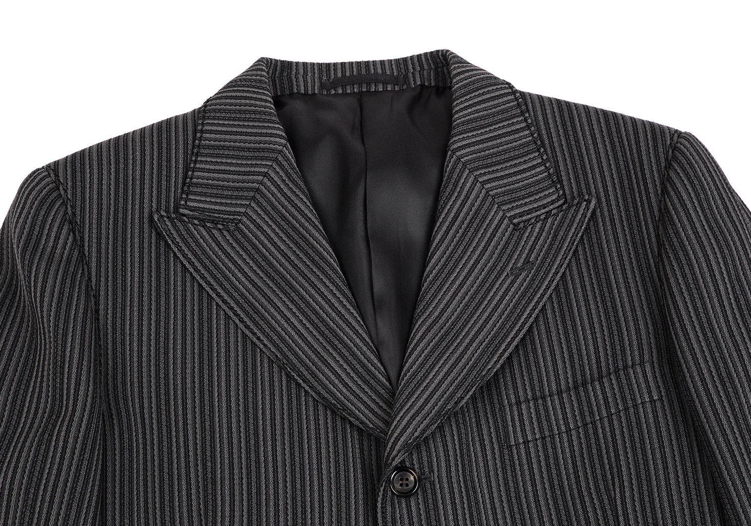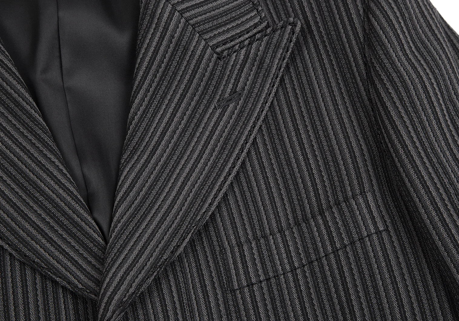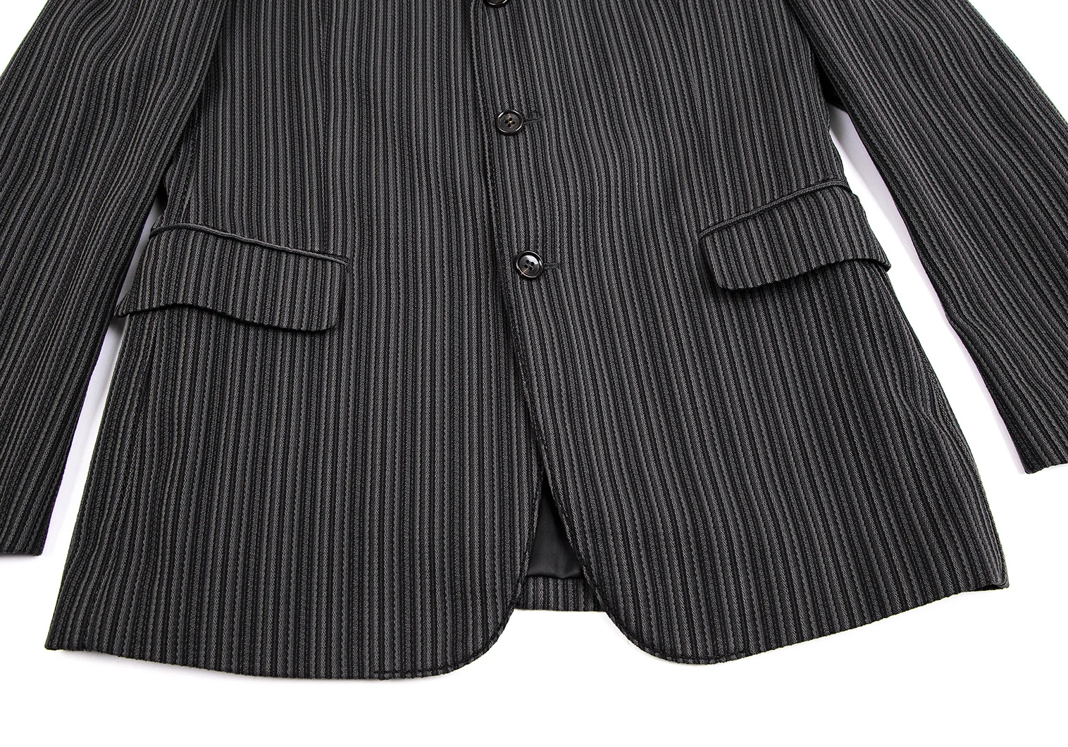 コムデギャルソン オムプリュスCOMME des GARCONS HOMME PLUS ポリストライプ織りステッチデザイン3Bジャケット グレーM