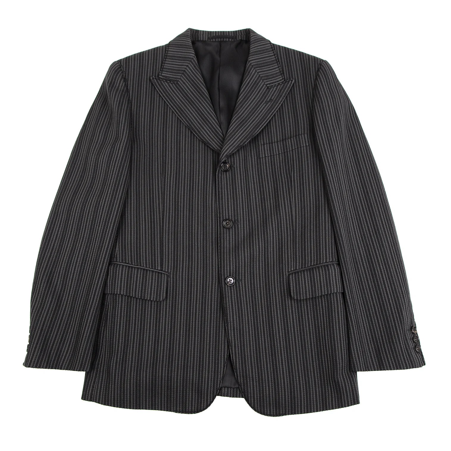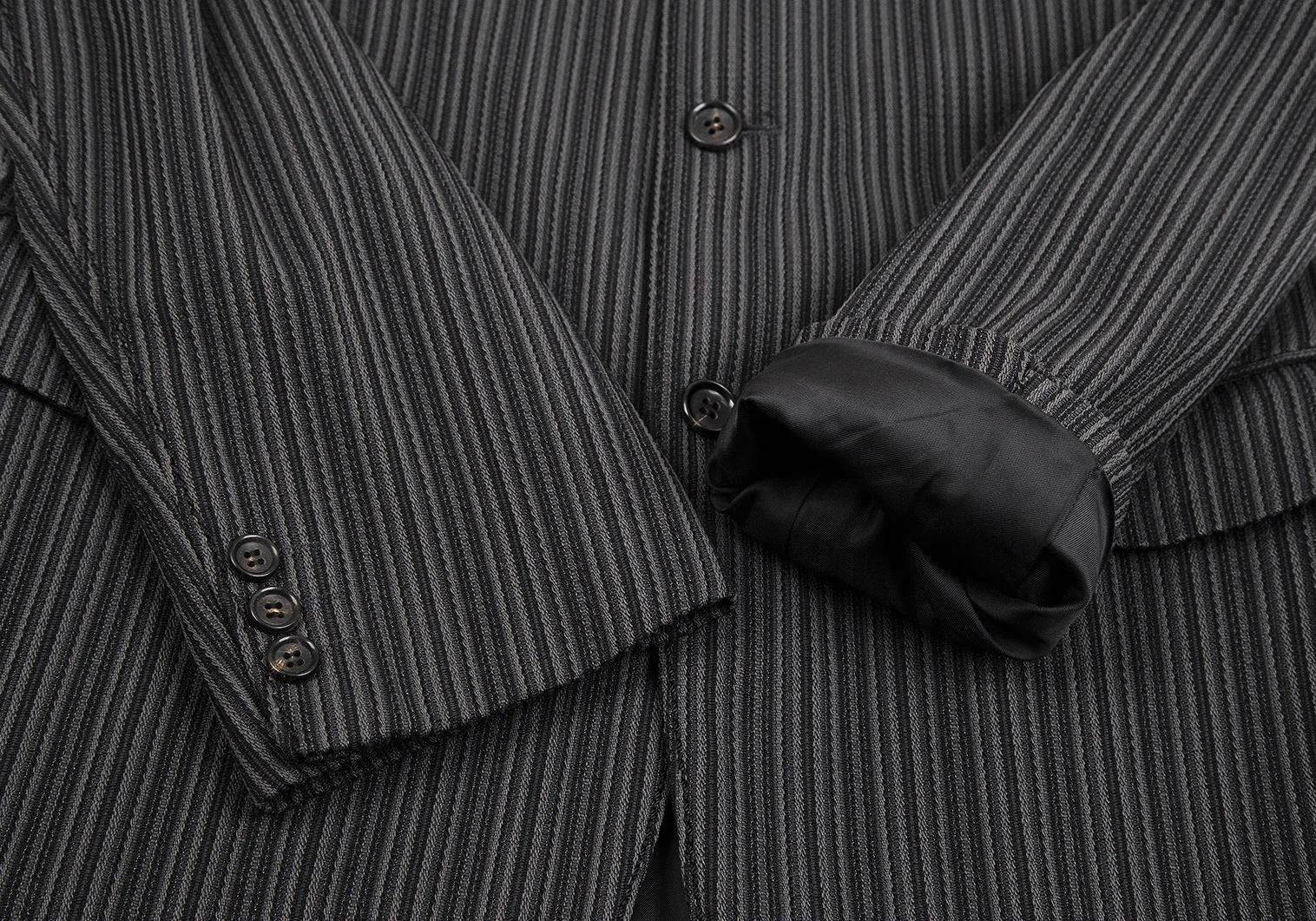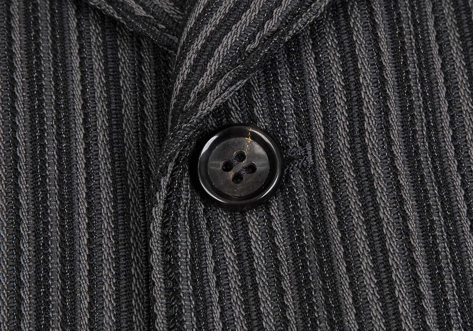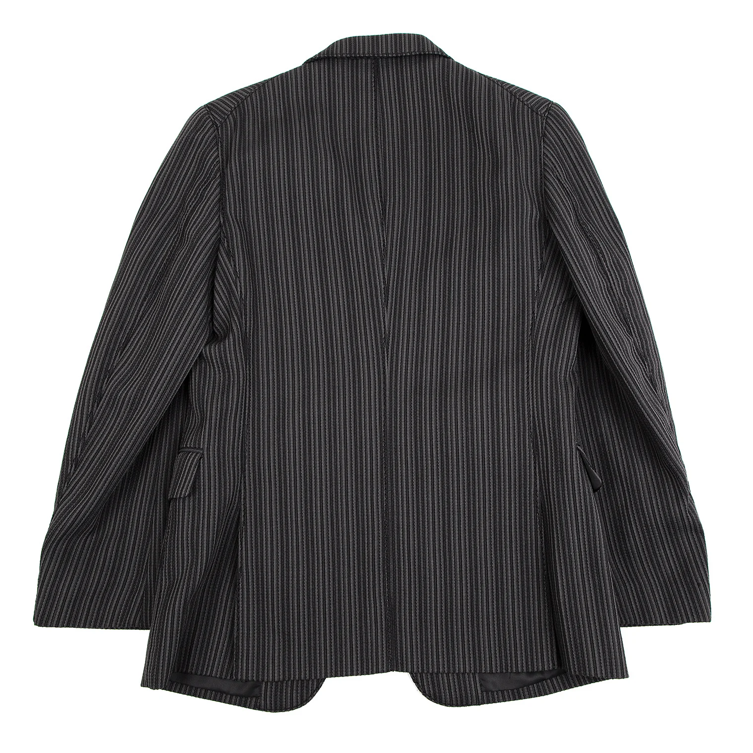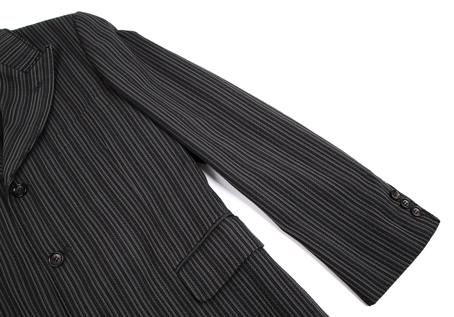 コムデギャルソン オムプリュスCOMME des GARCONS HOMME PLUS ポリストライプ織りステッチデザイン3Bジャケット グレーM
