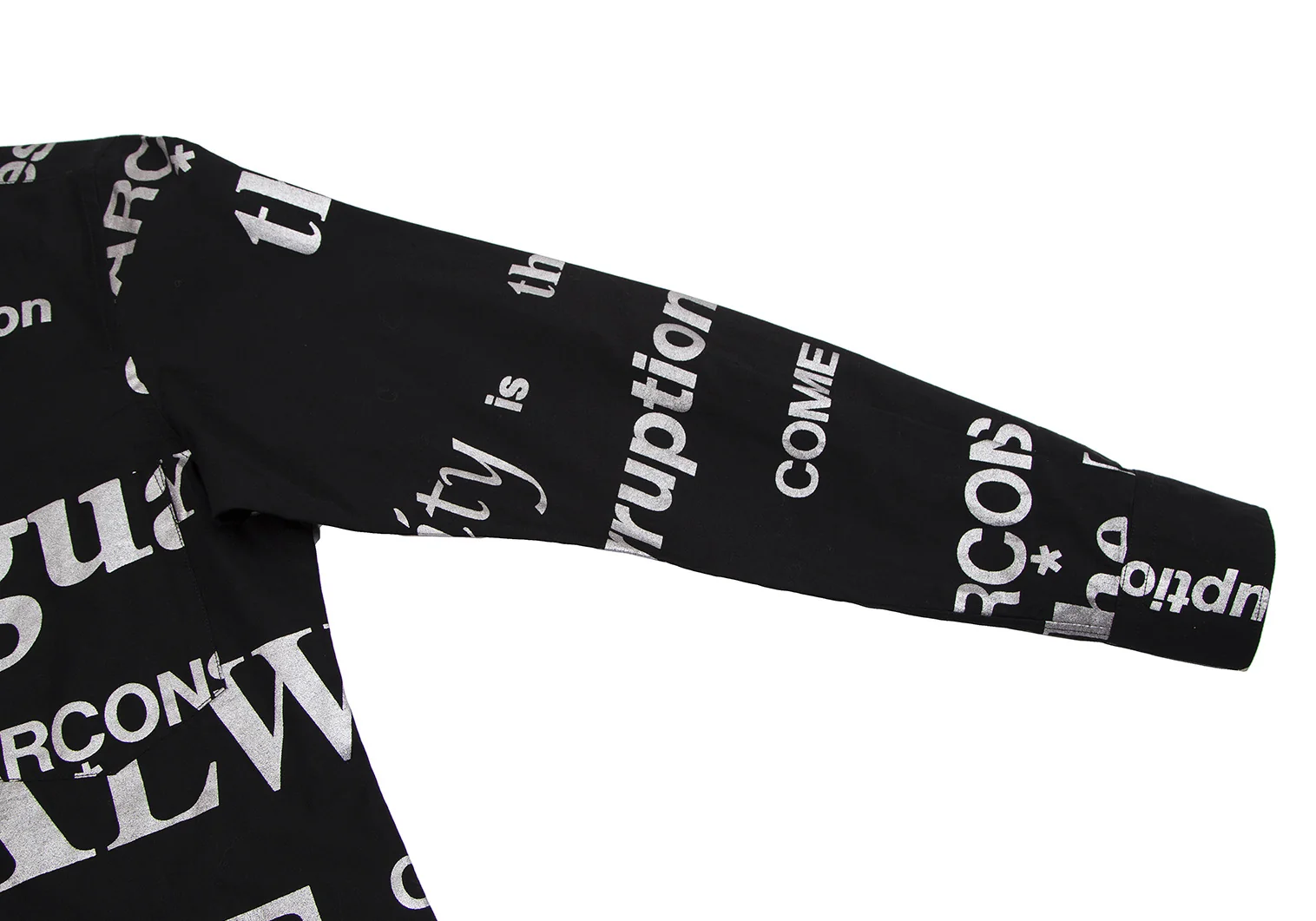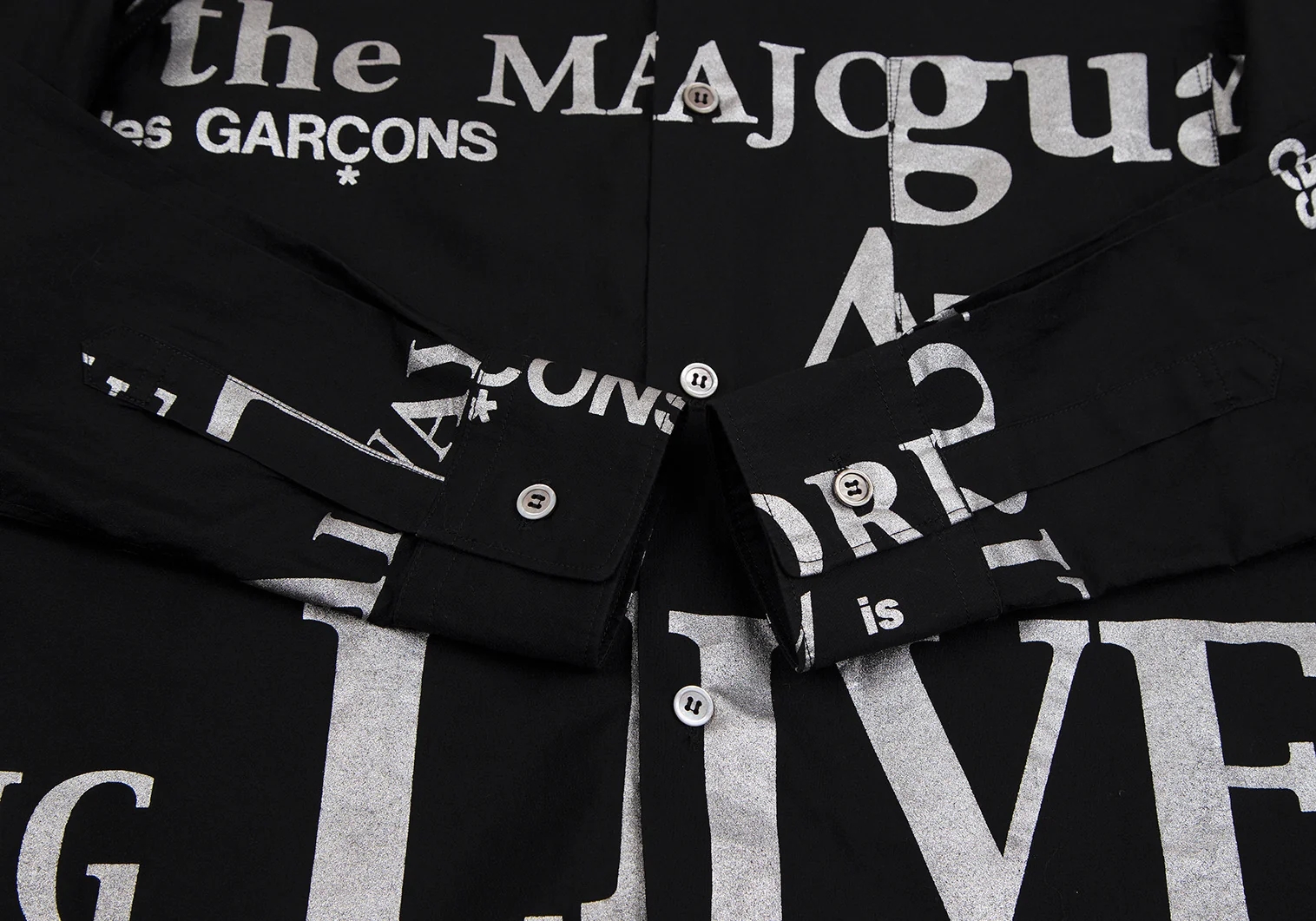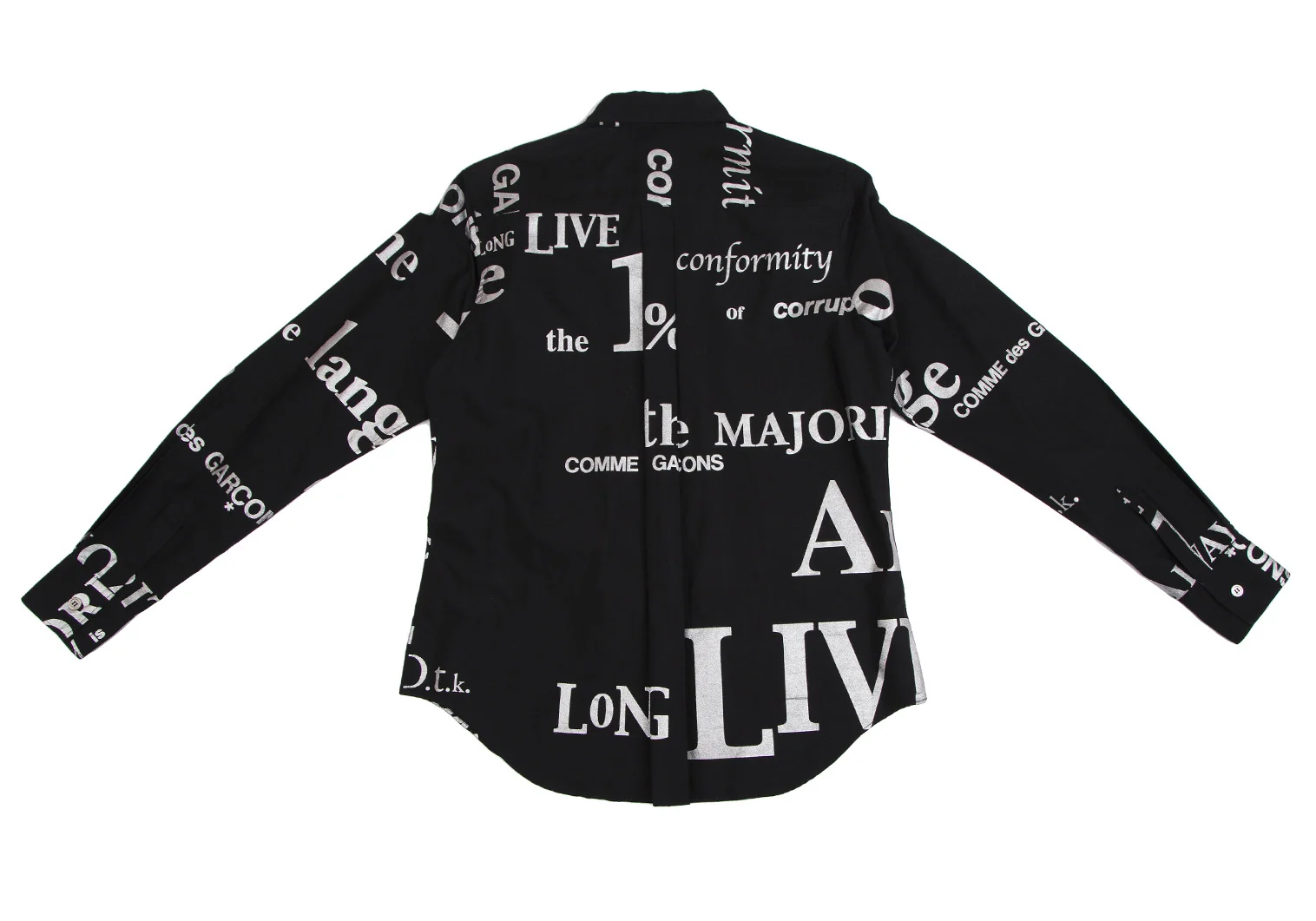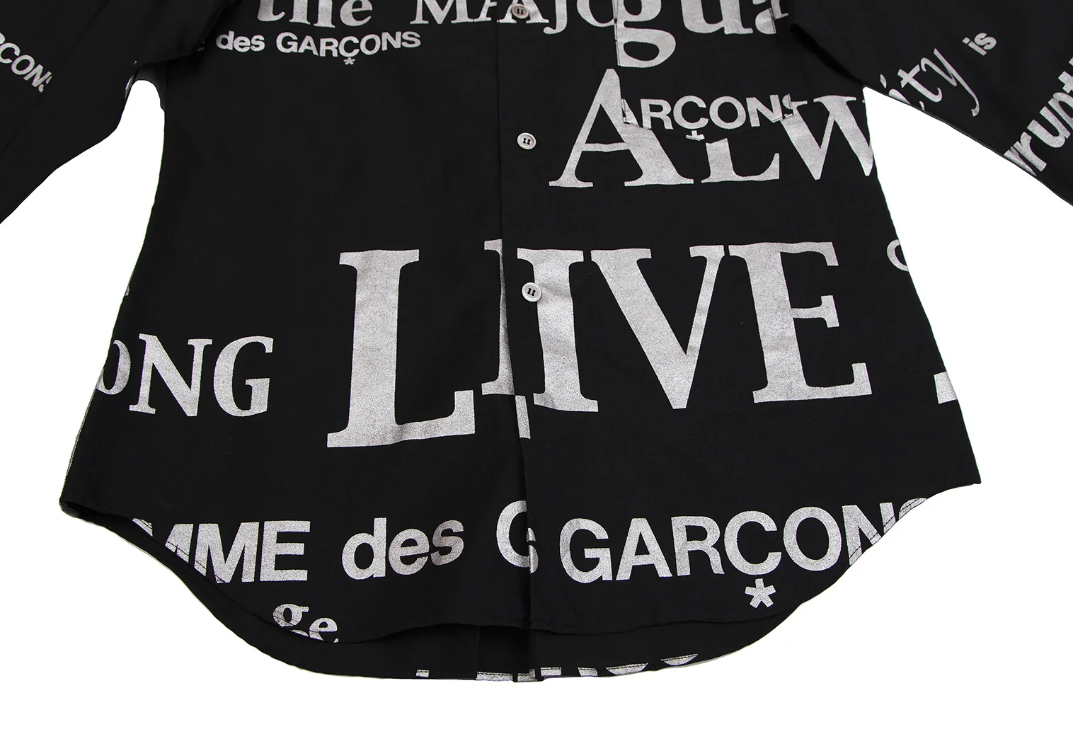 コムデギャルソンCOMME des GARCONSグリッターレタリングプリントシャツ 黒シルバーM