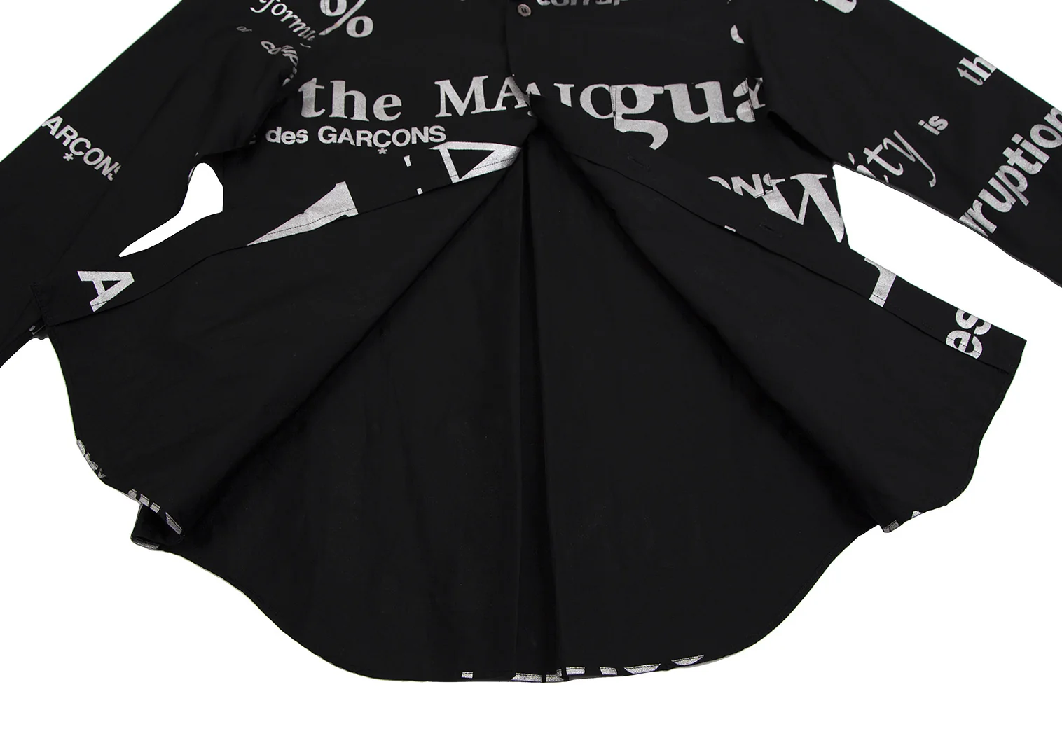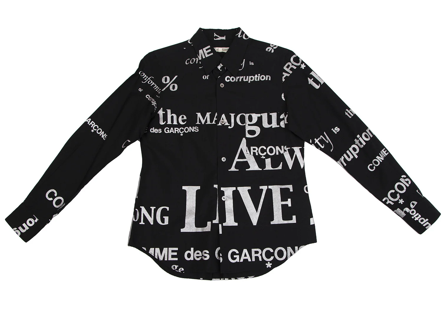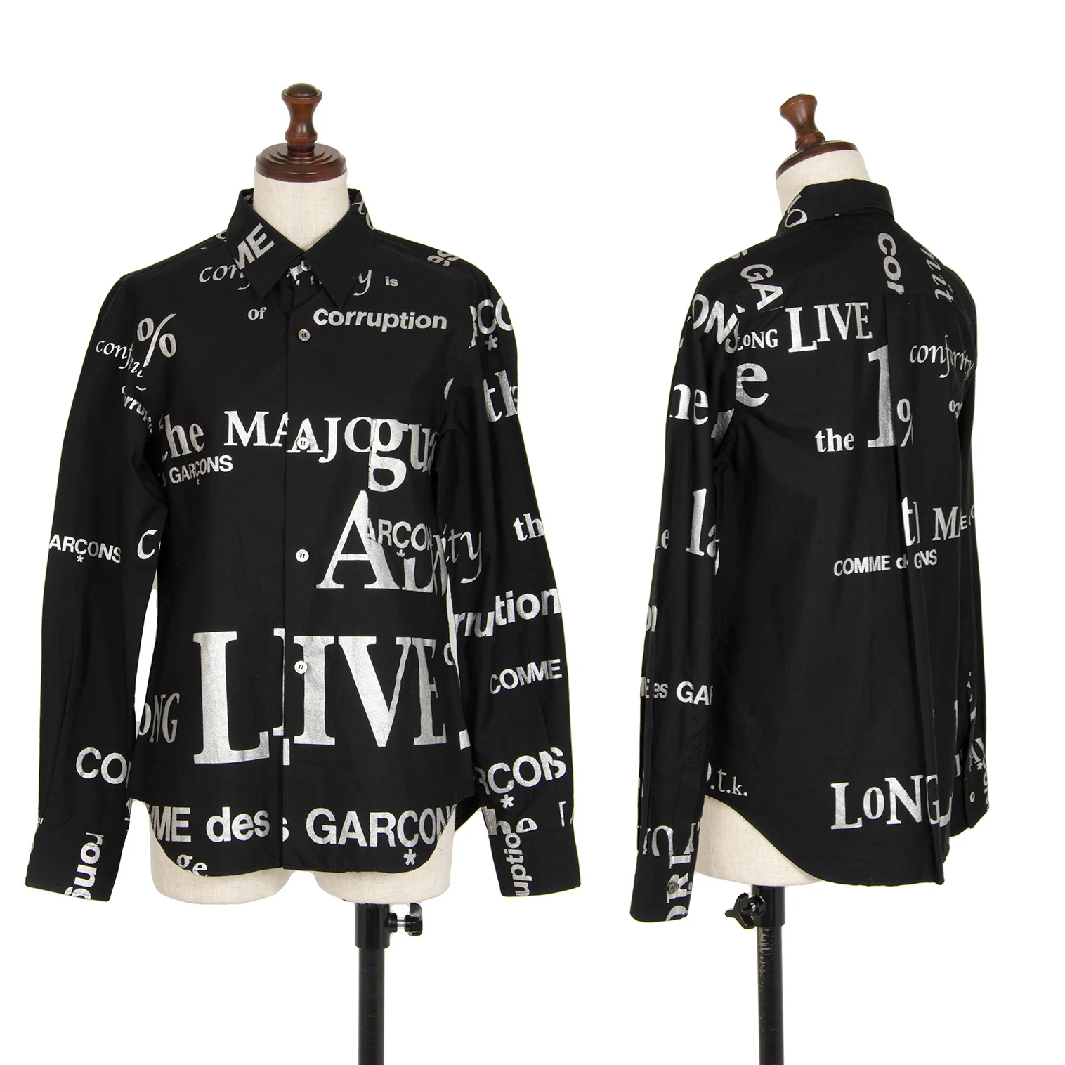 コムデギャルソンCOMME des GARCONSグリッターレタリングプリントシャツ 黒シルバーM