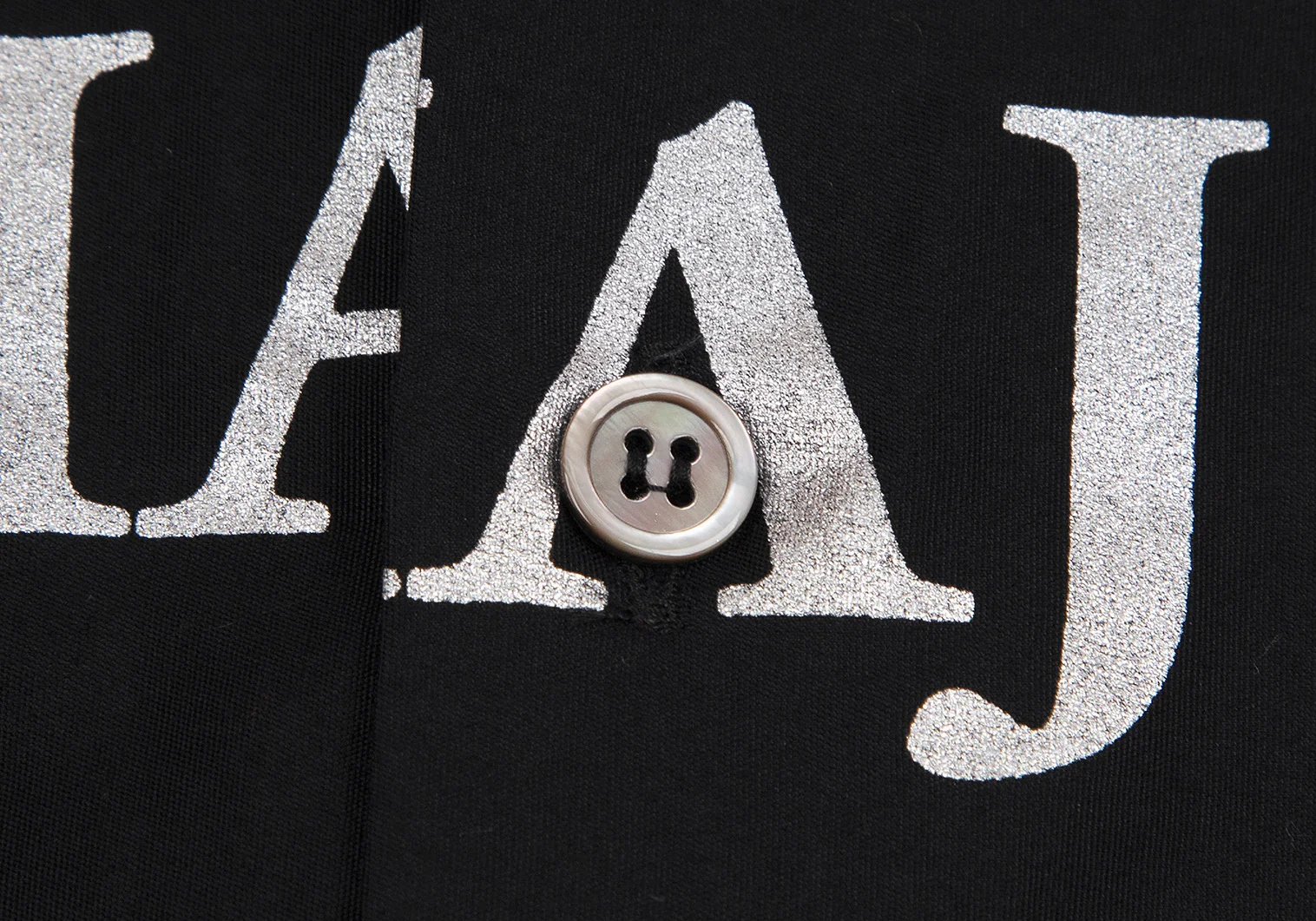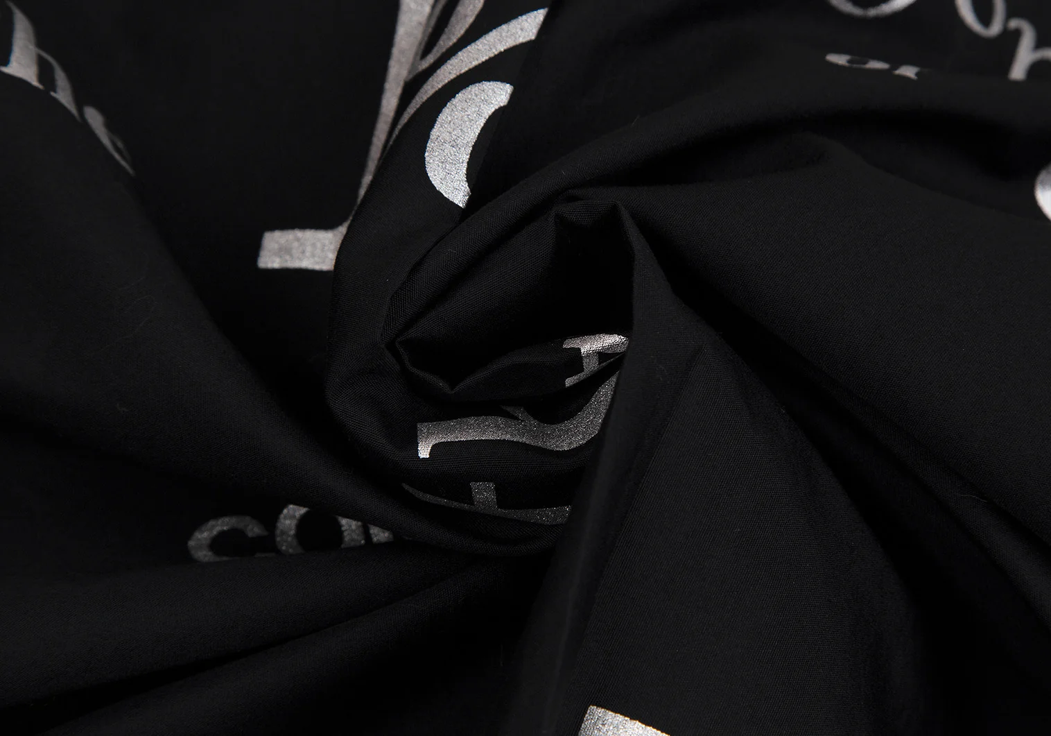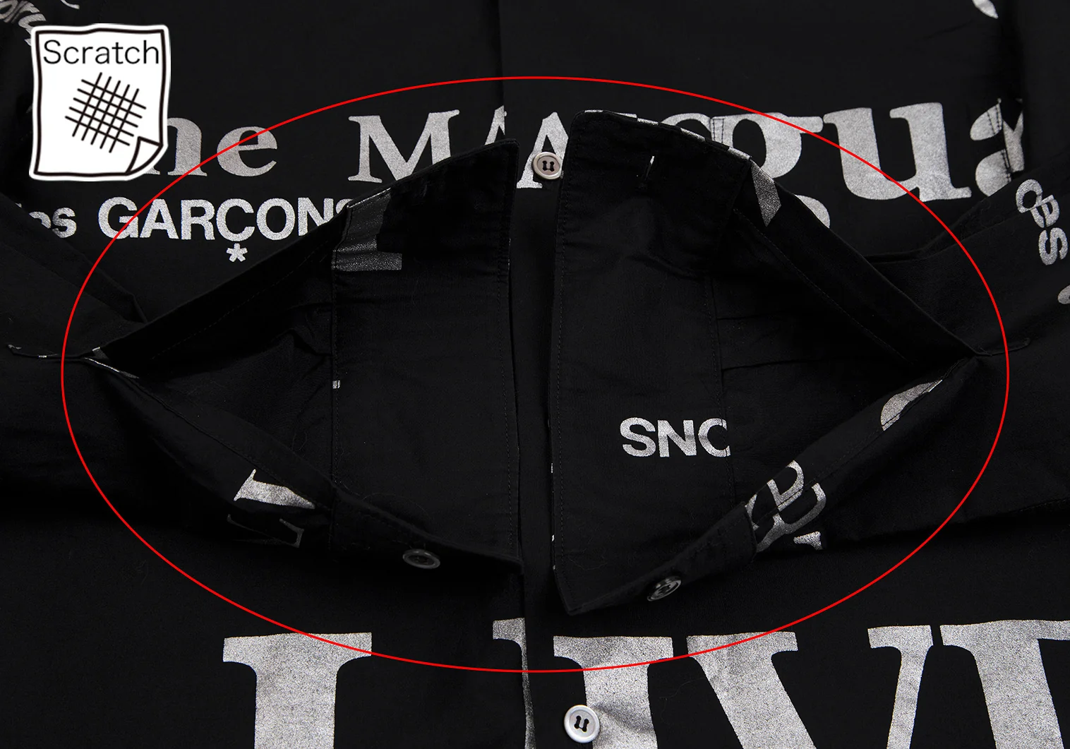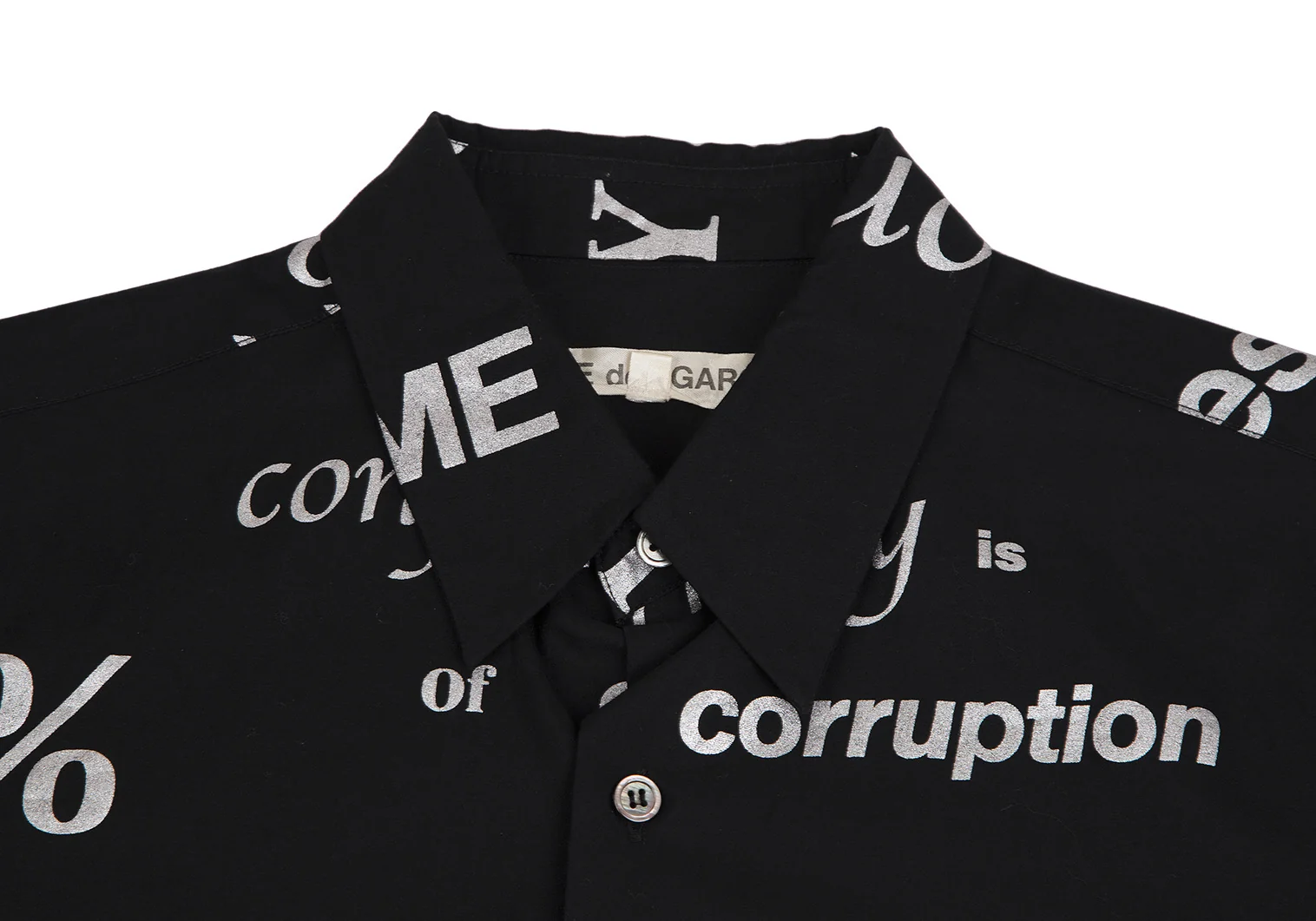 コムデギャルソンCOMME des GARCONSグリッターレタリングプリントシャツ 黒シルバーM