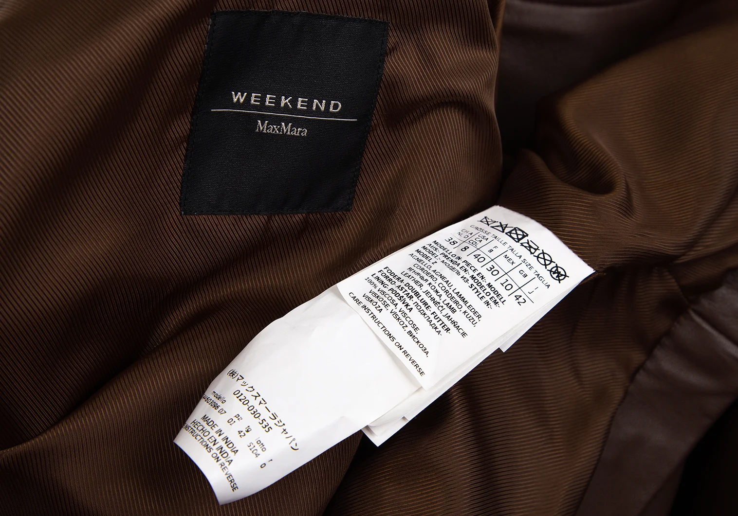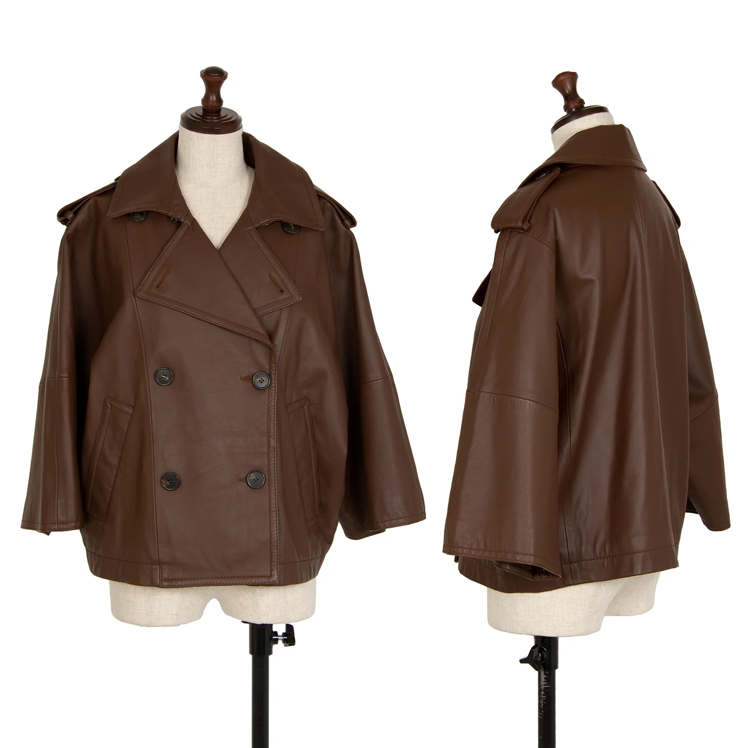 マックスマーラMax Mara WEEKEND ラムレザーワイドシルエットピーコート 茶42