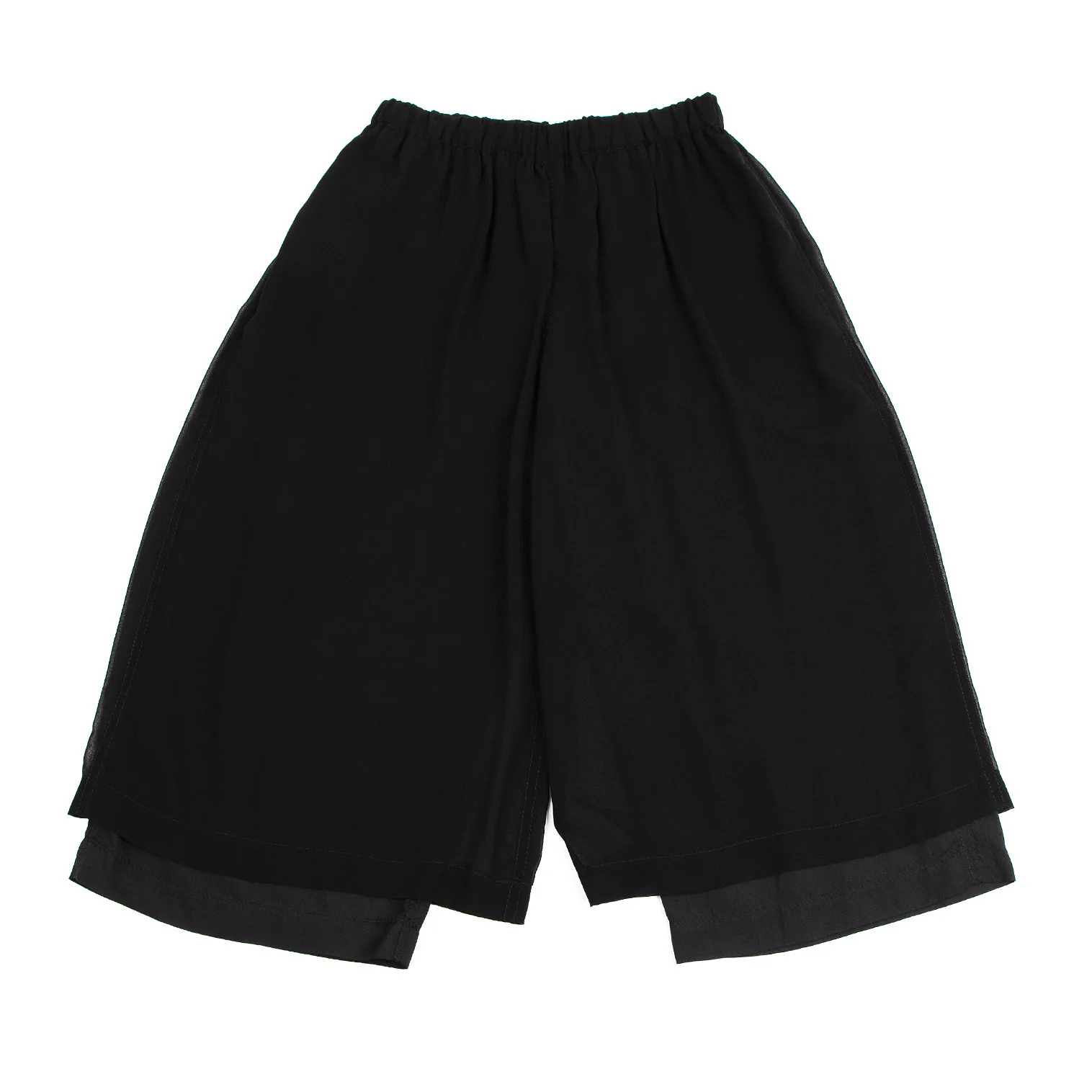 ブラックコムデギャルソンBLACK COMME des GARCONS シースルーレイヤーワイドクロップドパンツ 黒XS