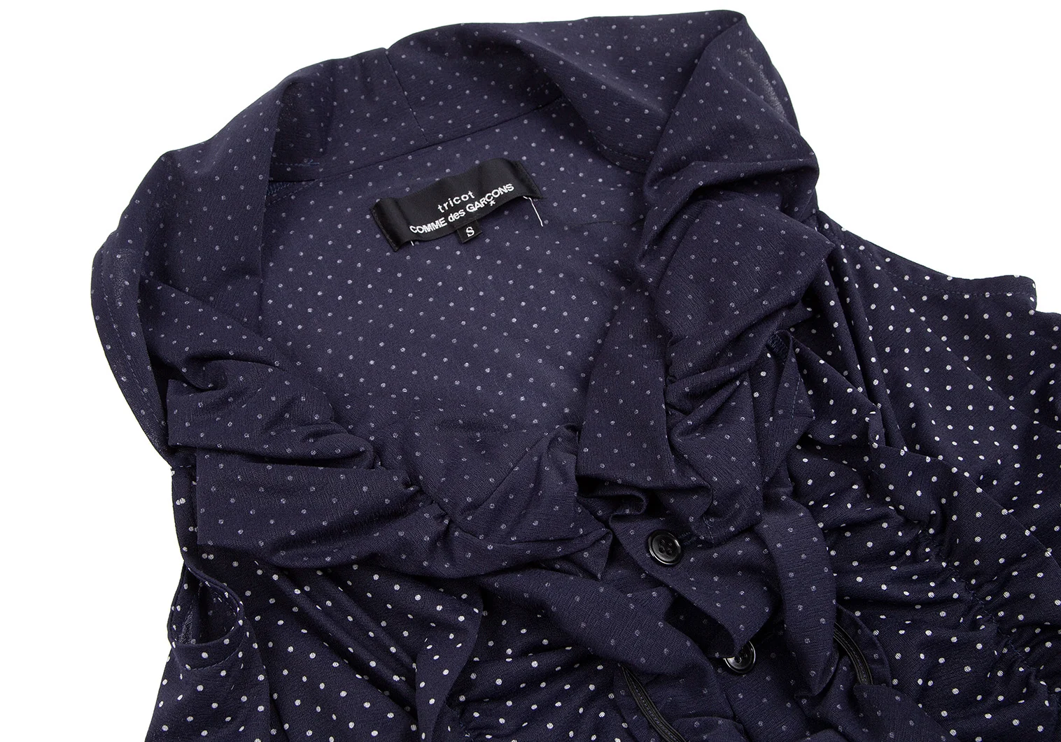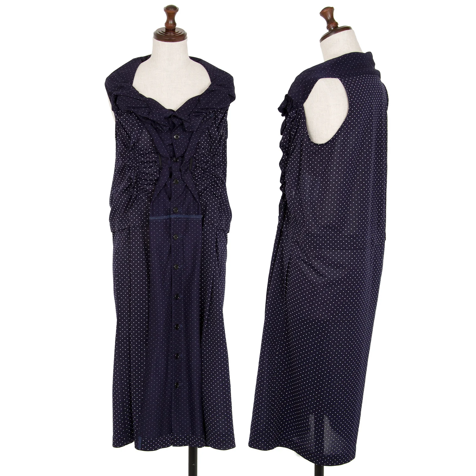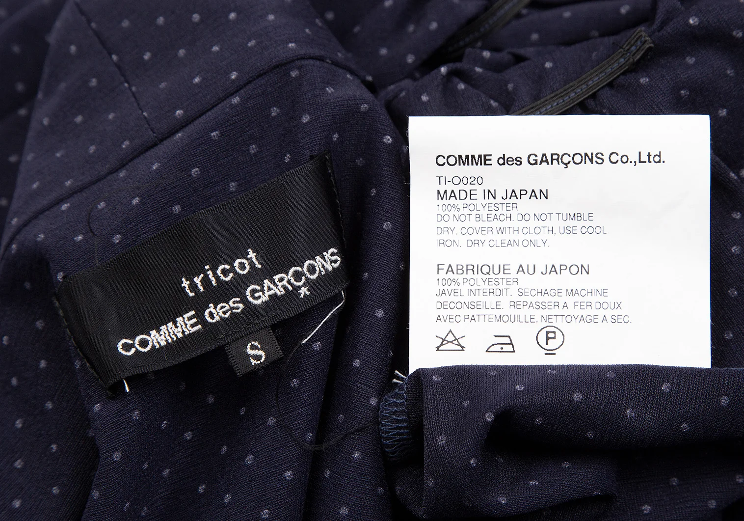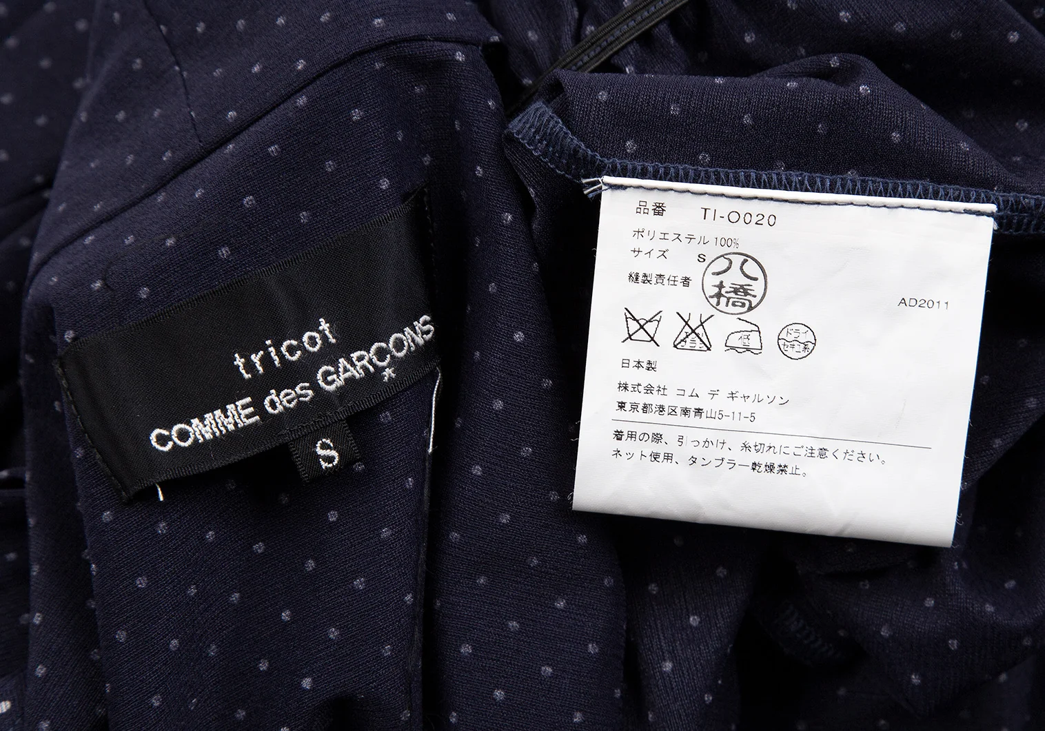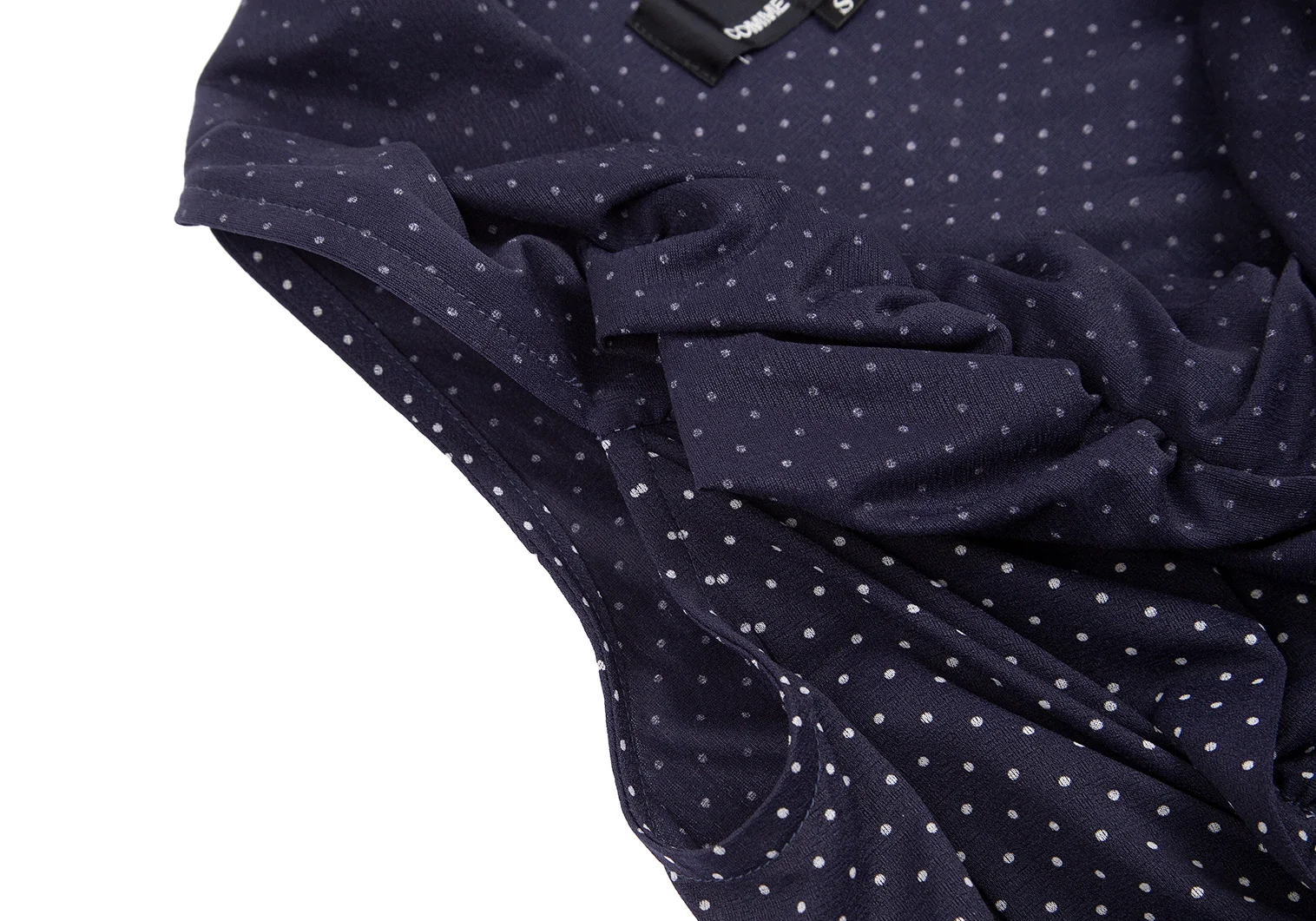 トリココムデギャルソンtricot COMME des GARCONS ピンドットギャザーネックノースリーブシャツワンピース 紺オフS