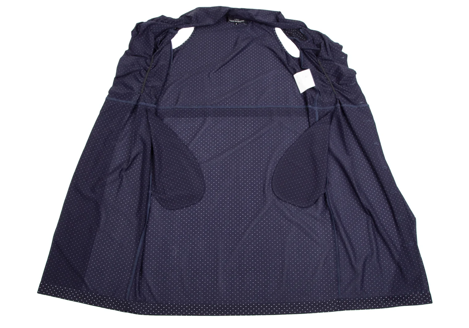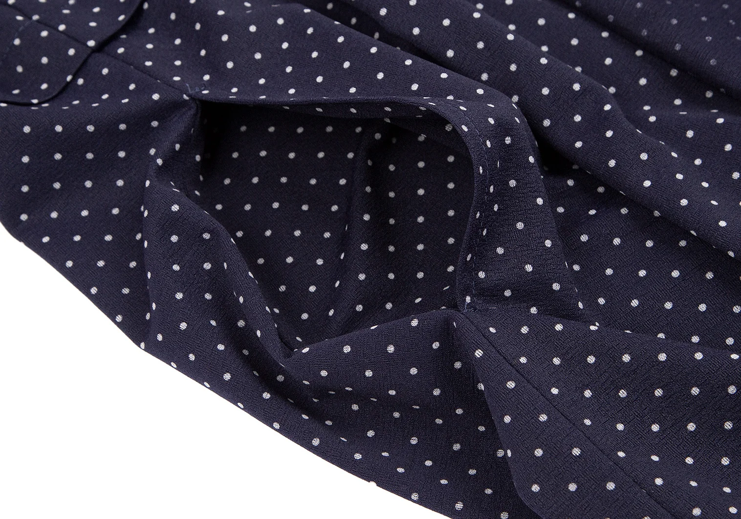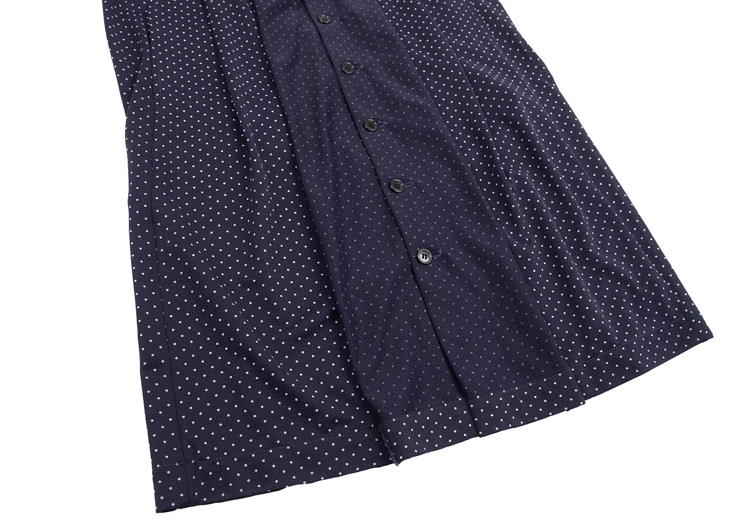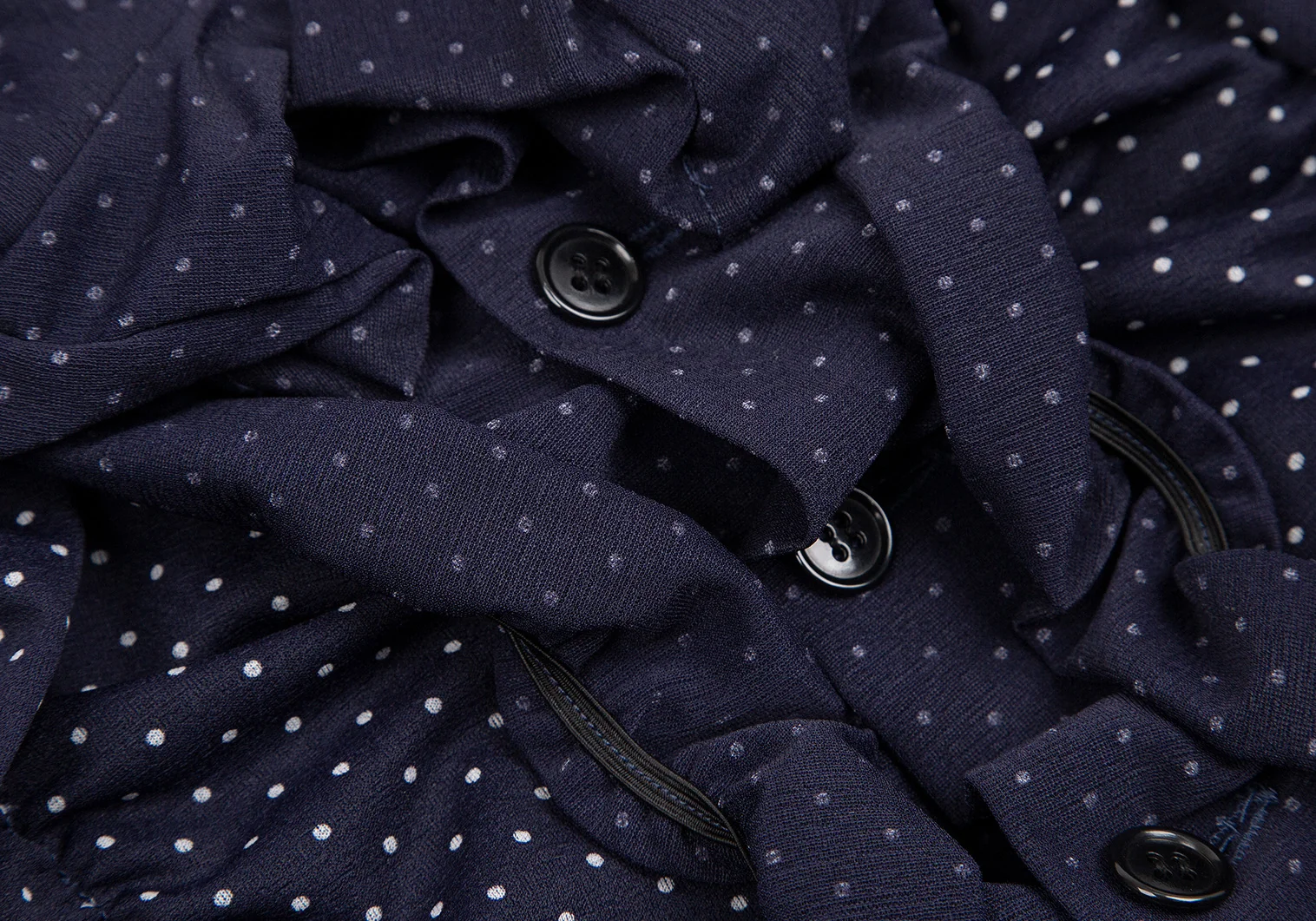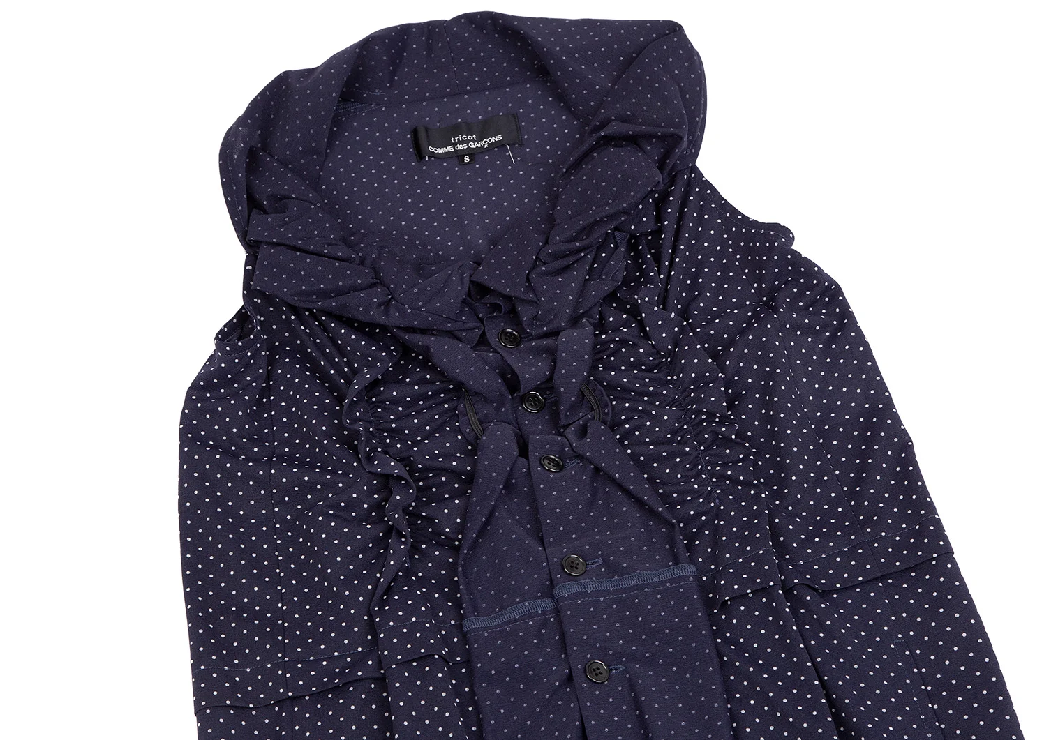 トリココムデギャルソンtricot COMME des GARCONS ピンドットギャザーネックノースリーブシャツワンピース 紺オフS