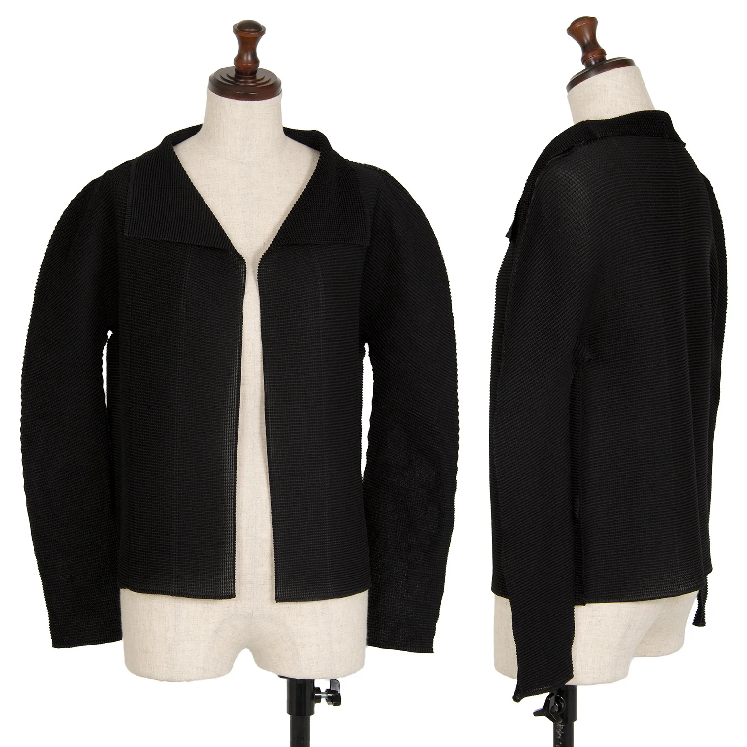 イッセイミヤケ ミーISSEY MIYAKE me ストレッチプリーツボタンレスカーディガン 黒F